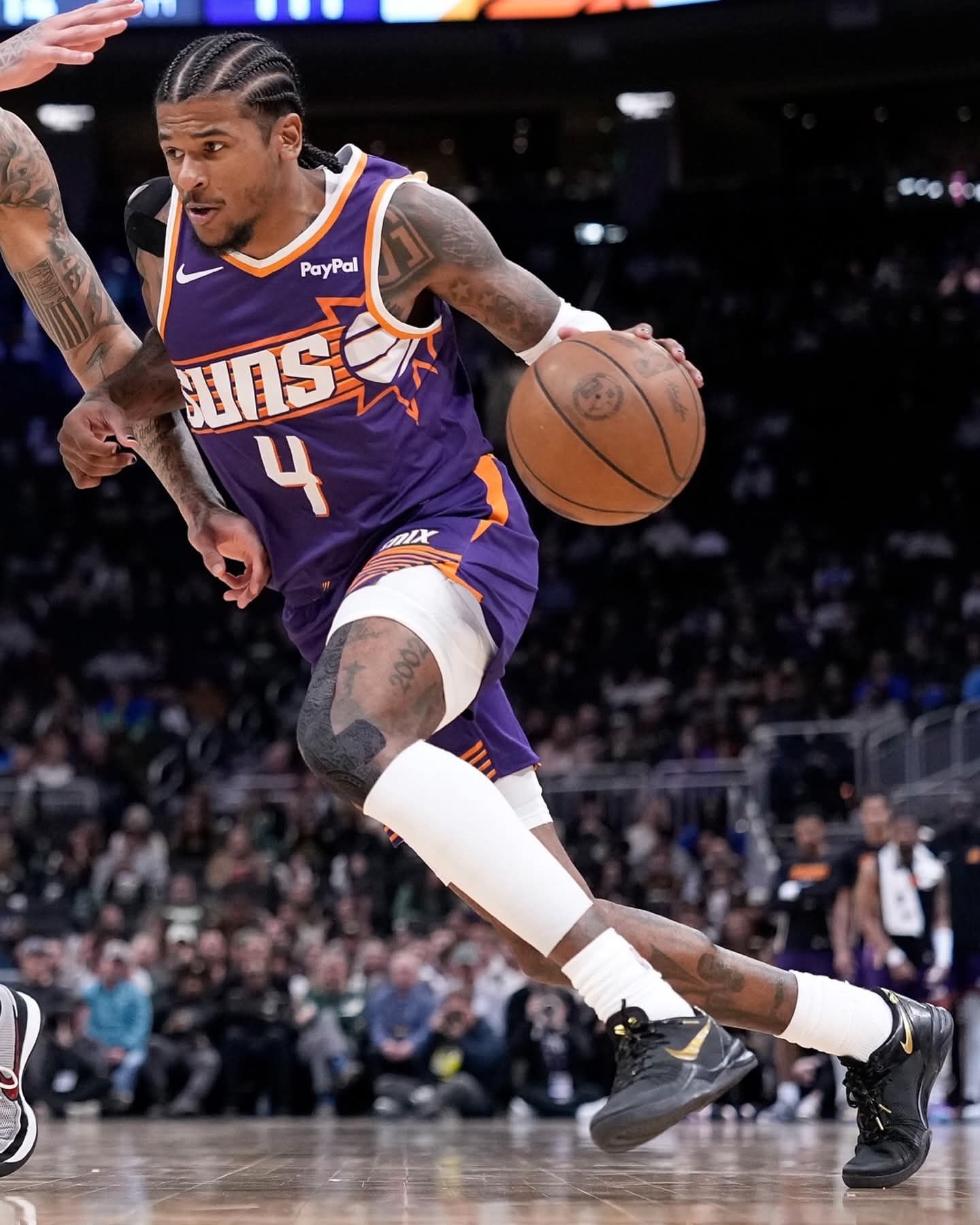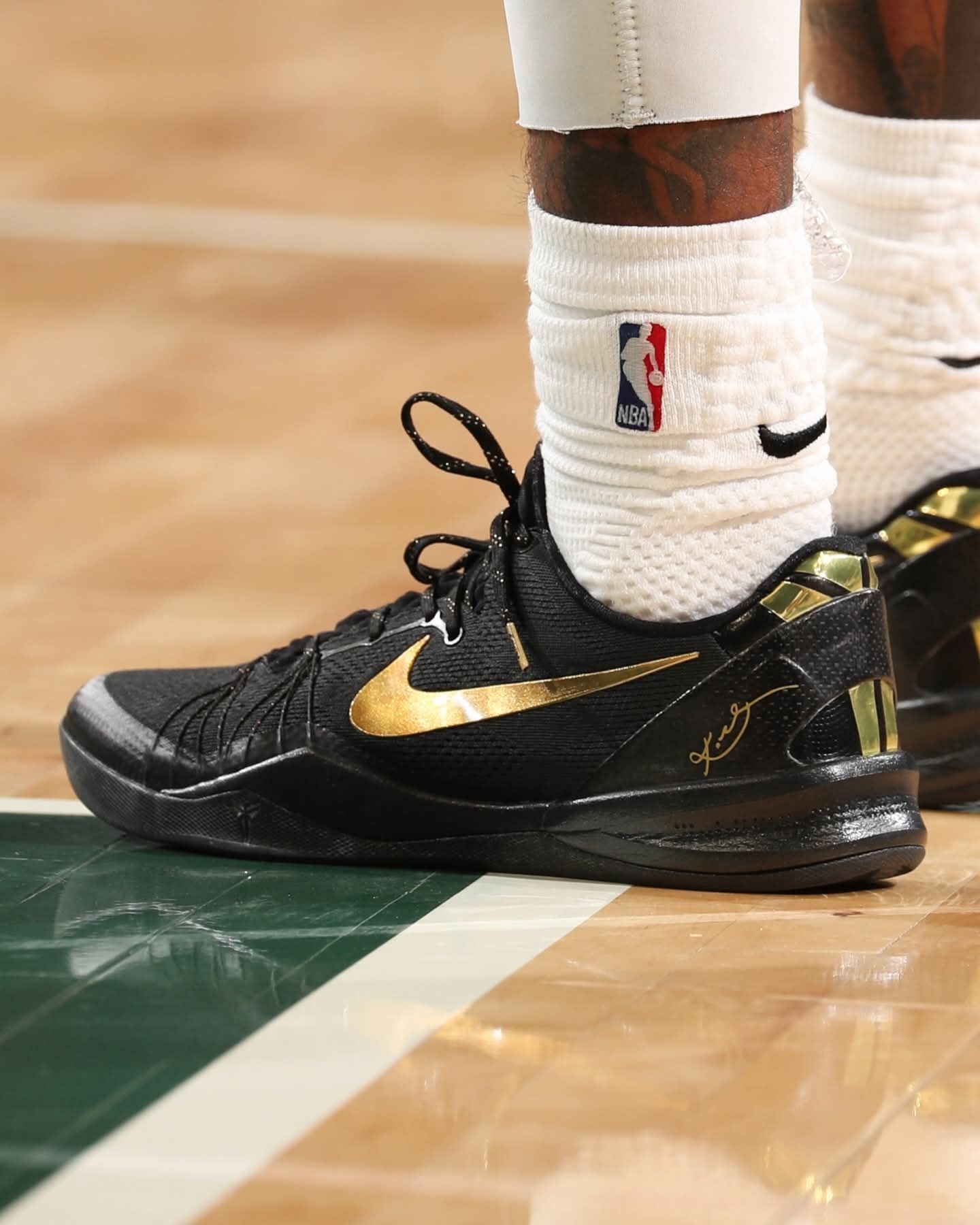当太阳队的杰伦·格林踏上赛场,脚下的Nike Kobe 8 Elite+黑金配色瞬间唤醒了无数球迷的曼巴记忆。 这双曾陪伴科比征战赛场的经典战靴,如今在新生代球星脚下重焕光芒,黑与金的碰撞,既是对传奇的致敬,也是曼巴精神的延续。 每一步奔跑,都是对24号的深情回望;每一次起跳,都在续写篮球的热血篇章。