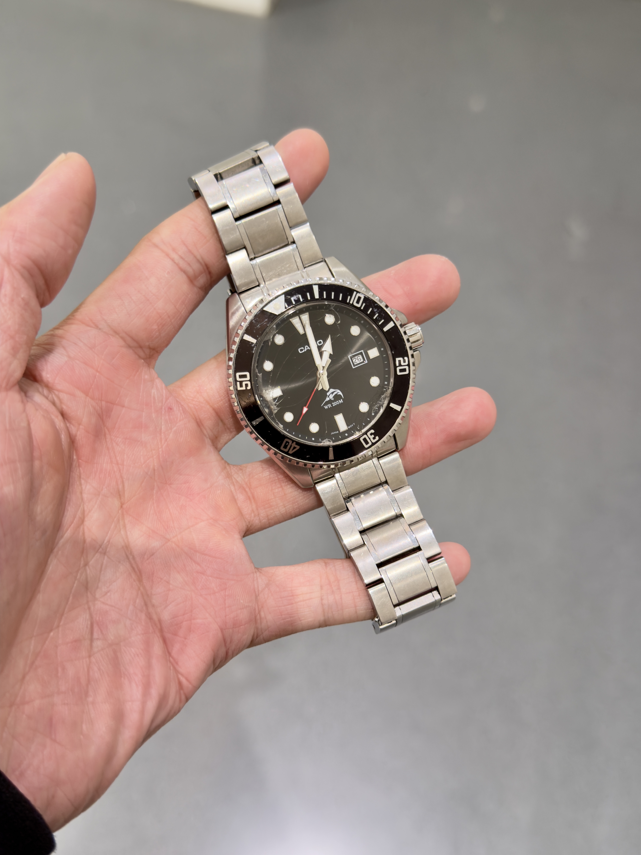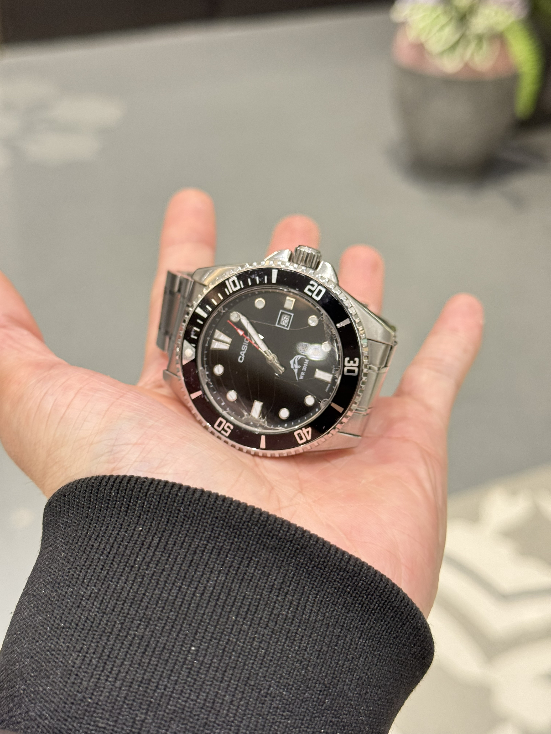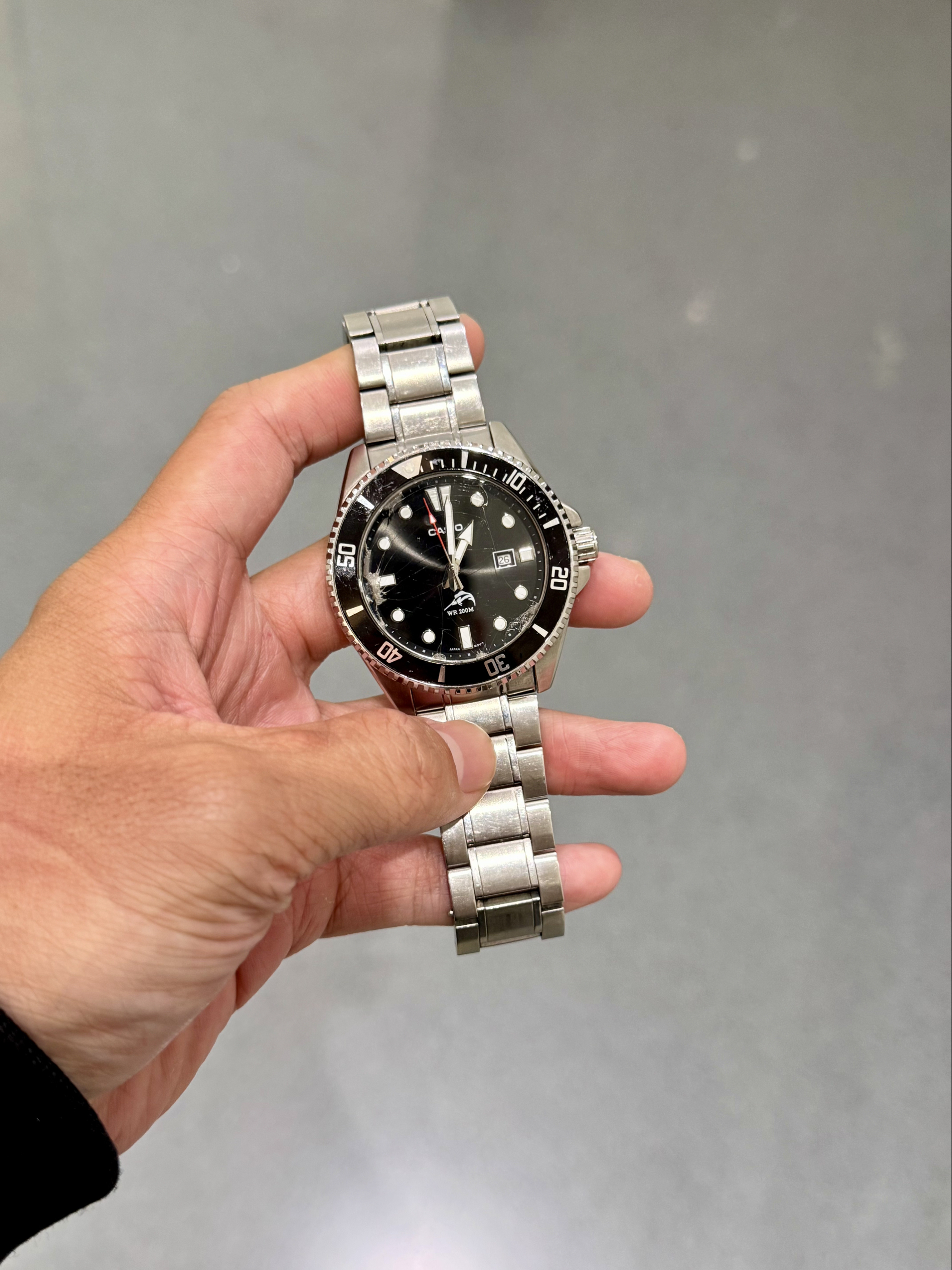 经典的黑色表盘搭配上银色钢带,潮流感十足! 表圈可以旋转,走时精准,还带日历功能,挺不错喔😌 手表质感很好,上手效果不错,非常推荐!