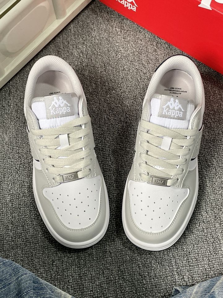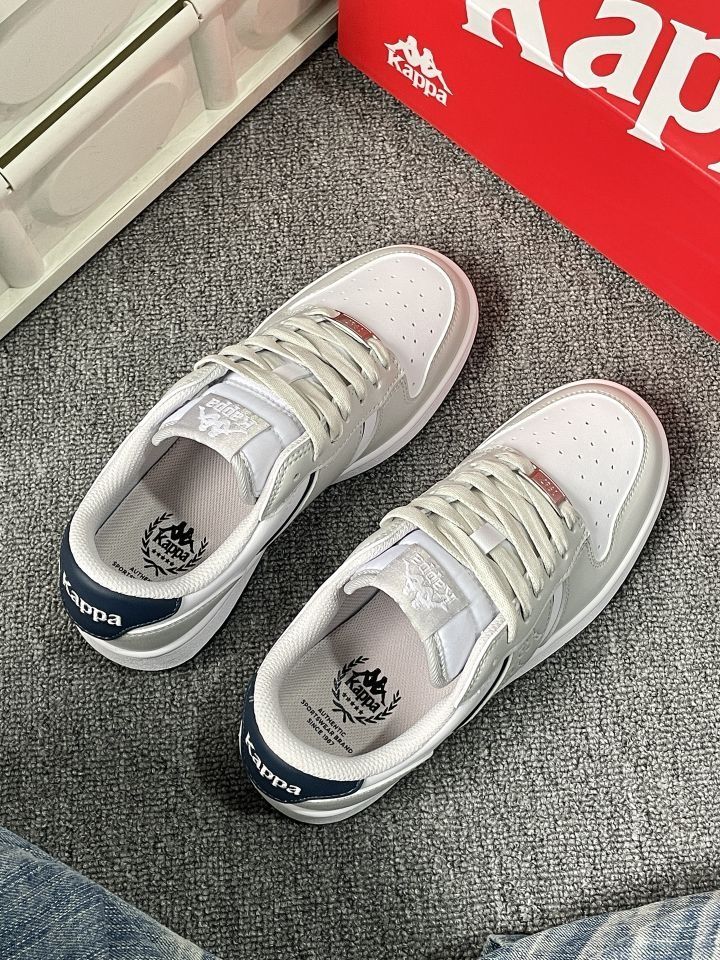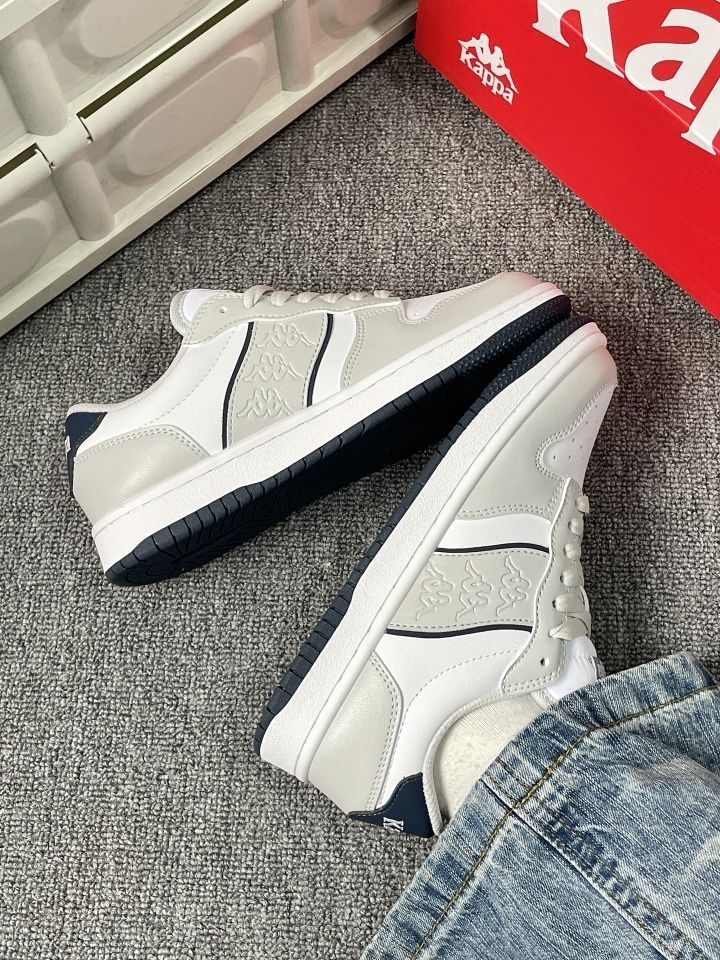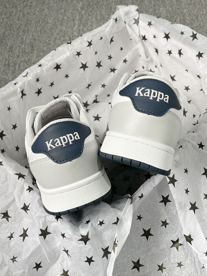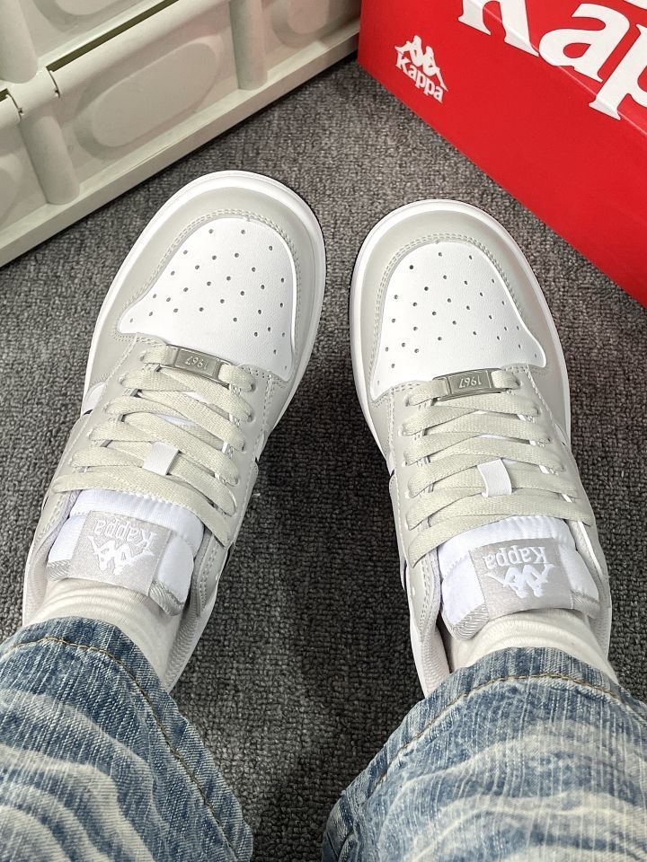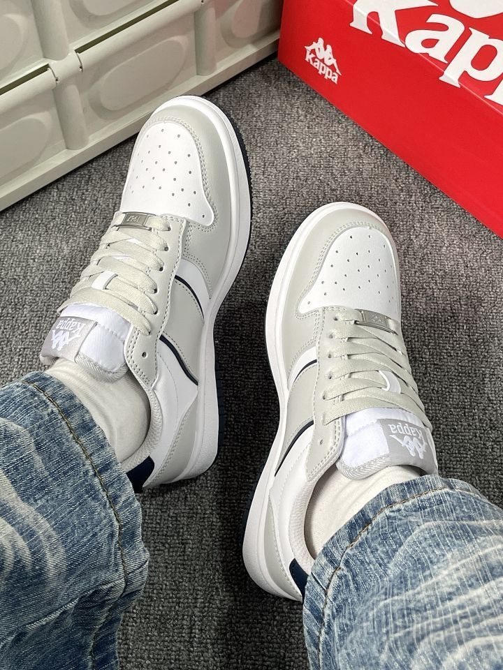 谁能拒绝这么干净的灰白蓝配色啊! Kappa这双板鞋真的把复古感和少年感拿捏得死死的👟 低饱和度配色巨显白,配牛仔裤、运动裤都超绝 鞋型超修饰脚型,小个子姐妹也能放心冲! 春天的氛围感直接拉满,通勤上学都好穿~