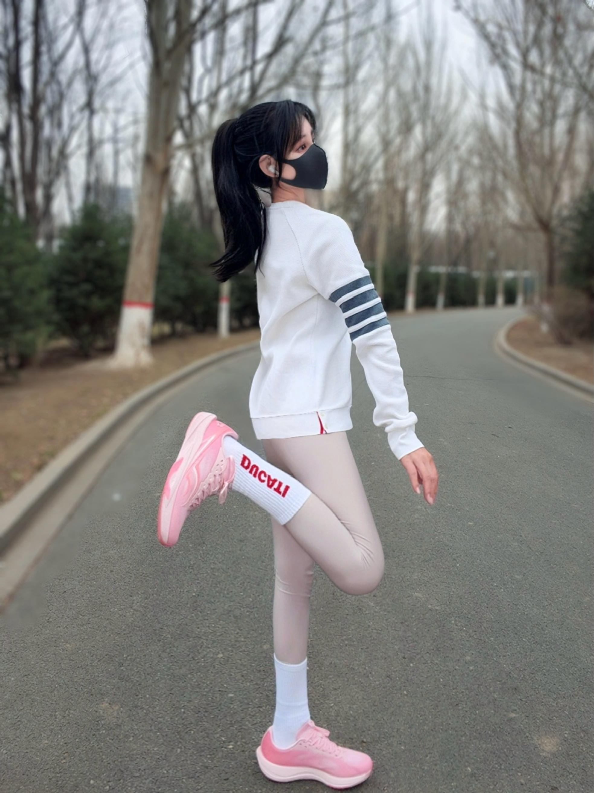 最近下了点小雨,跑道公园的清晨刚刚好~白色卫衣配粉色跑鞋👟突然get到了什么叫氧气感! *搭配灵感💫: 穿着简简单单的运动风,不用刻意凹造型👀 随便走走就觉得很自在啦~ 脚踩一双樱花粉🌸的跑鞋,上脚轻便又舒适,颜色也好适合春天🥰 随便搭配衣服就很好看啦!