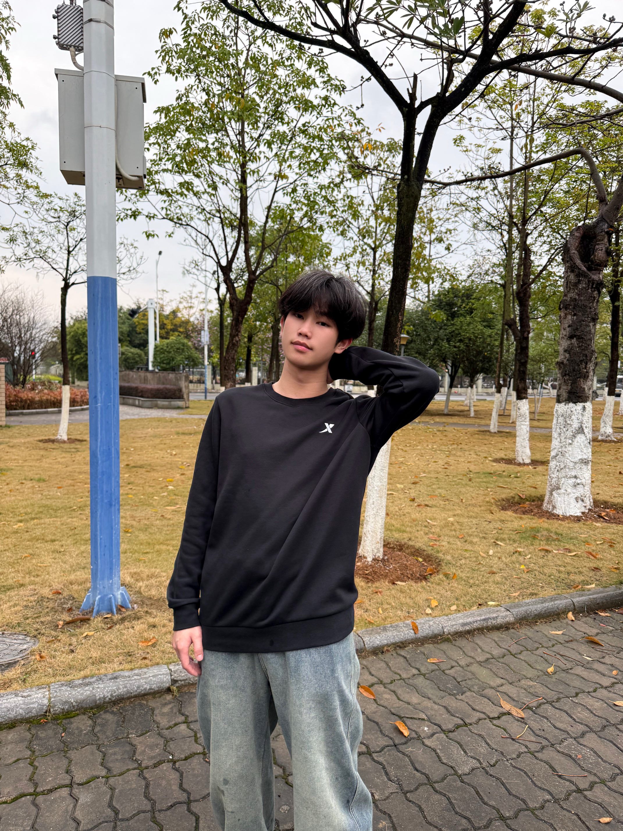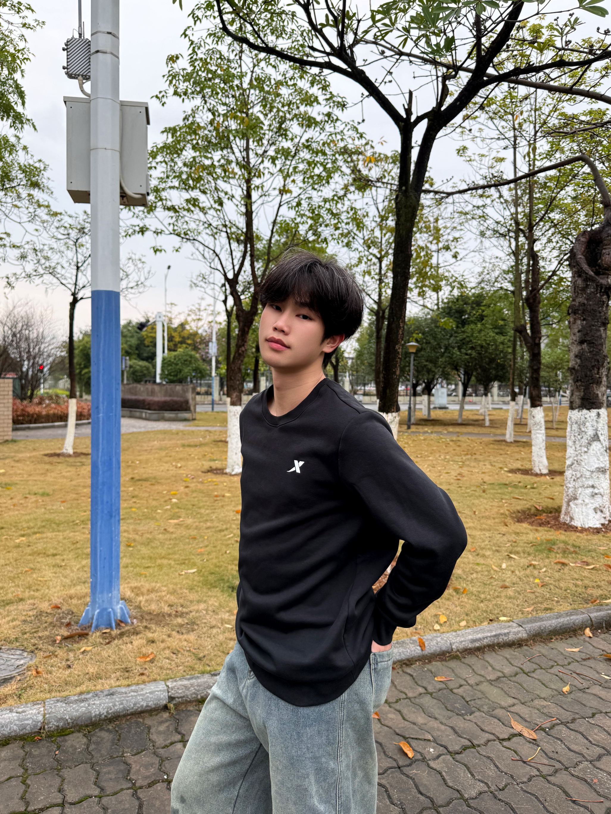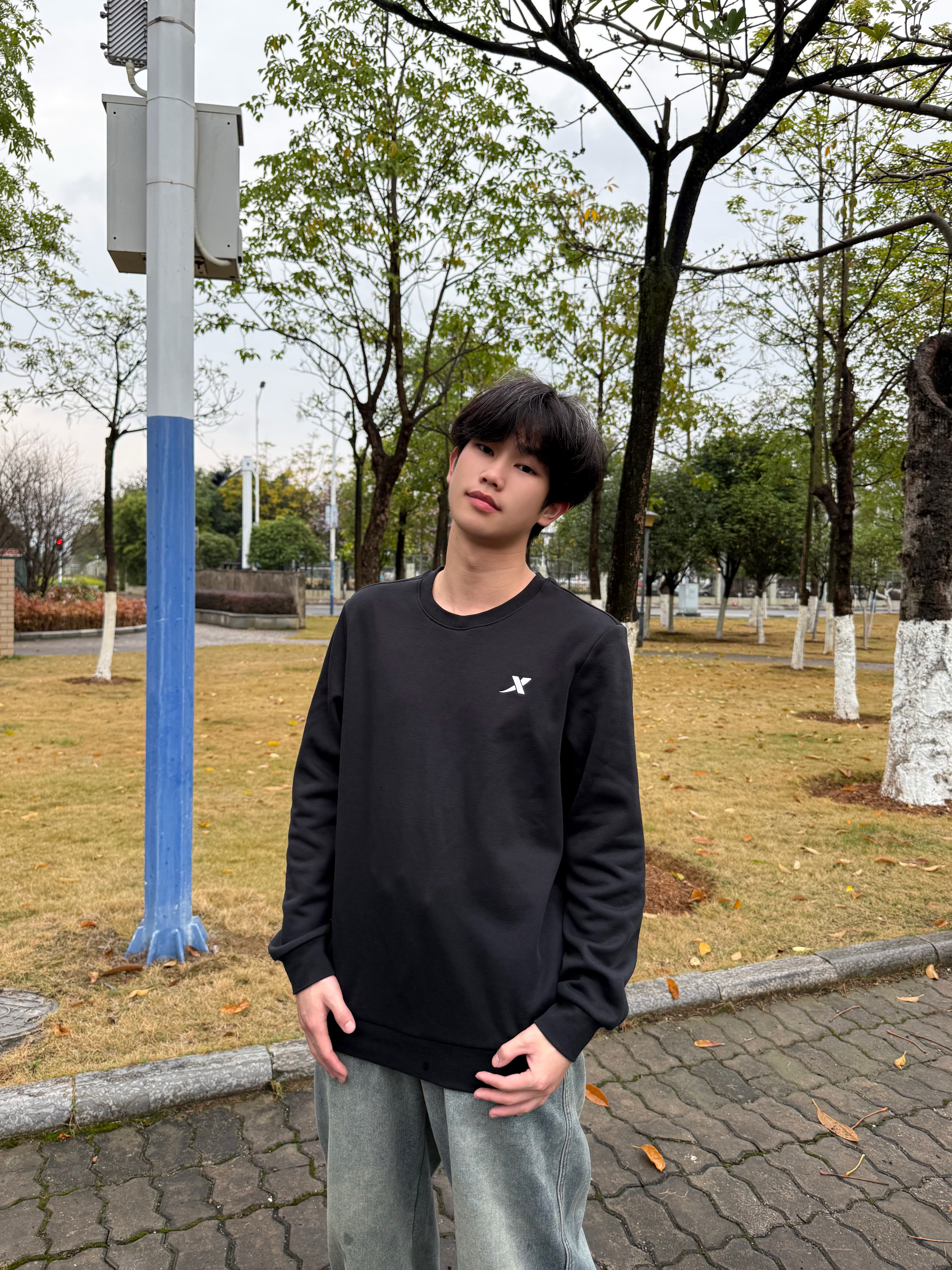 今天这套出门真的很舒服 不用费心搭配,直接套上就能出门,轻松拿捏松弛 上身特步基础款黑色圆领卫衣°,胸前还有小logo点缀 简约又百搭 宽松的版型上身起来很显瘦,单穿或者叠穿都合适 下身在搭配一件牛仔裤👖整体就是一身黑➕小白鞋的组合,不用动脑子,5分钟就能搞定出门 开春通勤简单穿