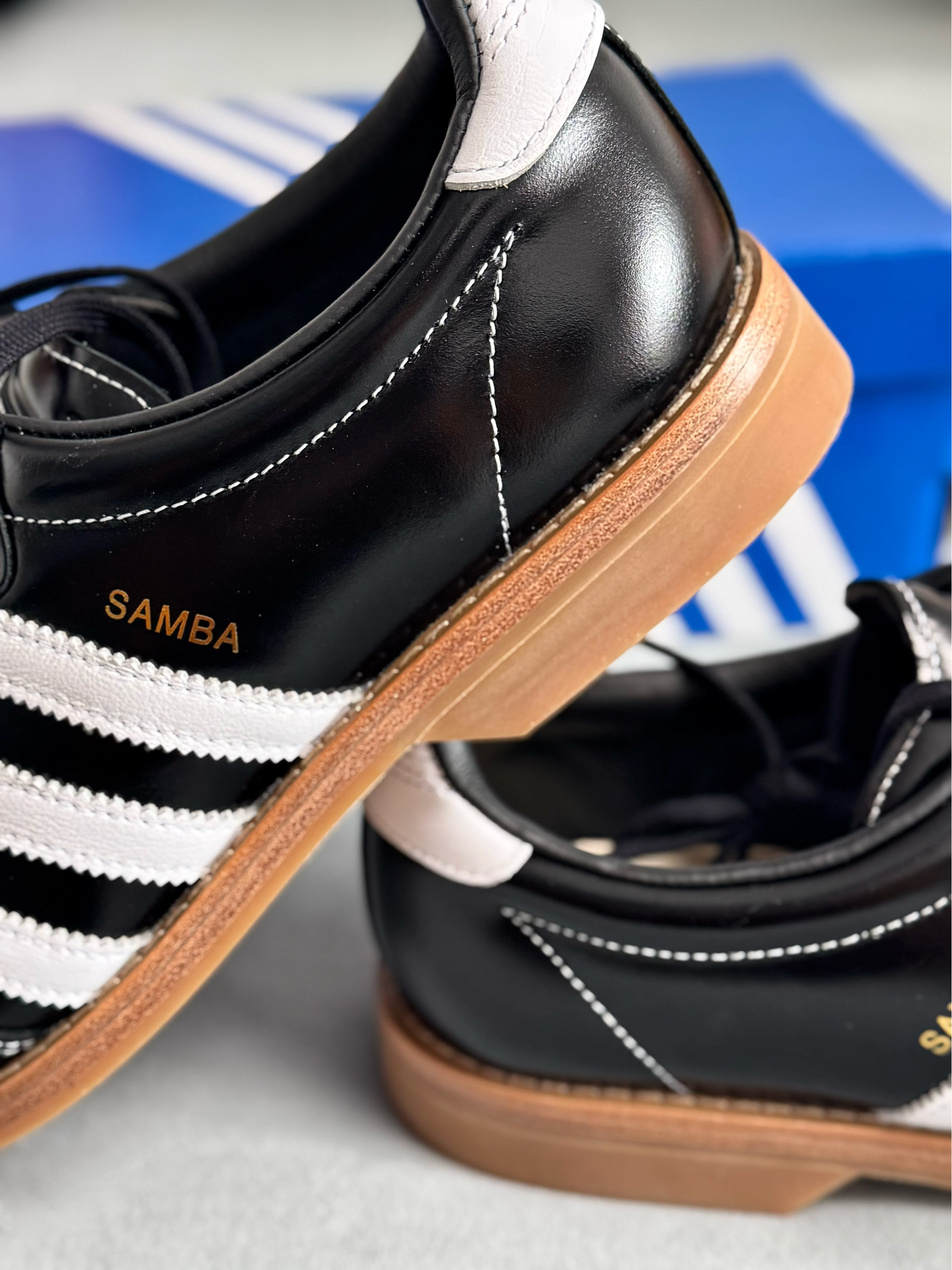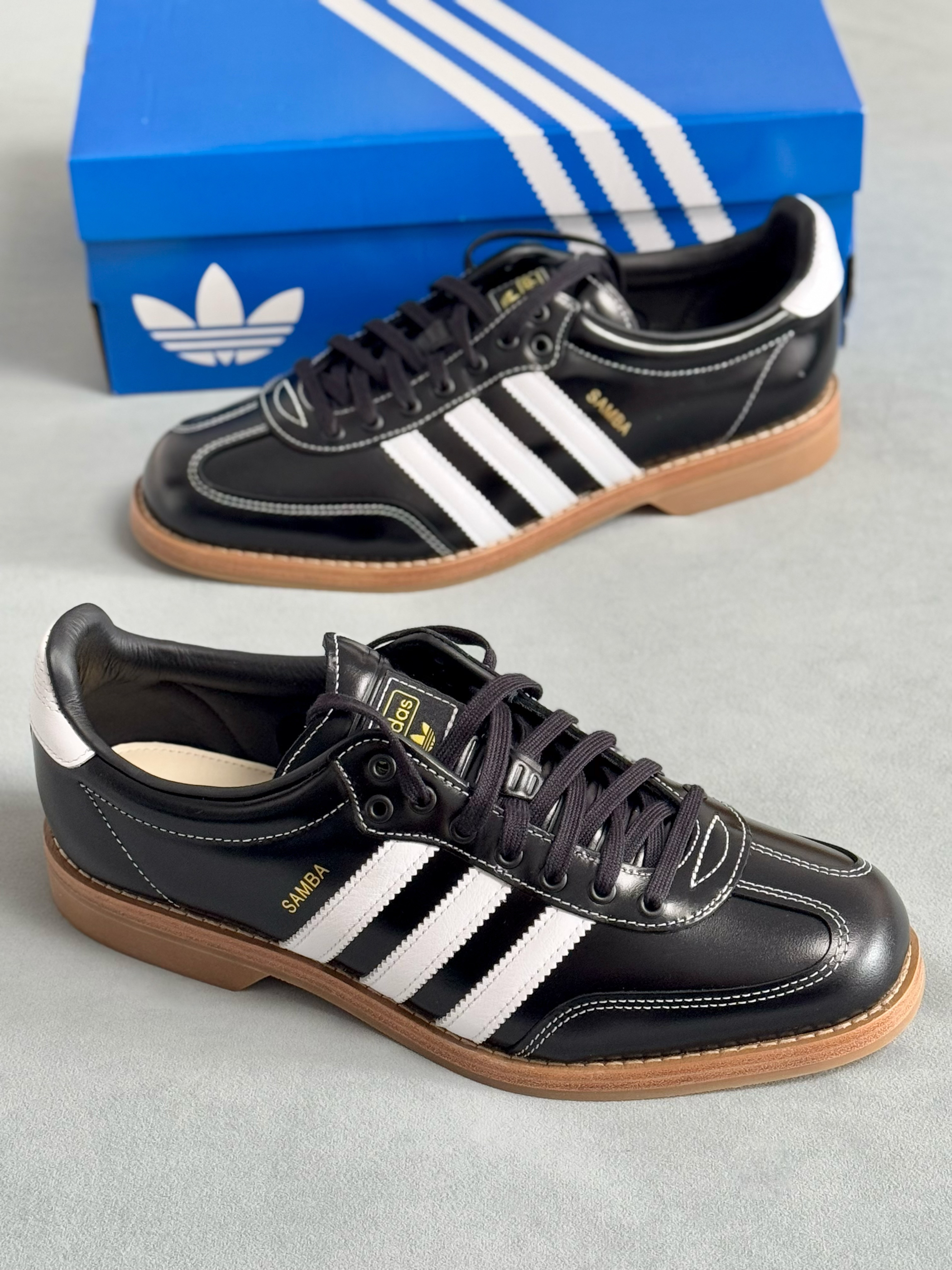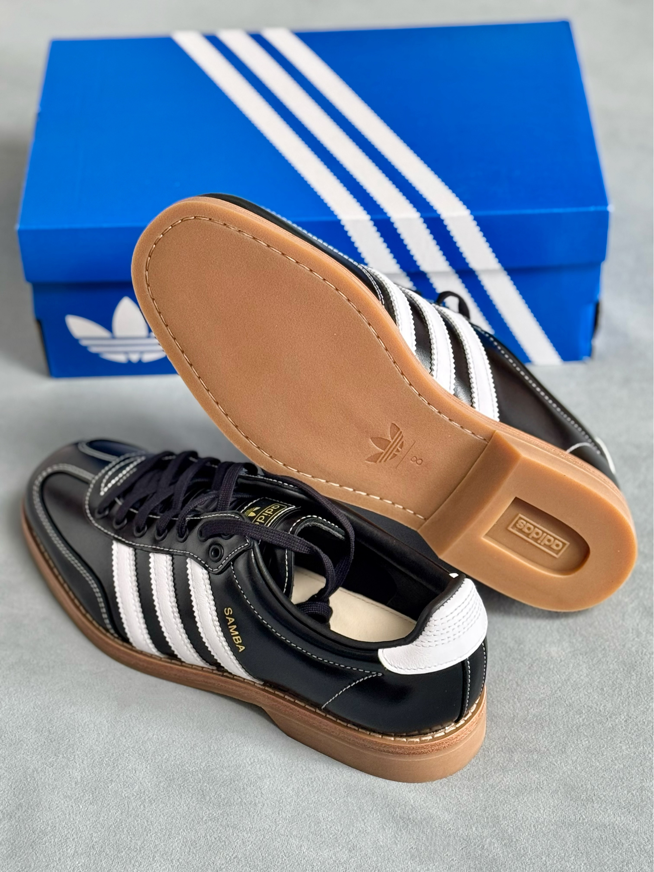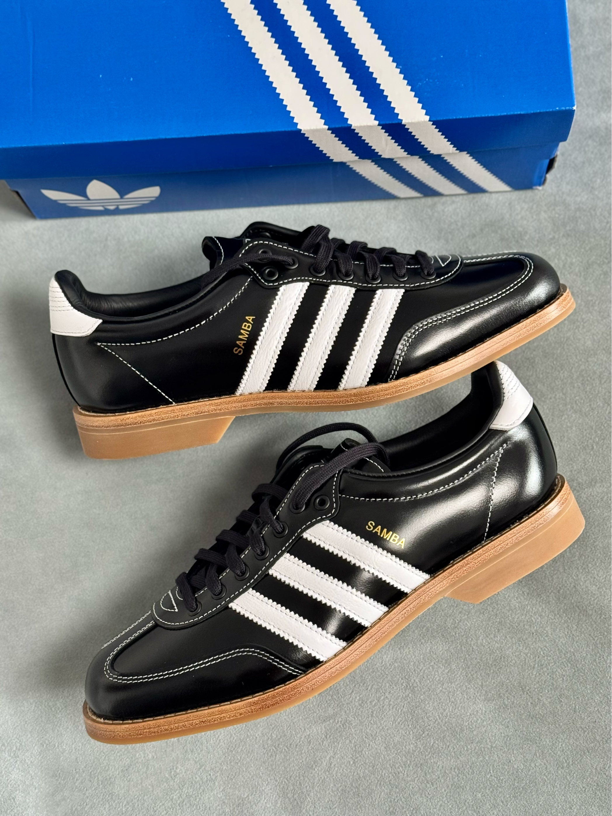 经典的samba和保龄球鞋型完美结合 满满滴复古雅痞氛围感扑面而来 经典的黑白配色,日常穿搭好驾驭 全鞋是有光泽感牛皮头层革打造 质感看得见的好,整体廓形也不错 鞋底是全橡胶打造,没有防滑的底纹 防滑性比较一般,穿起来蛮舒适的 尺码选择上是不偏码的,正码选择即可 我觉得搭配休闲或者正装风都好看!
