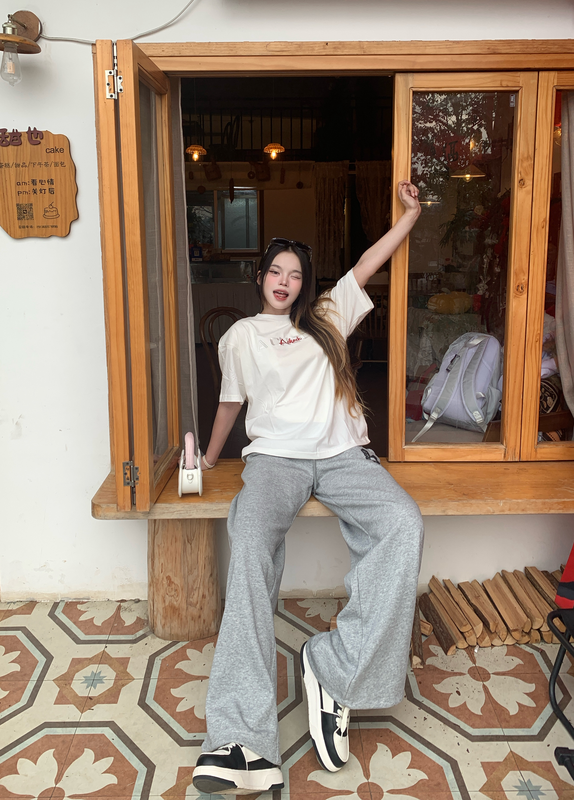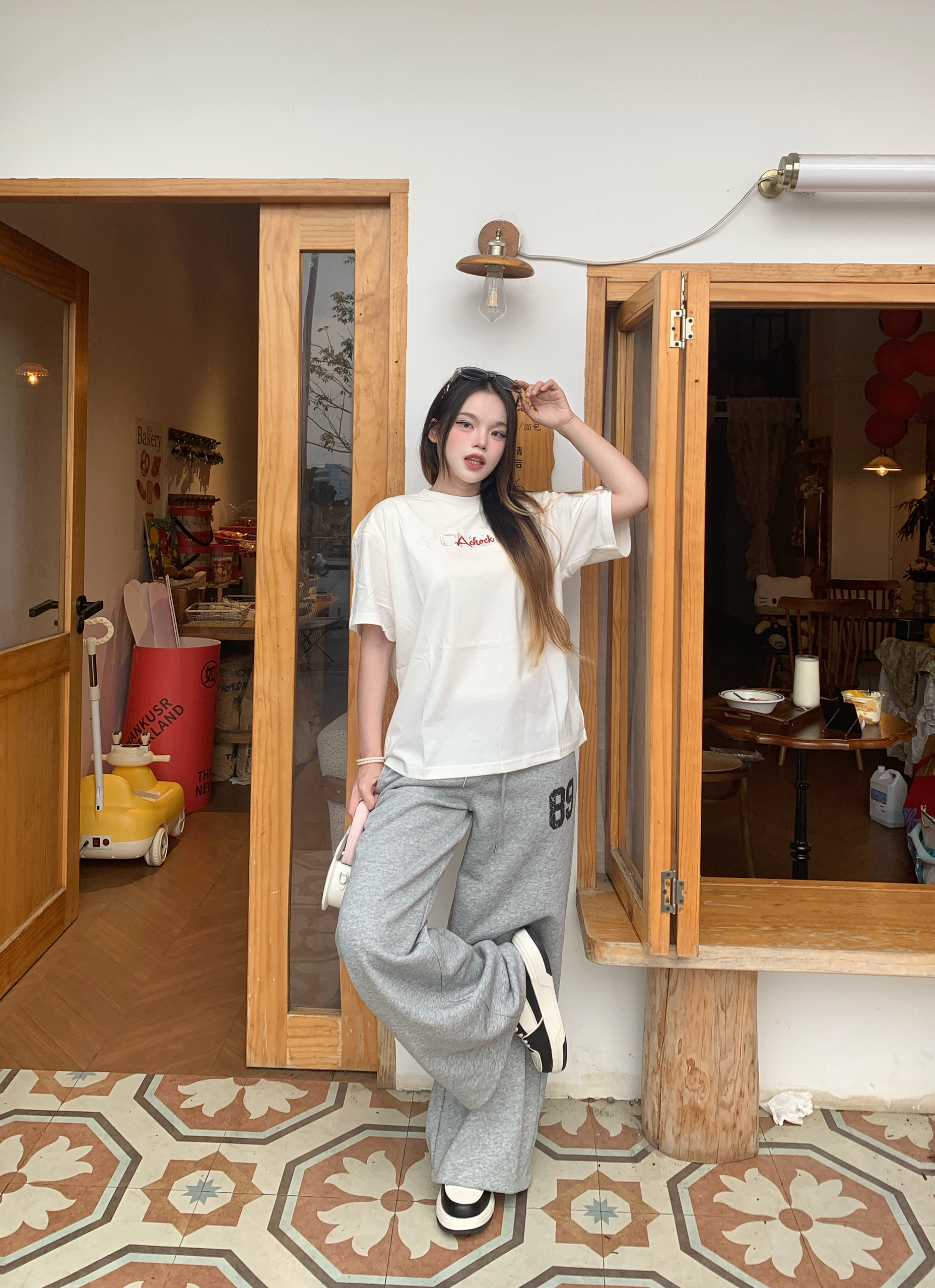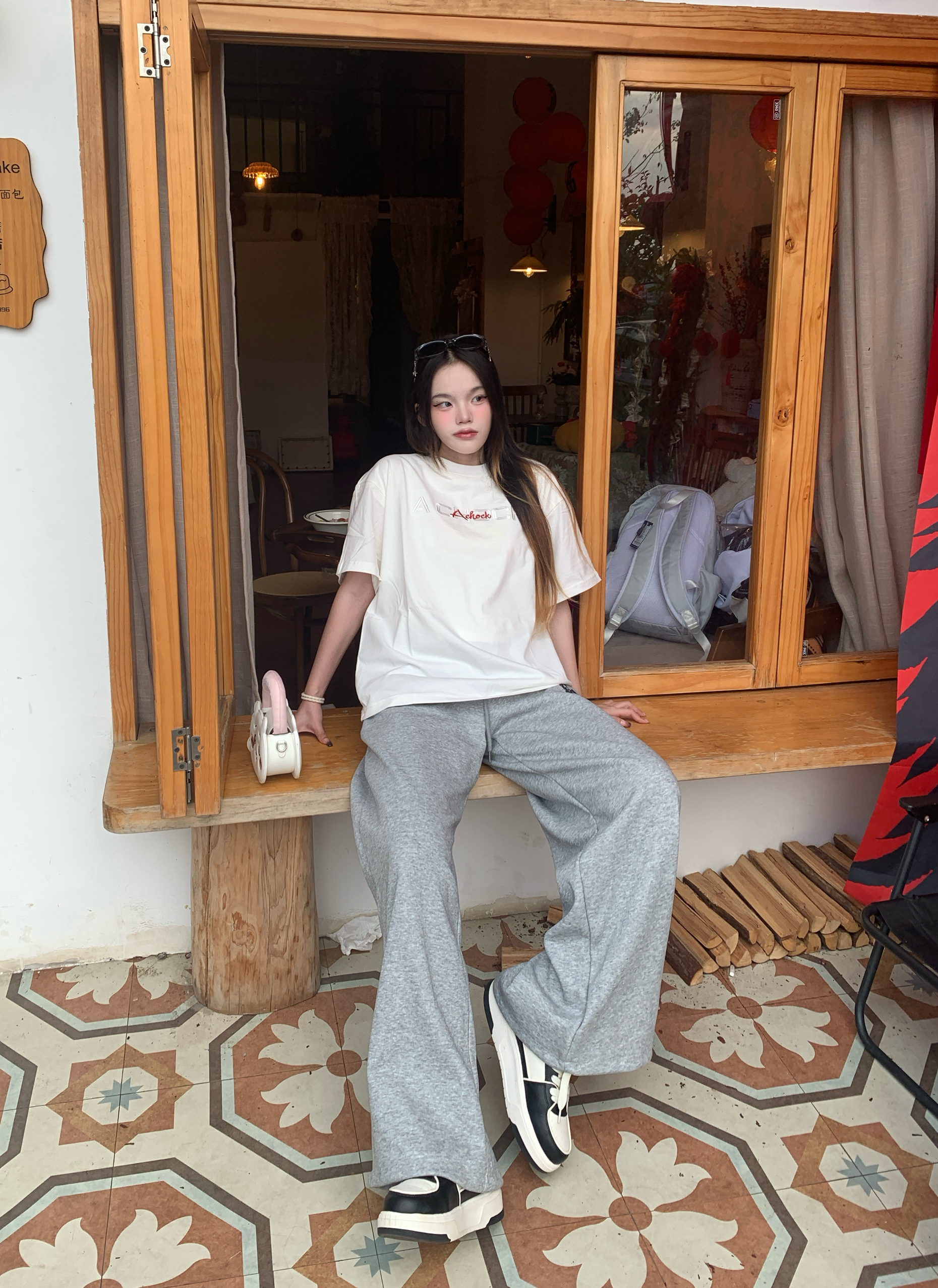 今天是韩系松弛感女孩👧🏻 oversize白T+阔腿裤的组合真的太绝了 宽松版型藏肉又随性, 再配上厚底鞋,完全松弛感 随便拍拍都很出片,韩系氛围感直接拉满~ 我165/96穿的s