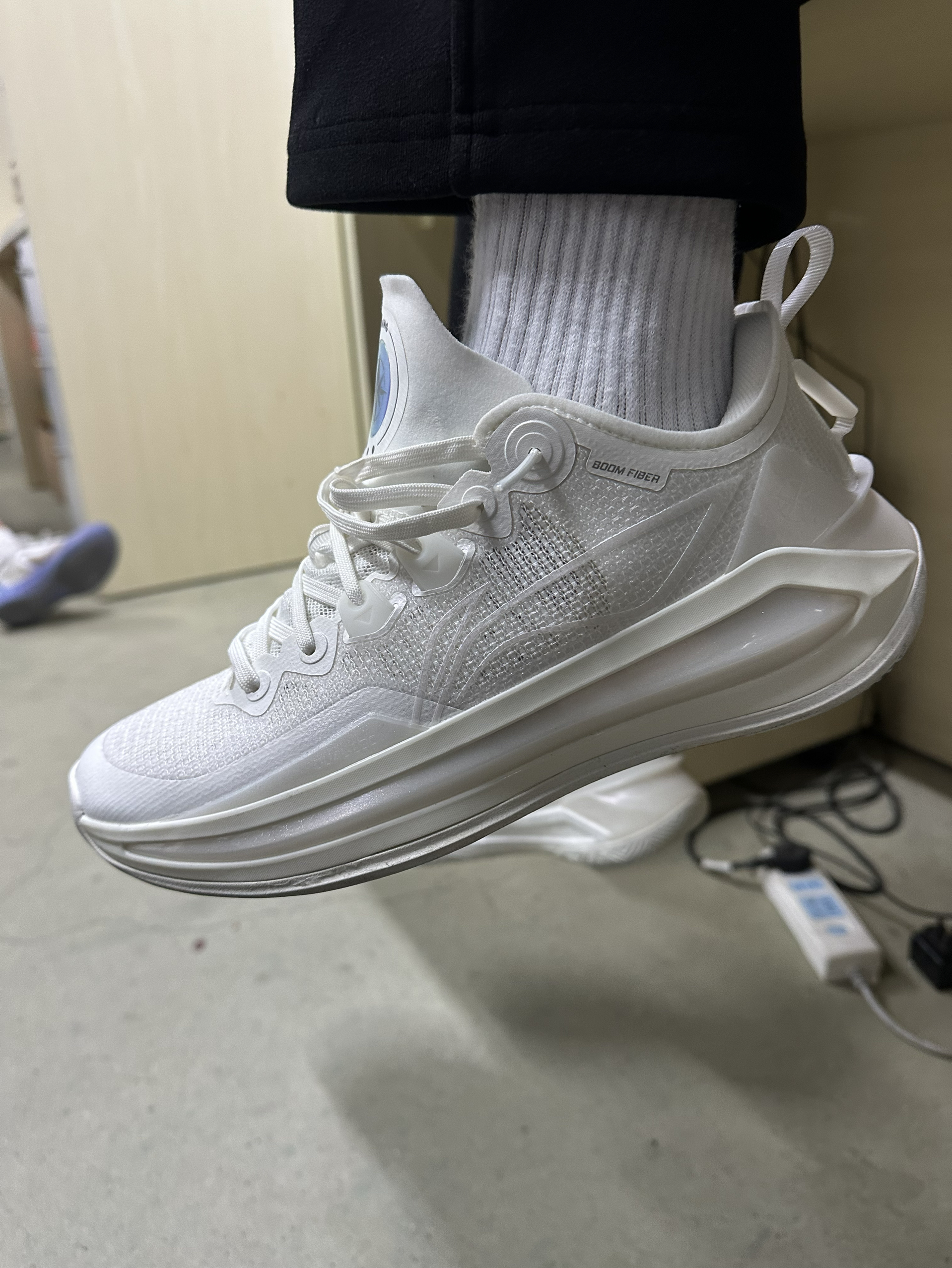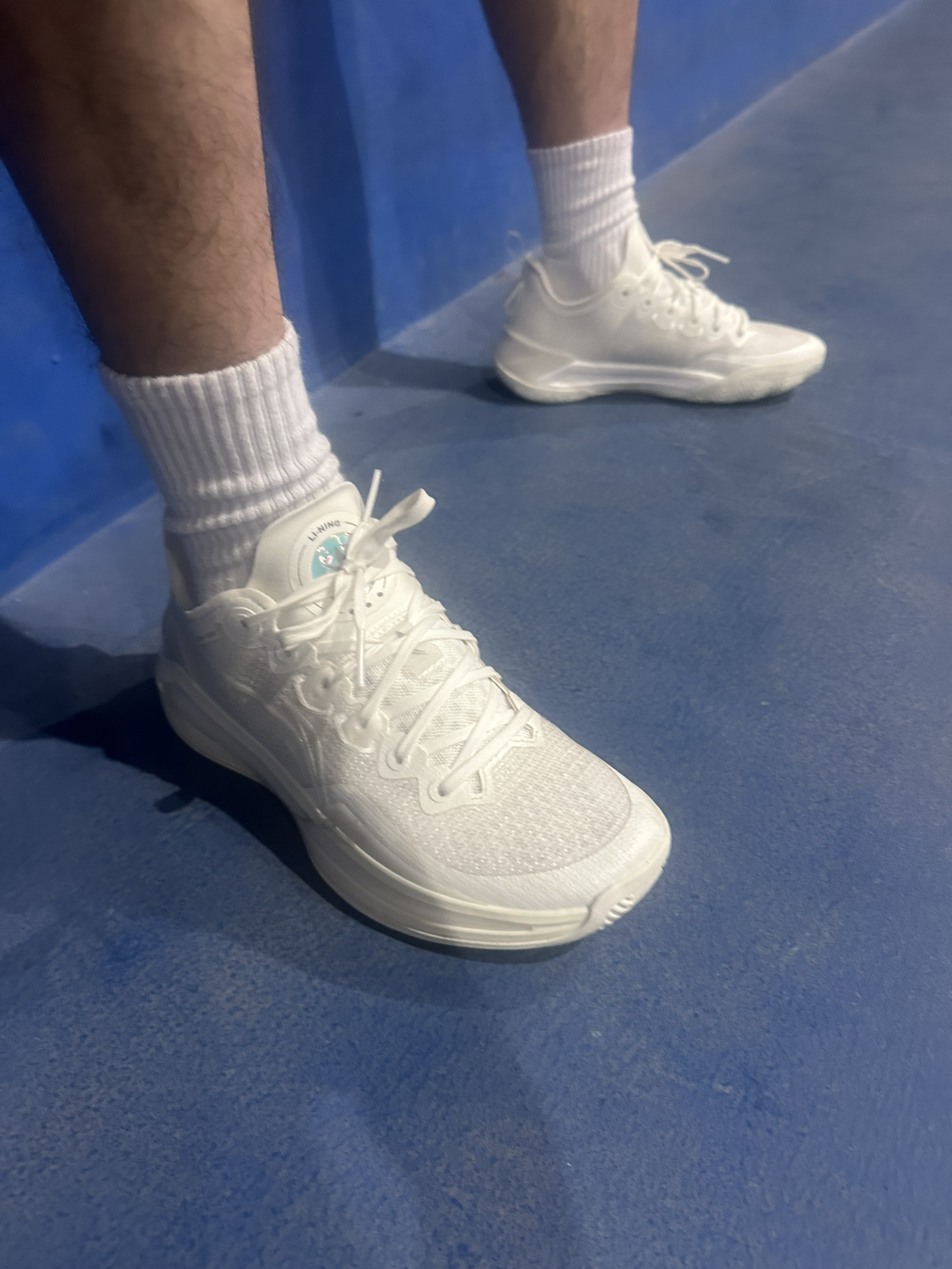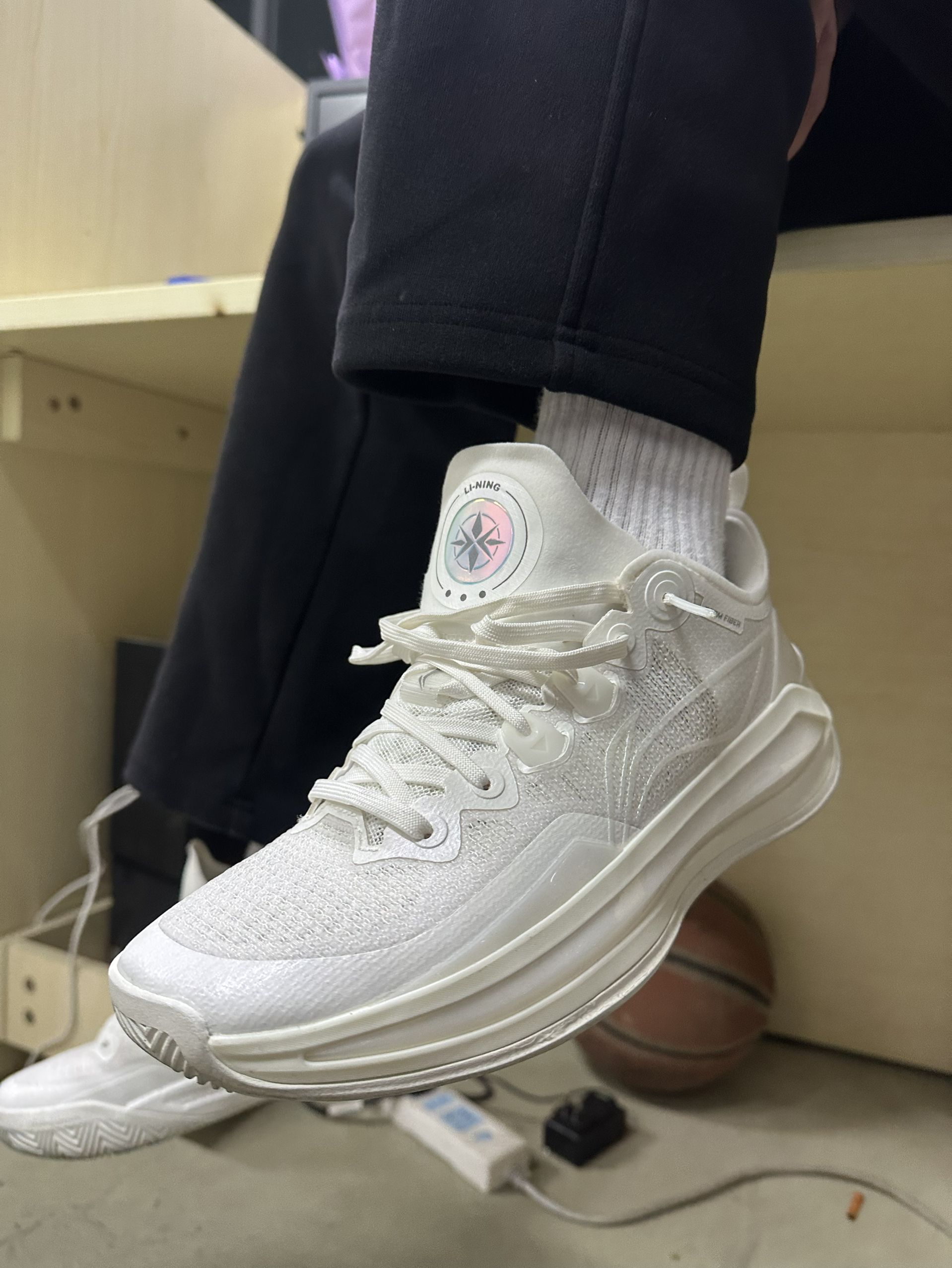 今天在学校打球上脚体验了一下李宁利刃3V2篮球鞋,外观白色简约高级,锋利鞋型搭配精致细节,半透明TPU层次丰富,色彩搭配清爽耐看上脚气场拉满。脚感体验超出预期,全掌䨻中底软弹适中,落地缓冲扎实,起跳回弹迅速,不软塌不生硬。低帮设计解放脚踝,灵活度拉满,动态飞线锁定到位,鞋面贴合不压脚,透气效果优秀。中足抗扭与防侧翻结构稳固,变向不晃、急停稳准,抓地耐磨表现在线。打球时快攻跑动轻便无负担,颜值能打、...