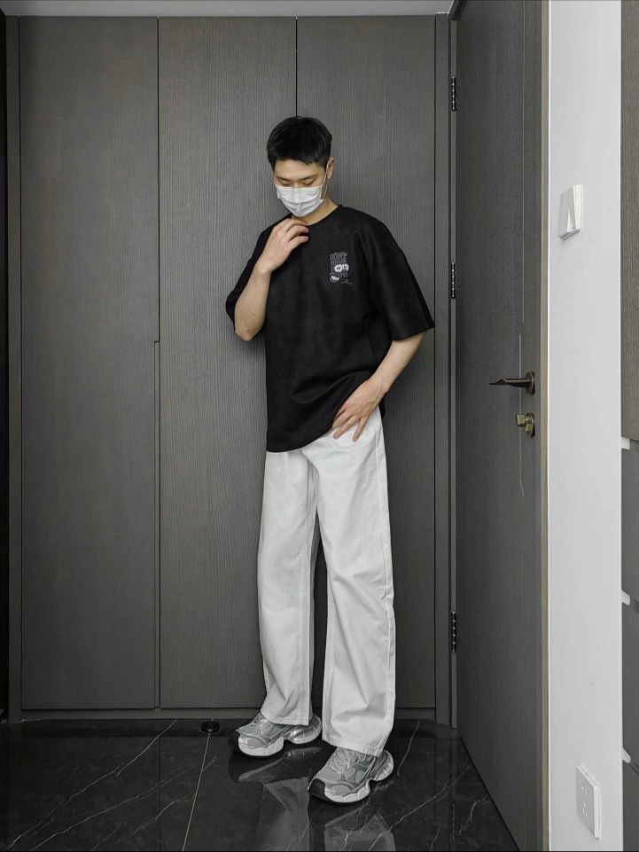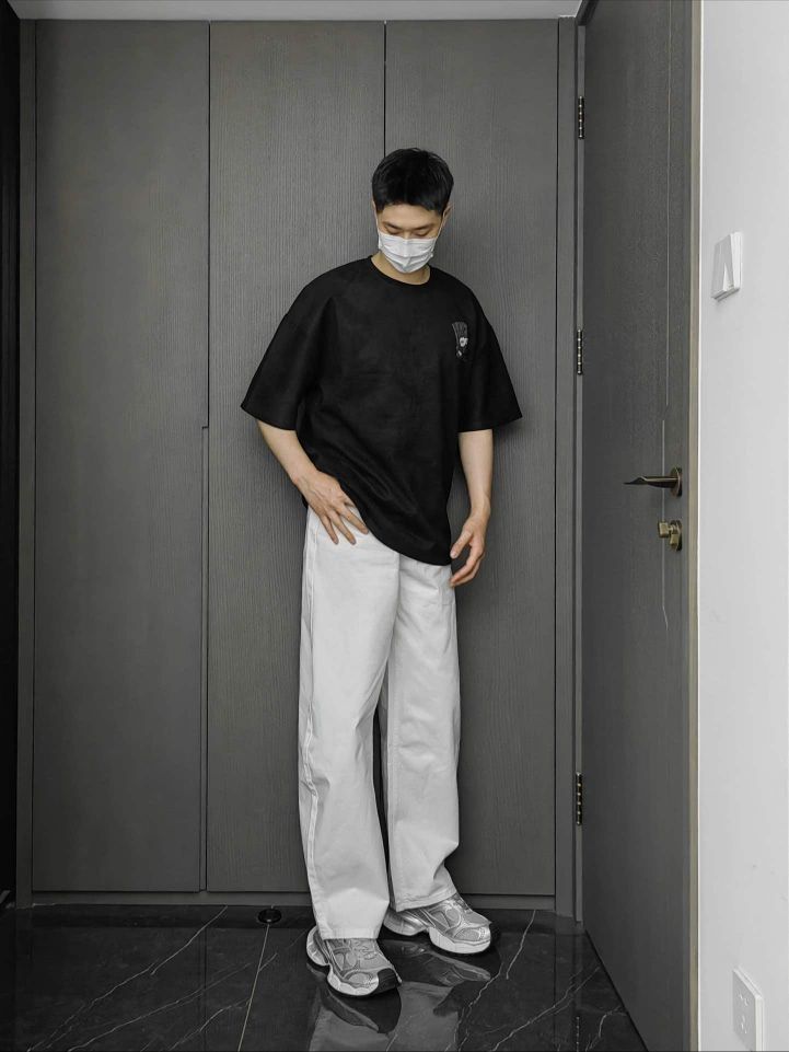 这套穿搭简直是“懒人福音”,基础款也能穿出高级感!黑色T恤上的小徽章设计很加分,搭配白色阔腿裤,整体造型干净利落,随便一拍都很有质感~