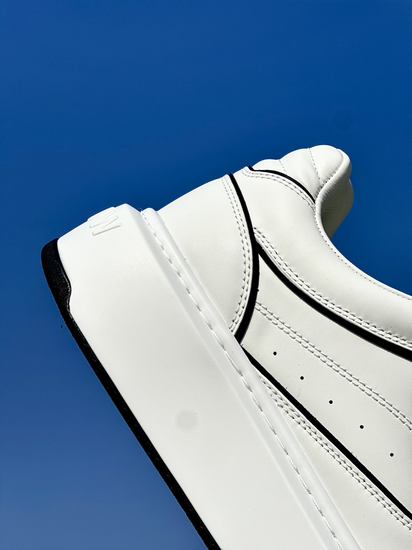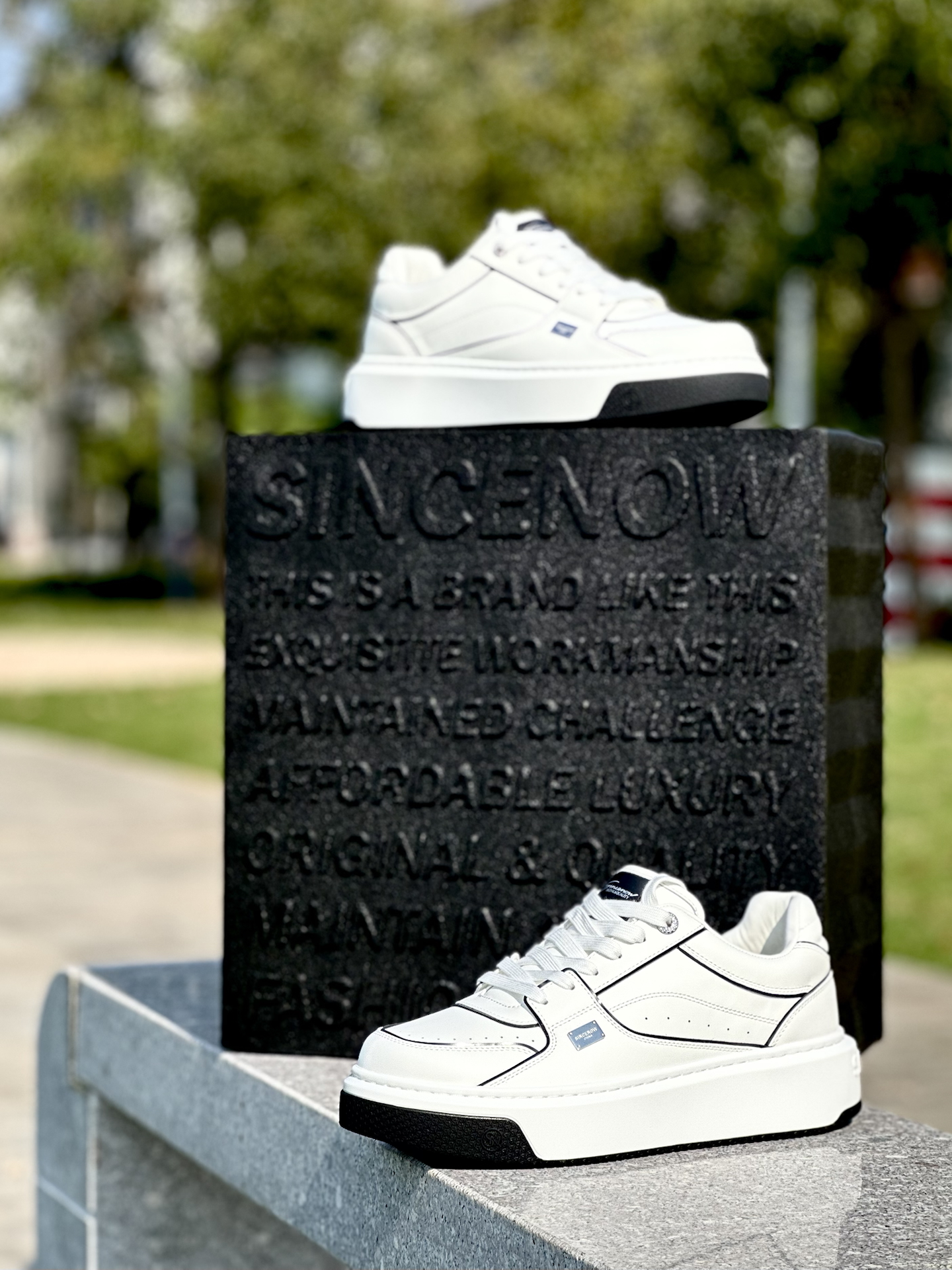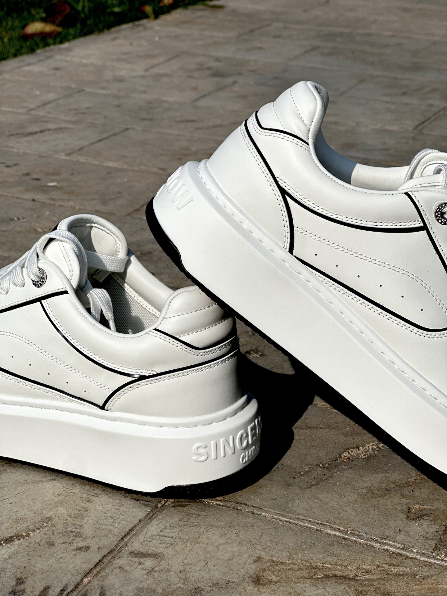 SINCENOW小白鞋颜值确实不错,白+黑明线设计,干净又不单调,厚底还悄悄显腿长,阳光下皮质质感超棒。 搭配也省心,配浅灰卫裤、牛仔裤都好看,日常通勤、出门逛gai都能穿,慵懒感直接拉满。 脚感也舒服,厚底软弹,走一下午都不累脚,鞋底防滑也稳。尺码正,我平时穿啥码这双就啥码,包裹感刚好。 这双做工和皮质都很扎实,一分钱一分货确实是🤏🏻#买双新鞋哄自己上学 #此人鞋商极高 #就是个...