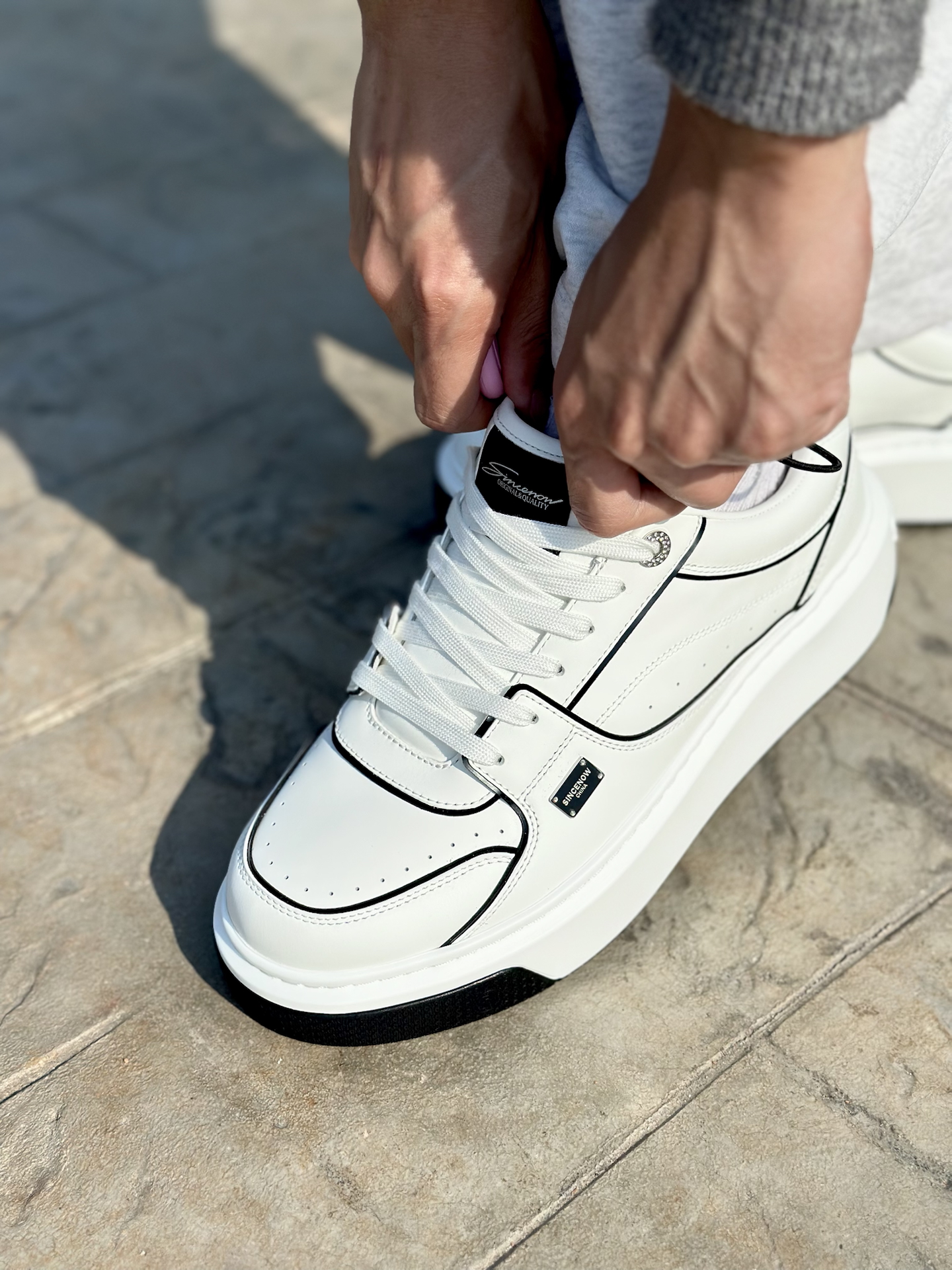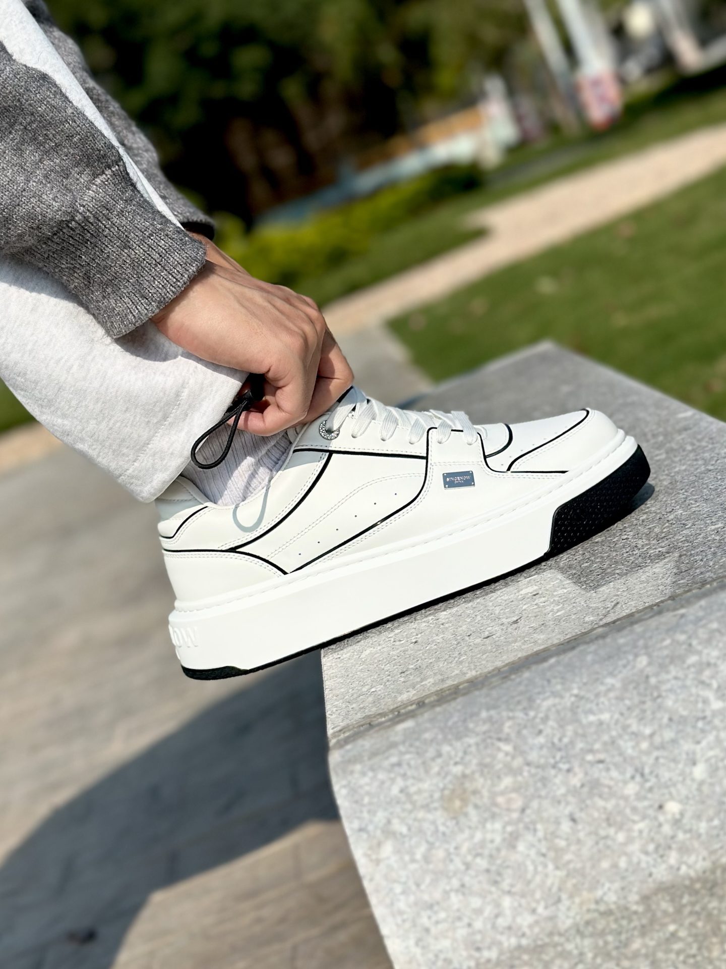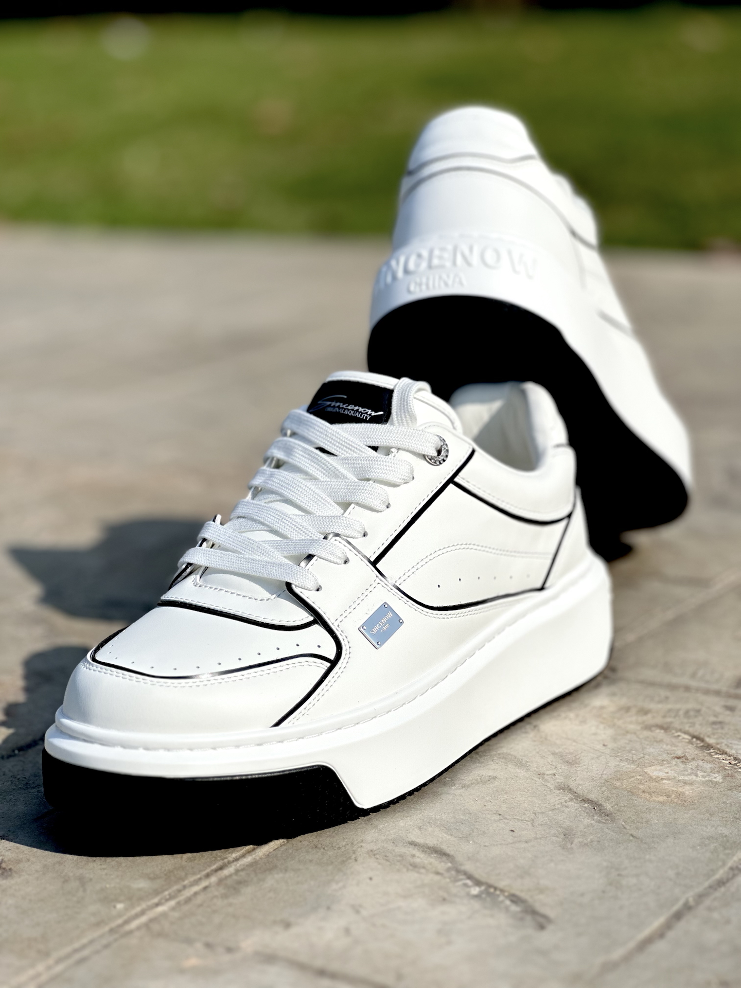 SINCENOW小白鞋颜值确实不错,白+黑明线设计,干净又不单调,厚底还悄悄显腿长,阳光下皮质质感超棒。 搭配也省心,配浅灰卫裤、牛仔裤都好看,日常通勤、出门逛gai都能穿,慵懒感直接拉满。 脚感也舒服,厚底软弹,走一下午都不累脚,鞋底防滑也稳。尺码正,我平时穿啥码这双就啥码,包裹感刚好。 这双做工和皮质都很扎实,一分钱一分货确实是🤏🏻#买双新鞋哄自己上学 #此人鞋商极高 #就是个...