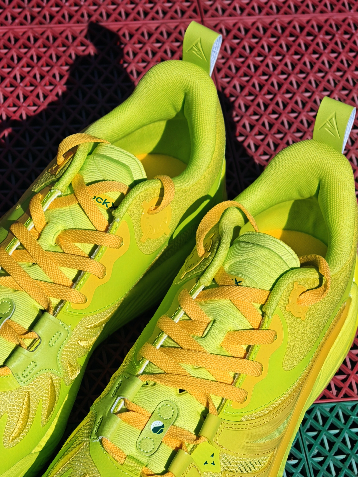 要说去年在创意上做的很出色的鞋款,AR3绝对坐二望一。全新的球员版鞋垫让普通的球鞋爱好者也能感受到NBA球员的穿着体验! 马上要发售的绿❌联名,在颜值上真的一眼吸睛。荧光绿的鞋身搭配细节的点缀,绿❌的logo则放在了鞋垫上。实际上脚,偏宽的鞋楦更适合国人,实战中在各方面的表现不偏科,很适合喜爱突破打法的朋友。 目前的性价比很不错,喜欢的朋友可以入手! #准者里夫斯三代