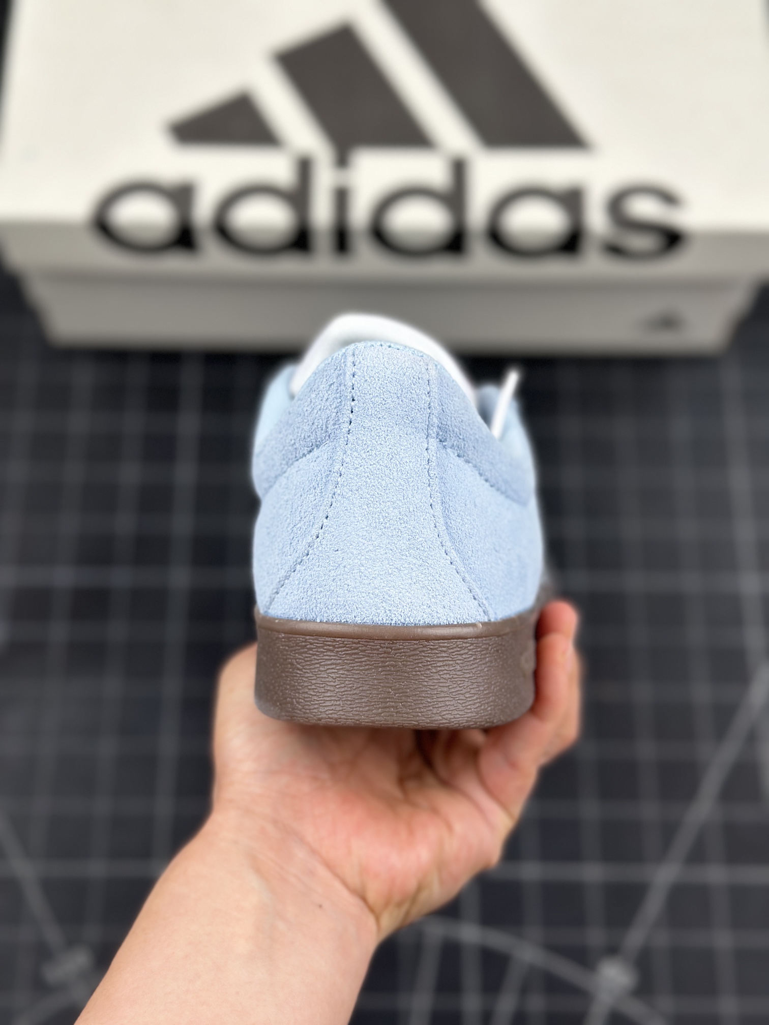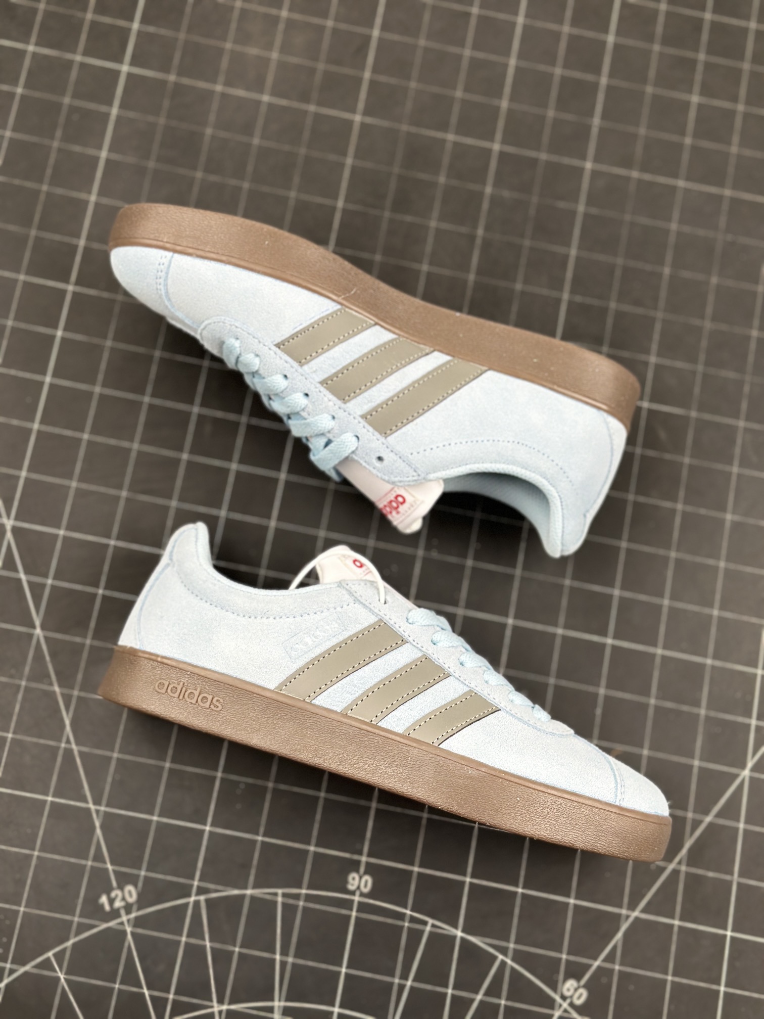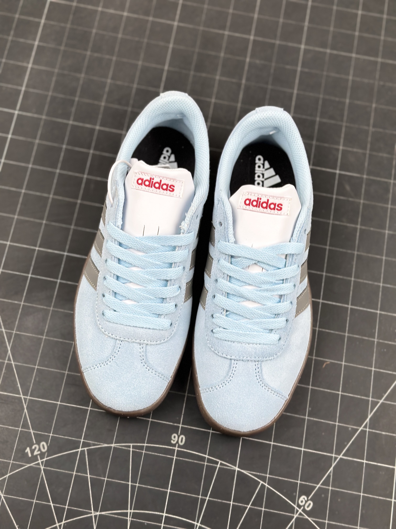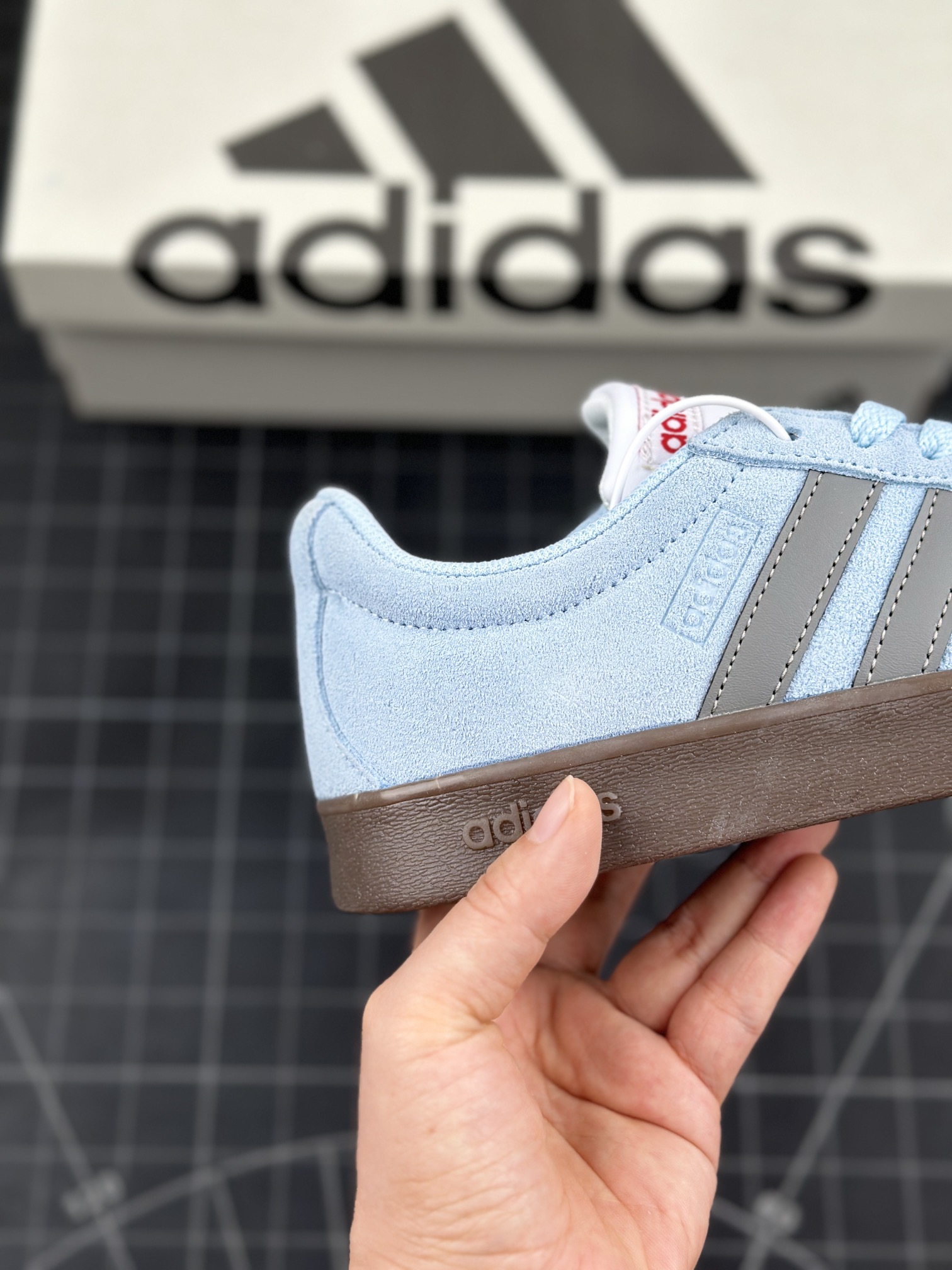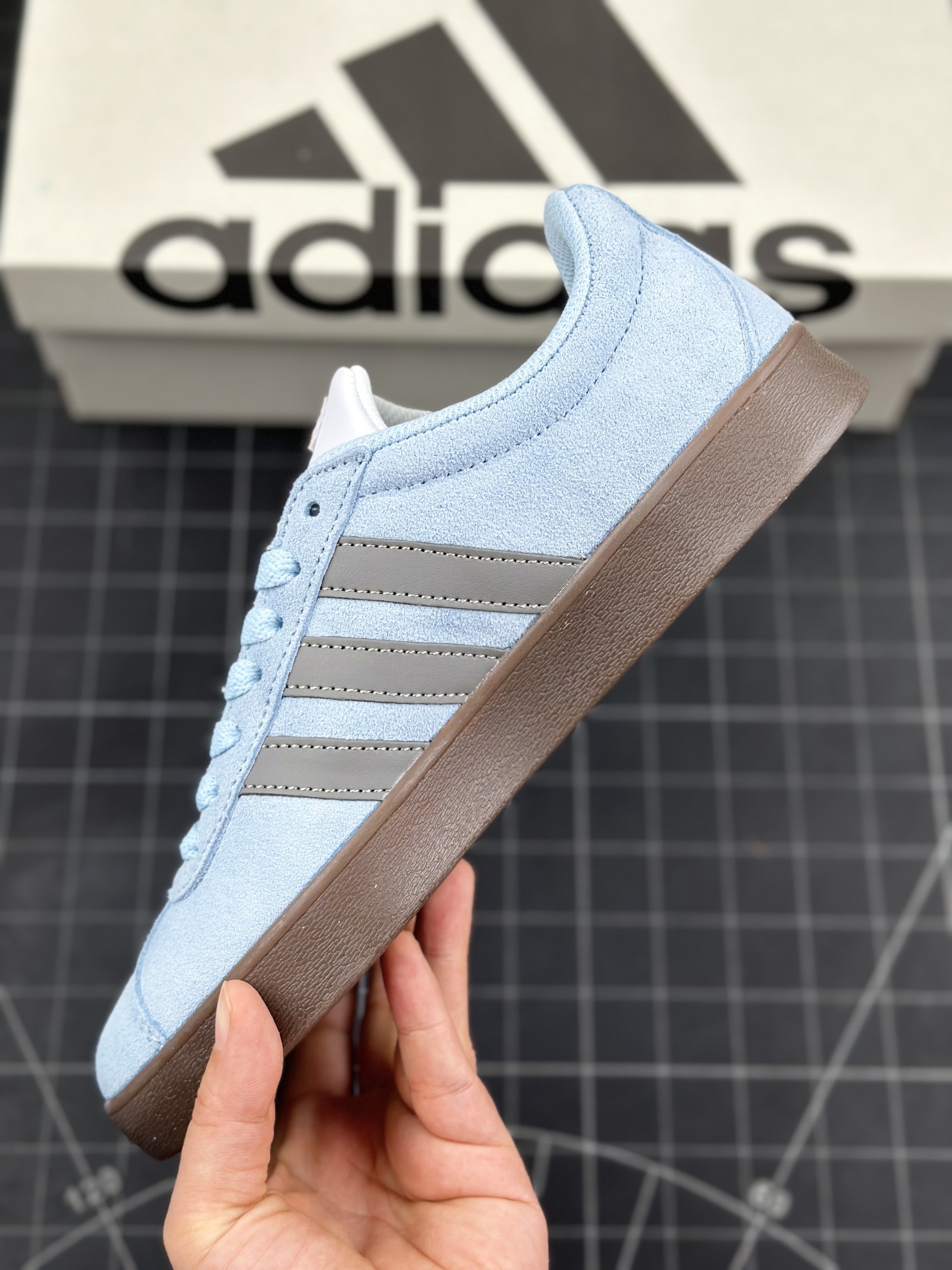 谁还没被这双baby蓝阿迪德训鞋美到! 浅雾霾蓝麂皮+复古生胶底,温柔到骨子里的配色,一眼就沦陷💙 • 颜值暴击:低饱和奶蓝不挑皮,三条纹做了灰调过渡,比纯白更有层次感,麂皮质感拉满,上脚就是韩系温柔学姐风 • 百搭王者:配牛仔裤、百褶裙、运动裤都绝了!早春穿它出门,随便一套都能拍出氛围感大片,通勤/约会/上学都能hold住 • 细节控狂喜:生胶底耐磨又复古,鞋型是经典T头设计,修饰脚型显脚...