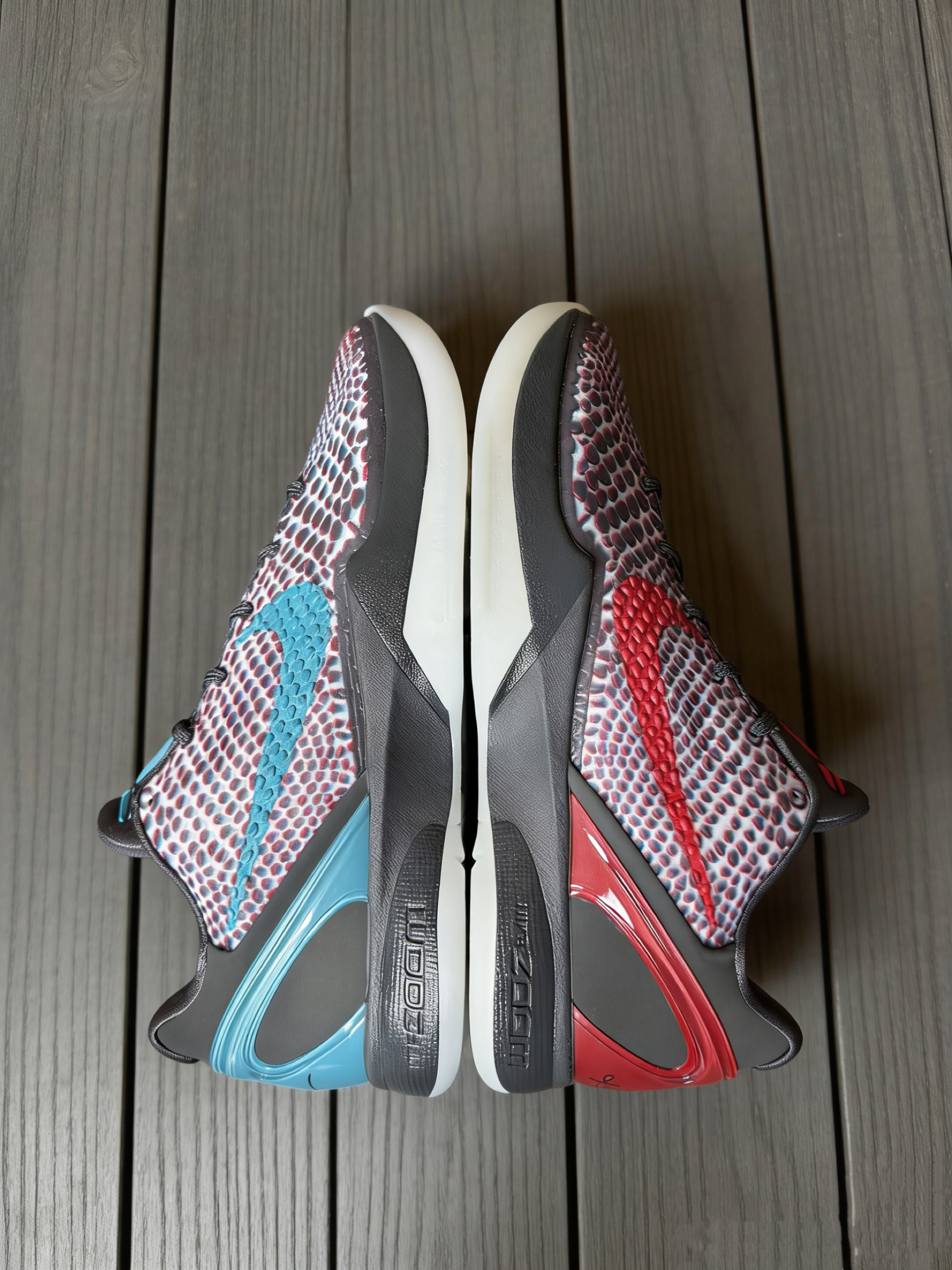 科比6裸眼3D鸳鸯配色,实战上脚感受来了! 鞋面蛇纹质感很顶,红蓝鸳鸯配色回头率超高,3D效果很有辨识度。 上脚包裹感很舒服,变向、突破都很跟脚,Zoom气垫反馈明显,场地感不错。 尺码正常,瘦脚正常码,宽脚可以大半码。 打球、日常穿搭都能hold住,颜值和实战都在线的一双。 #科比6 #Kobe6 #裸眼3D #鸳鸯球鞋 #实战篮球鞋 #球鞋分享 #鞋控日常 #识货优质笔记 #篮球鞋推荐