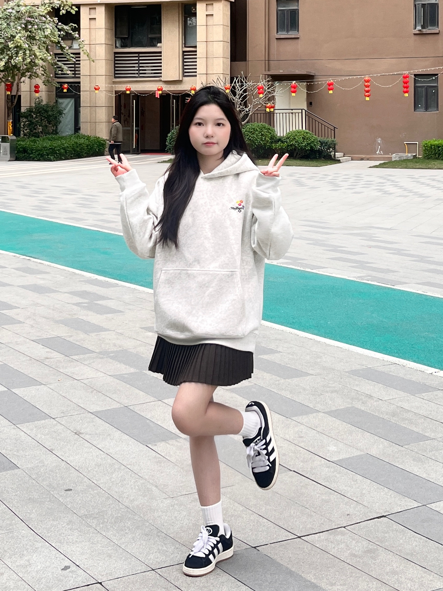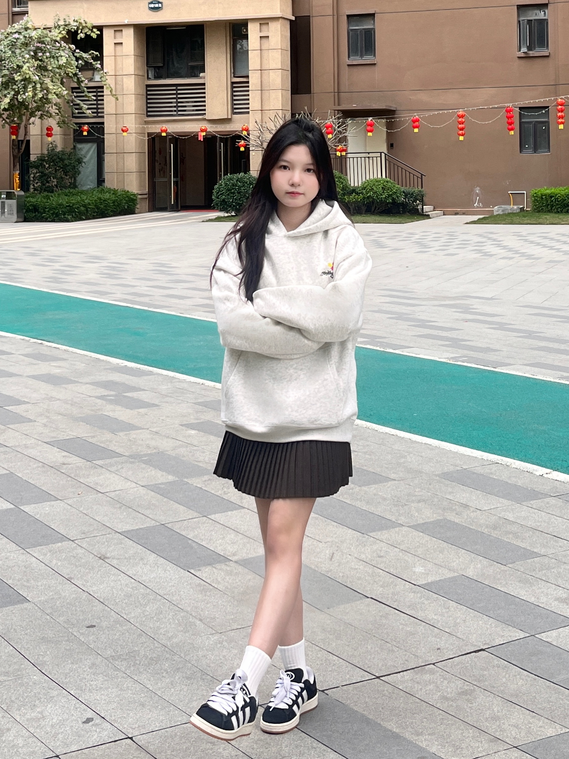 早春穿搭不纠结!卫衣+百褶裙yyds✨ 米灰卫衣慵懒又百搭,百褶裙高腰设计太懂小个子了,腿直接长10cm! 脚上这双黑白板鞋巨好穿,配白袜秒变元气少女👟 一套出门不用想,日常通勤、约会都超合适~ 谁穿谁好看,闭眼冲就对了💖