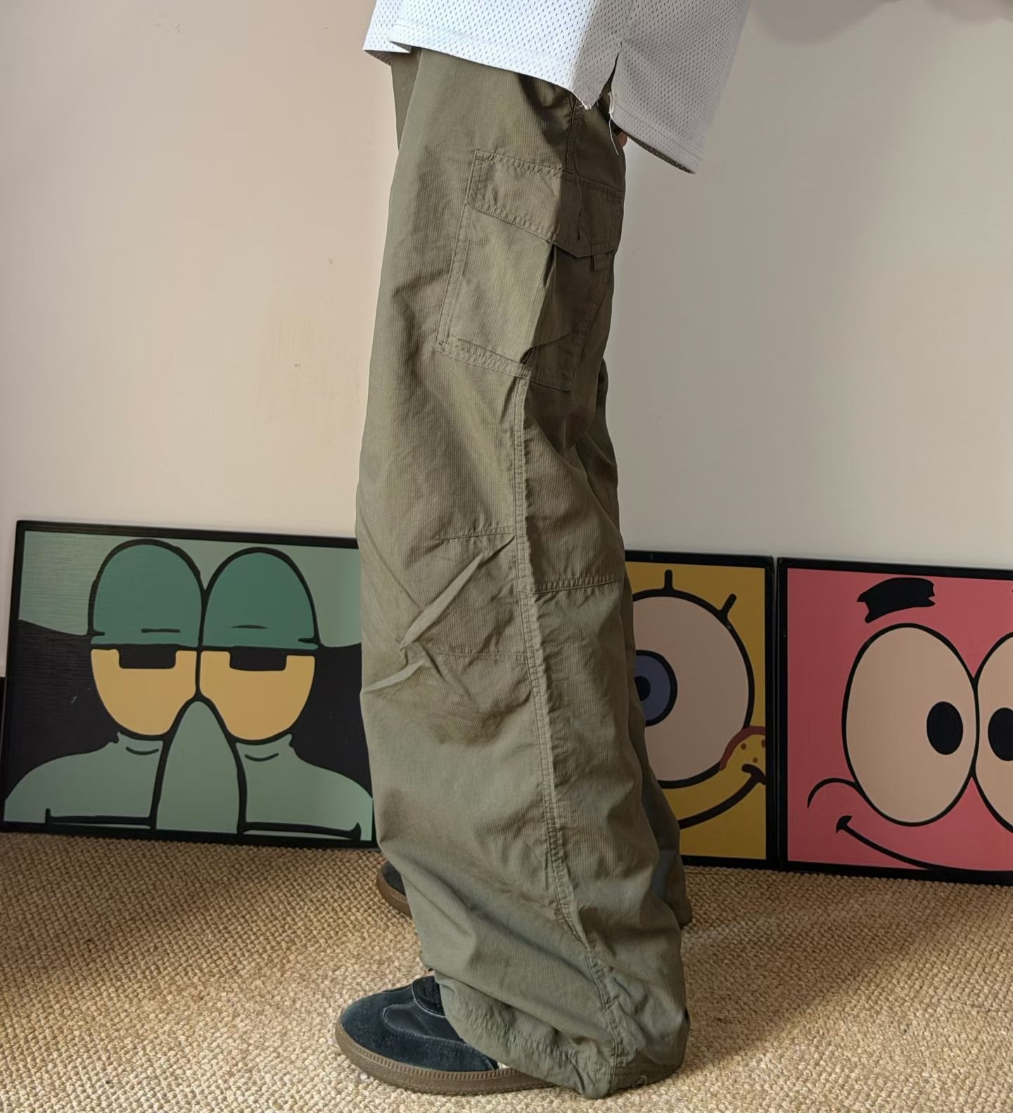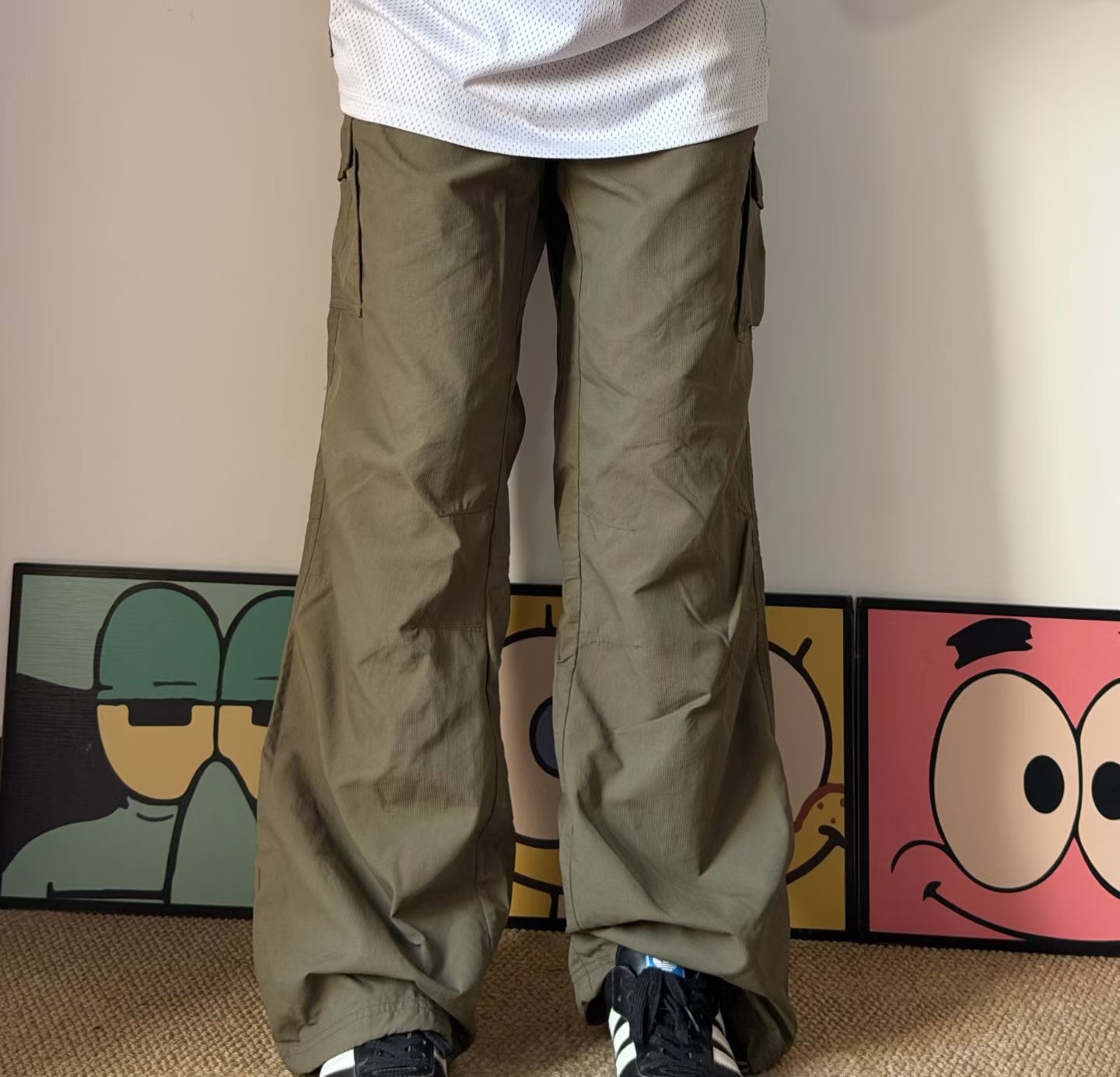 这条美式潮牌高街多口袋工装休闲长裤真的太 实用了!多口袋设计不仅增加了裤子的功能性,还让整 体造型更有层次感,超能装的同时时尚感不减。高街风 格设计,潮流感拉满。宽松直筒版型藏肉显瘦,对各种 身材都很友好,走起路来宽松自在。面料质感很好,挺 括有型且透气,久坐也不易变形。日常出街、约会、通 勤,它都能轻松搭配,是衣橱里不可或缺的时尚单品。