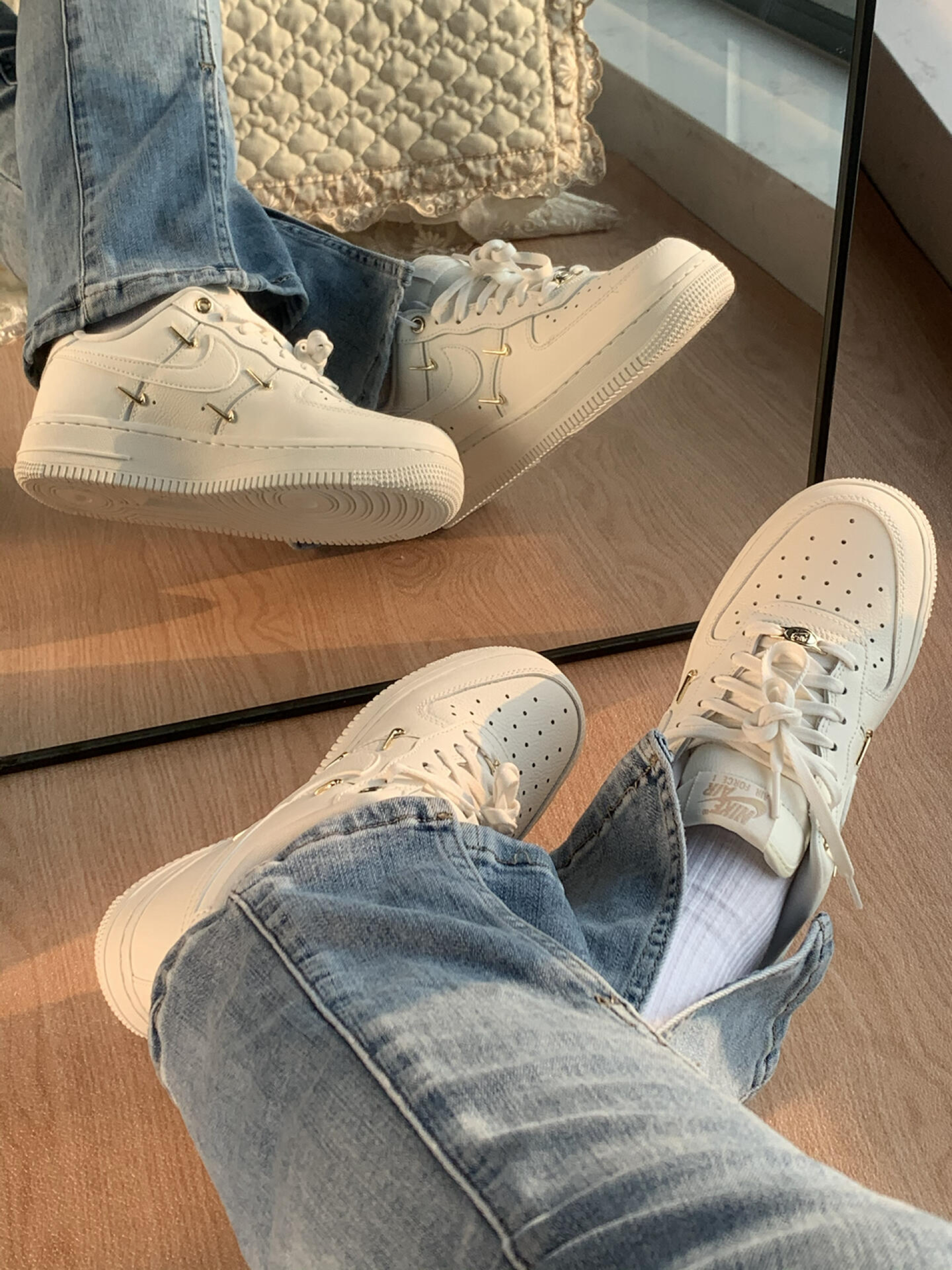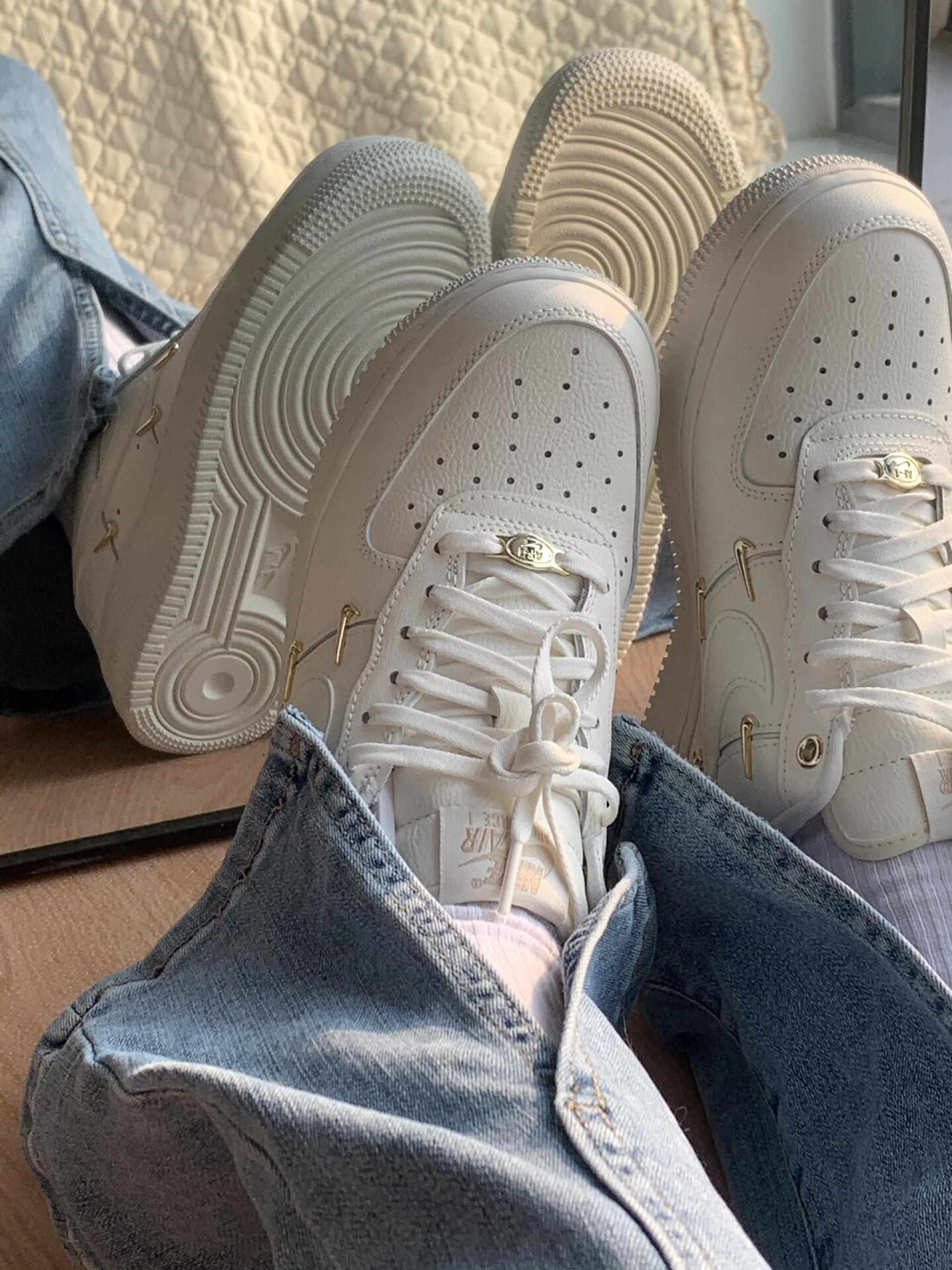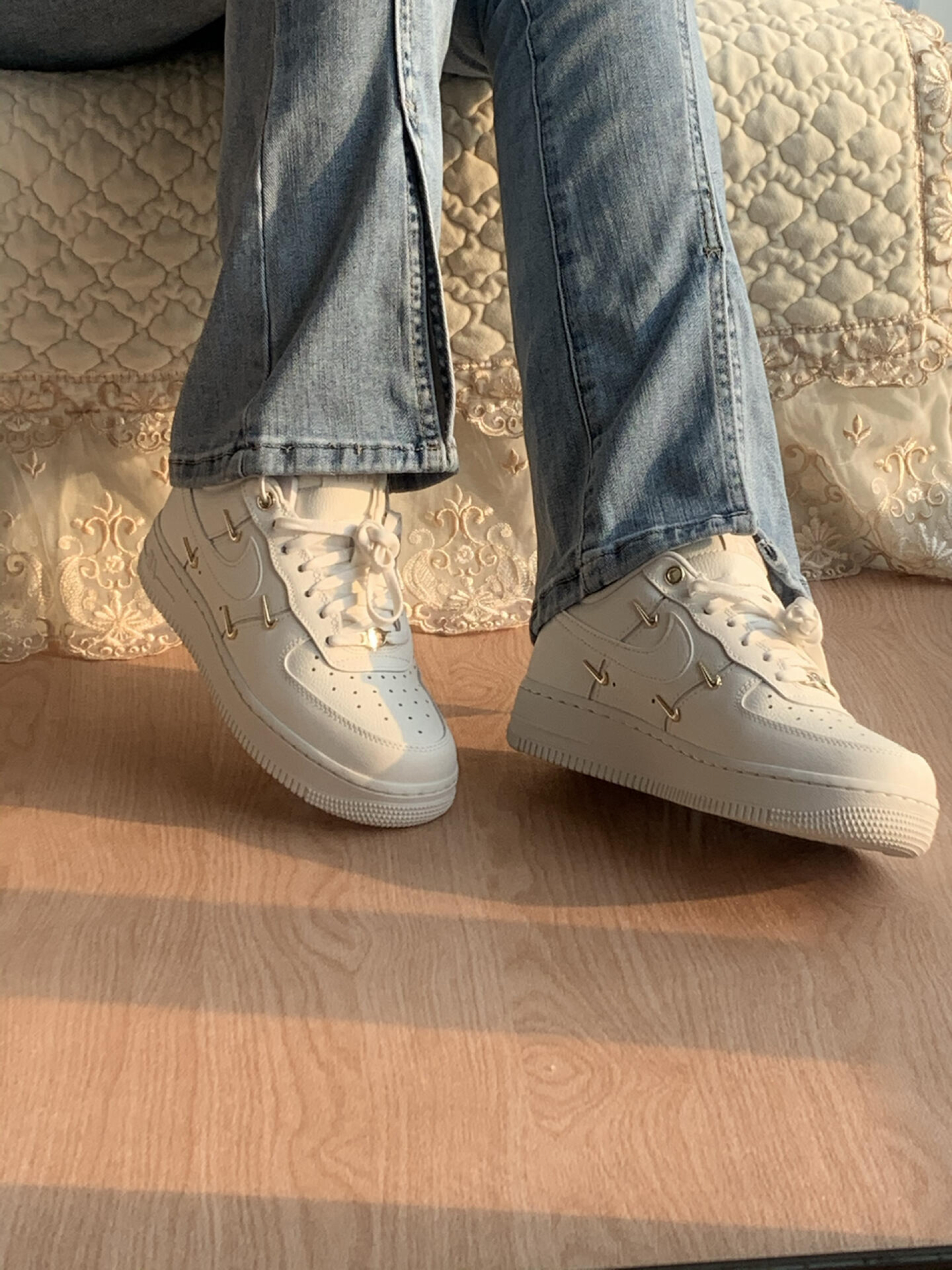 空军的脚感真的是nike里面我最喜欢的! 但是普通的纯白又略显单调,小金钩就刚刚好! 简约的同时又有一点小设计!简直不要太喜欢😍 鞋柜里面的小白鞋必须有他一个坑位🤓