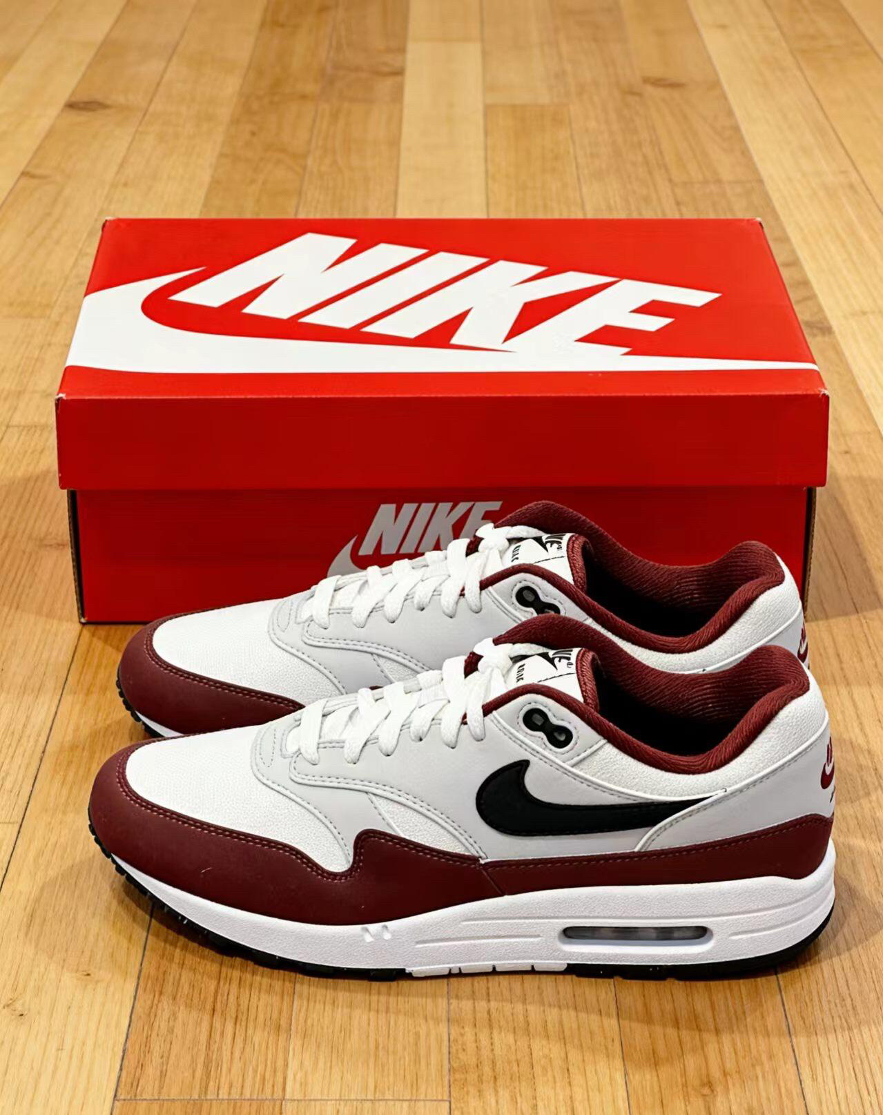 这双Air Max 1的酒红配色真的挺有味道,少年感一下子就拿捏了。白灰色的织物鞋身看着清爽,配上酒红色的麂皮框架,层次感丰富但不杂乱。侧面的黑色皮勾子点缀得刚刚好,显得整双鞋挺有质感。鞋型设计得秀气,不显笨重,脚感还是熟悉的Air Max气垫,踩着软乎又舒服。平时随便搭搭就挺好看,属于那种自带复古氛围的百搭款~👟