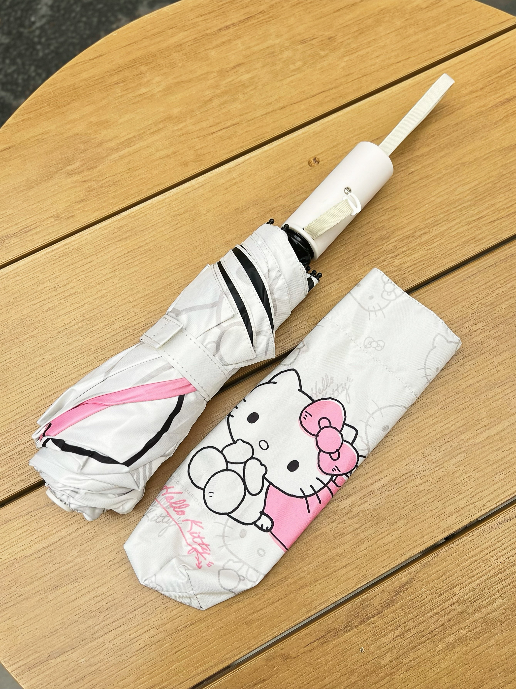 春天除了穿搭,连晴雨伞都要粉粉嫩嫩的🎀 三丽鸥 hello Kitty耶,谁能拒绝🥳 🌂还是自动开关,比较方便,也带了黑胶,晴天雨天都能用💯