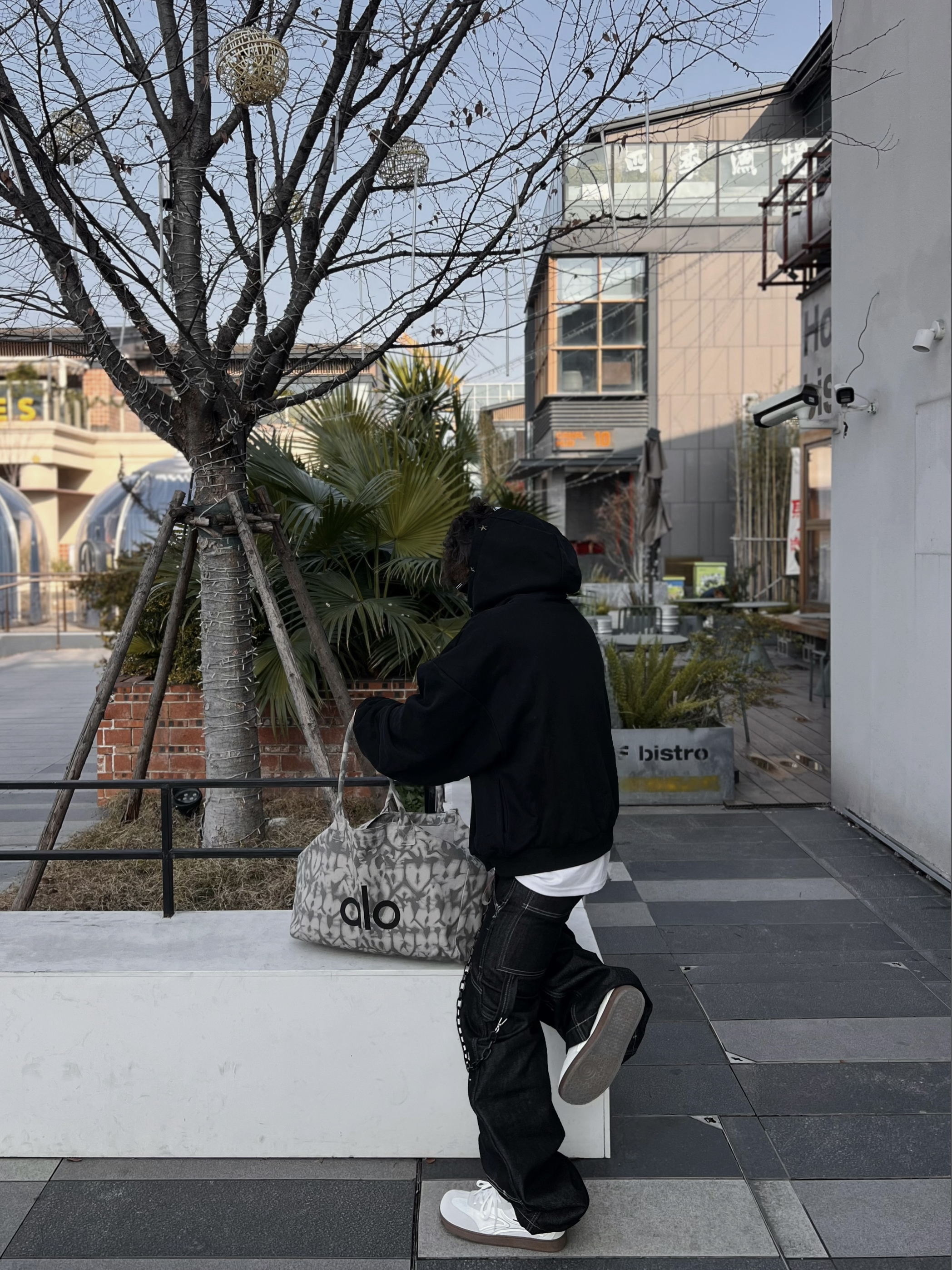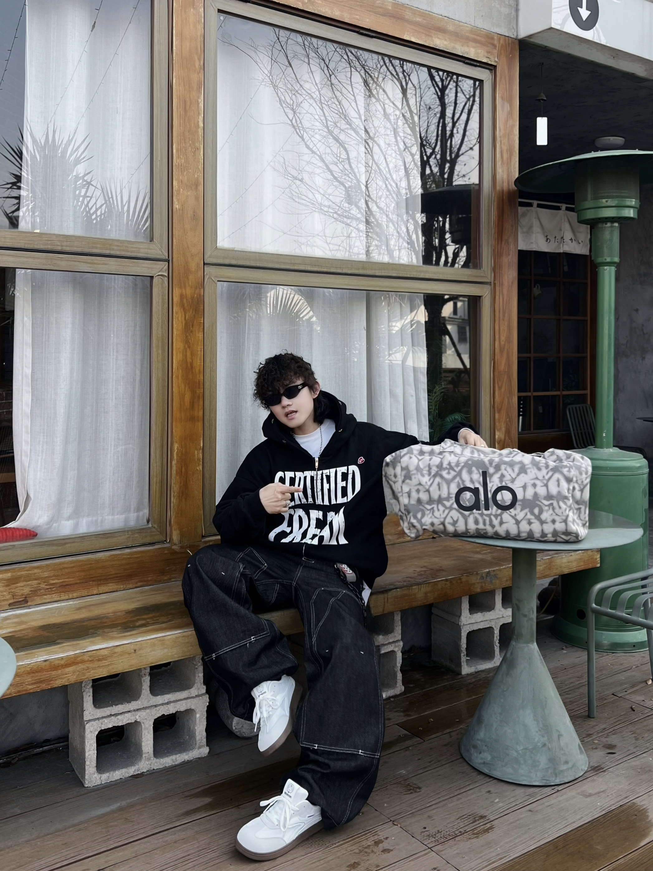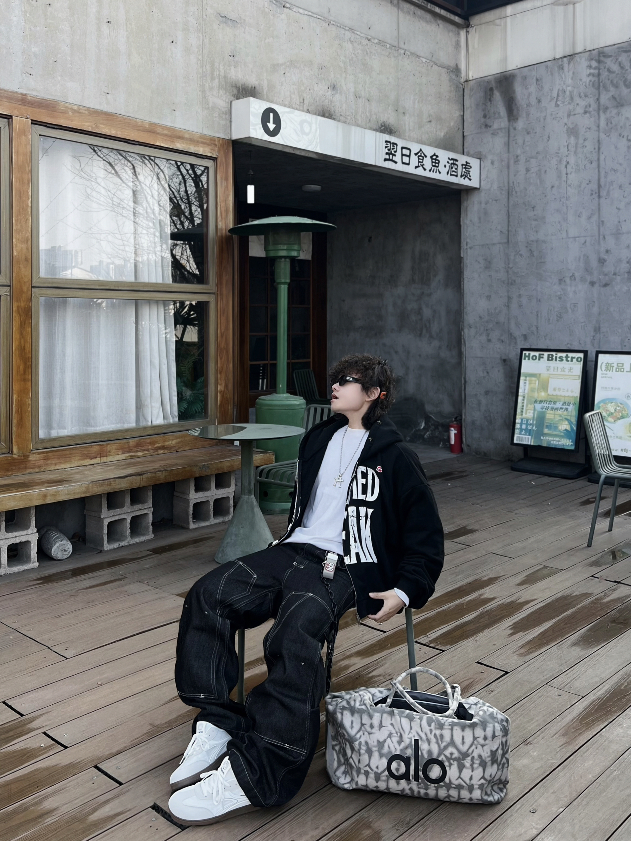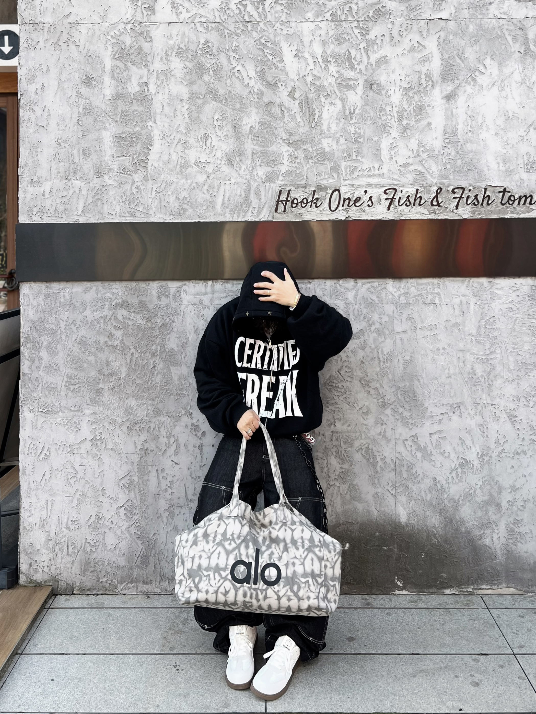 Hi、这里是有点懒的薯条🍟~ • 早春返校OOTD:黑连帽卫衣叠穿白T+拼接牛仔裤+白棕板鞋,美式街头感直接拉满 • 重点夸夸我的新包👉alo yoga扎染托特包!灰调扎染+大logo,低调又有辨识度 • 自己加了内胆包!课本、电脑、水杯、化妆品分区收纳,上课/健身/短途出行都巨能装 • 软乎乎的帆布材质,宽肩带背着不累,上课通勤久背也不压肩 • 搭配建议:黑白灰色系永不出错,和托特包...