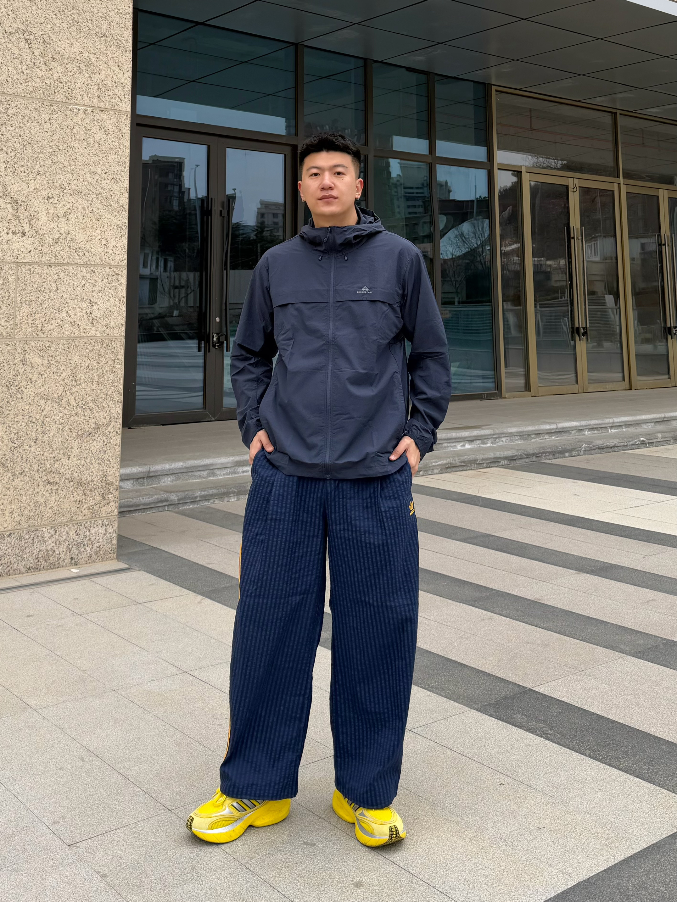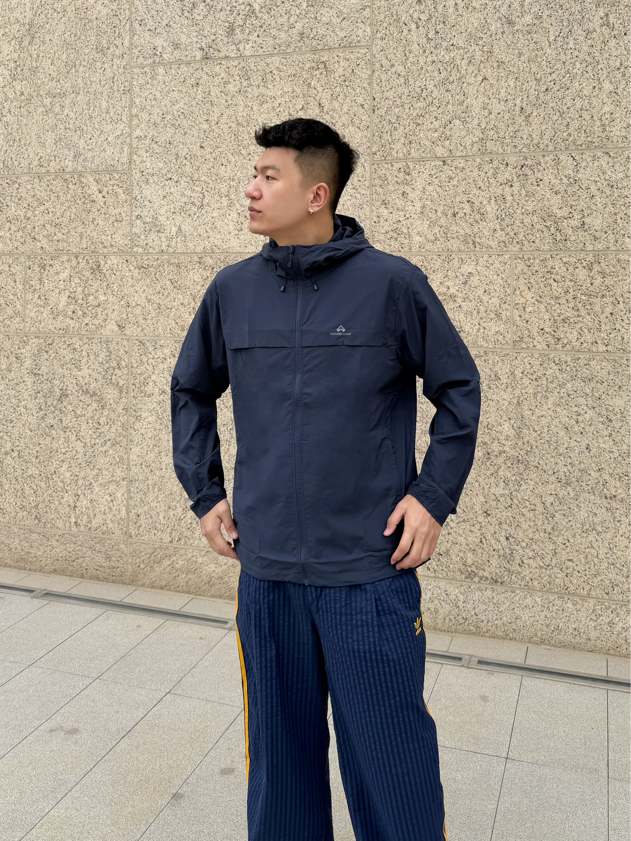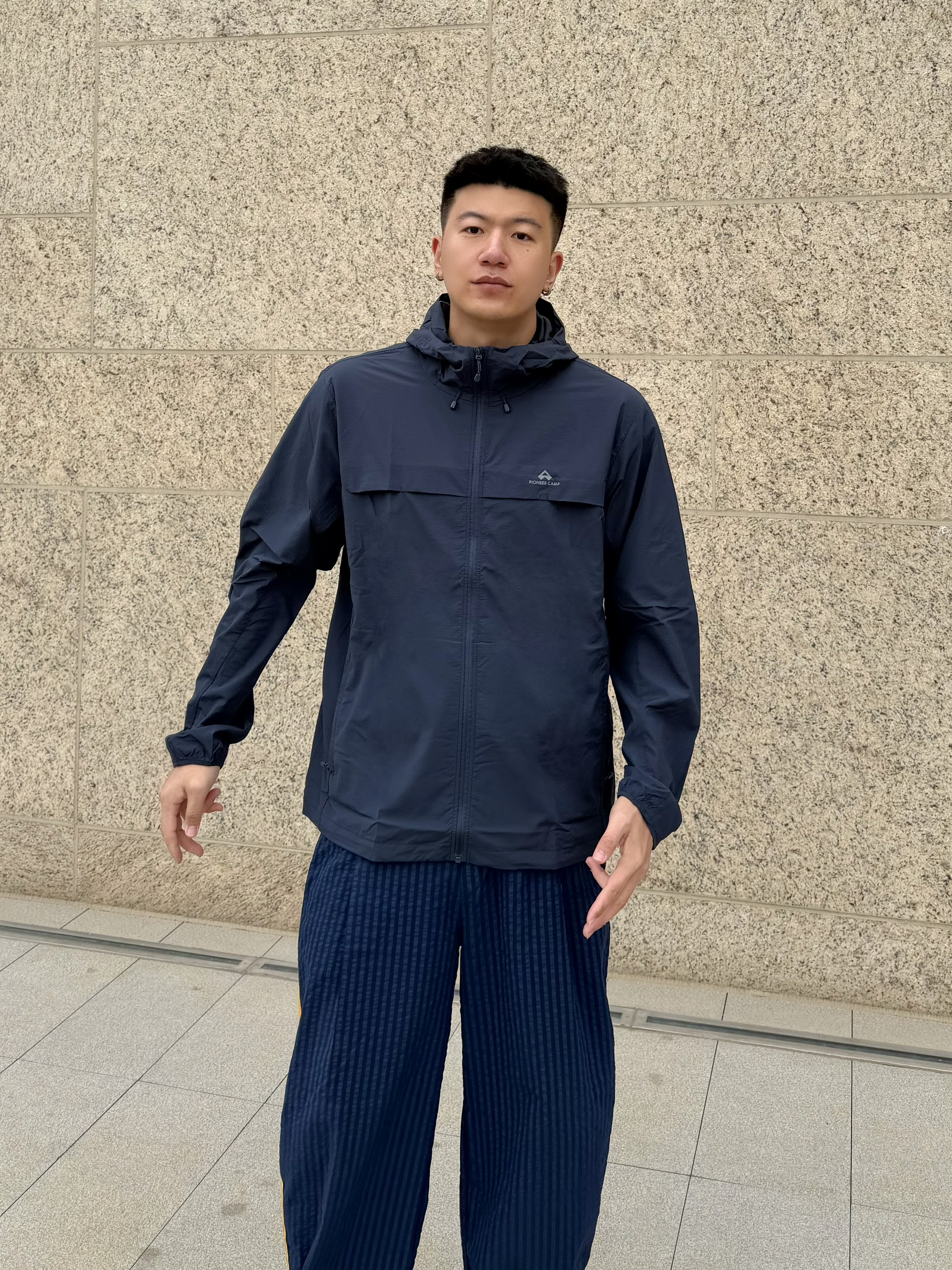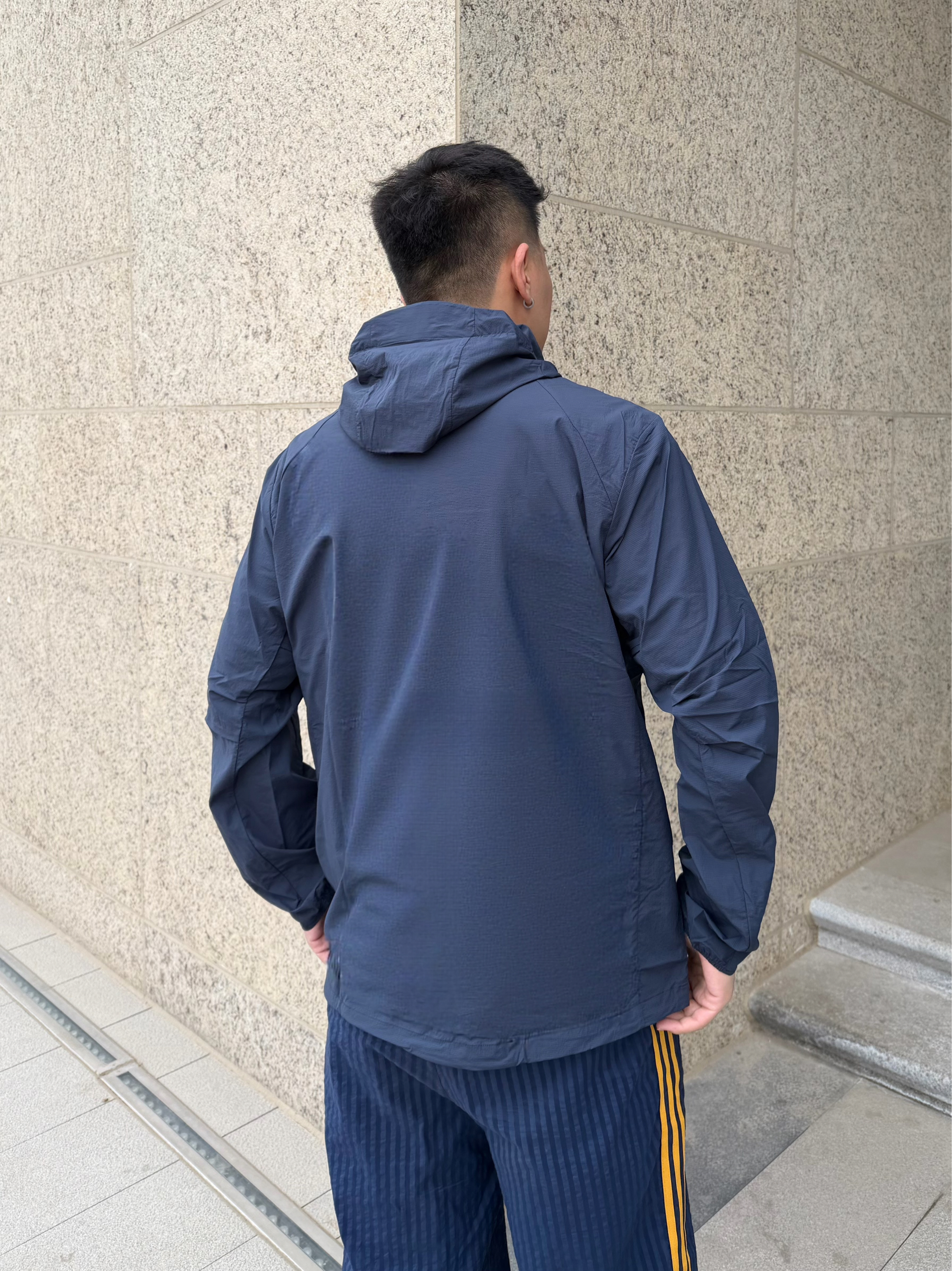 最近早晚温差大 城市穿梭怕晒又不想穿得太臃肿,穿上这件拓路者朱雀防晒服 墨蓝色很低调 但搭配藏蓝色运动裤+黄色鞋 整体就有了亮点 🔥 面料透气不闷汗,UPF50+城市通勤完全👌🏻 自收纳口袋也挺方便 折起来就巴掌大小 户外穿挺不错的🧥 日常通勤/钓鱼/跑步都能穿,实用又舒服 👦🏻:188 | 85 🧥:XXXL