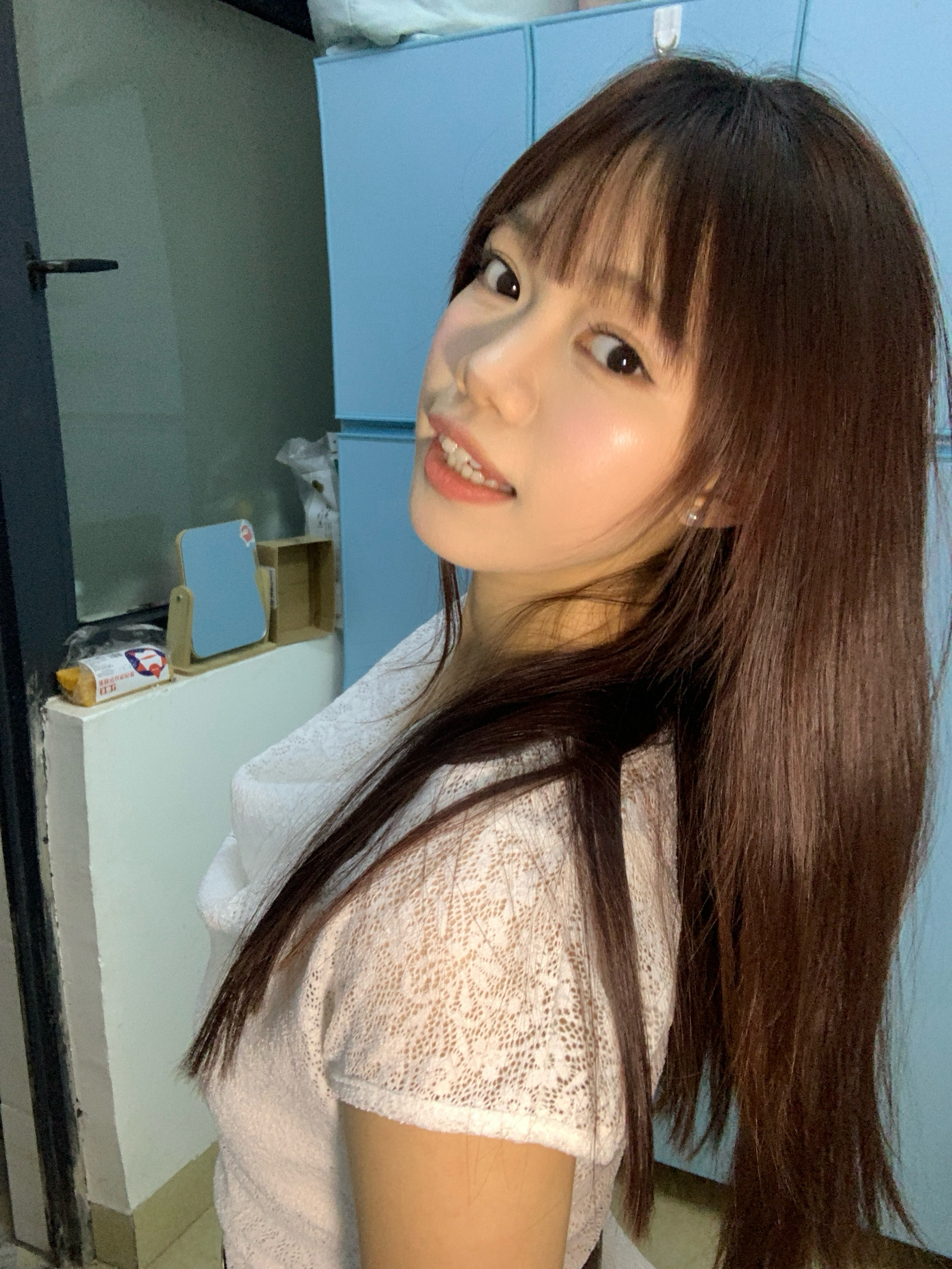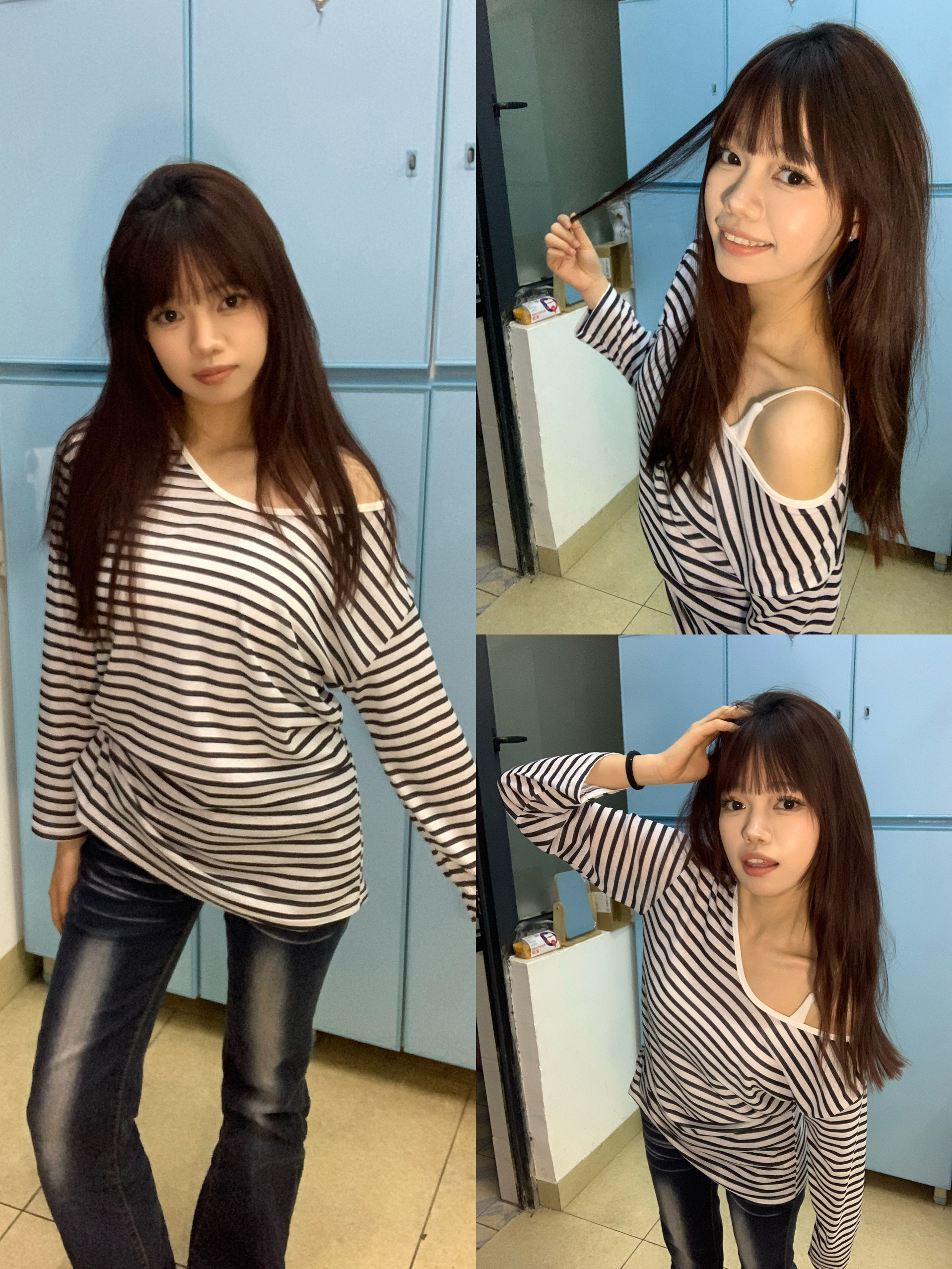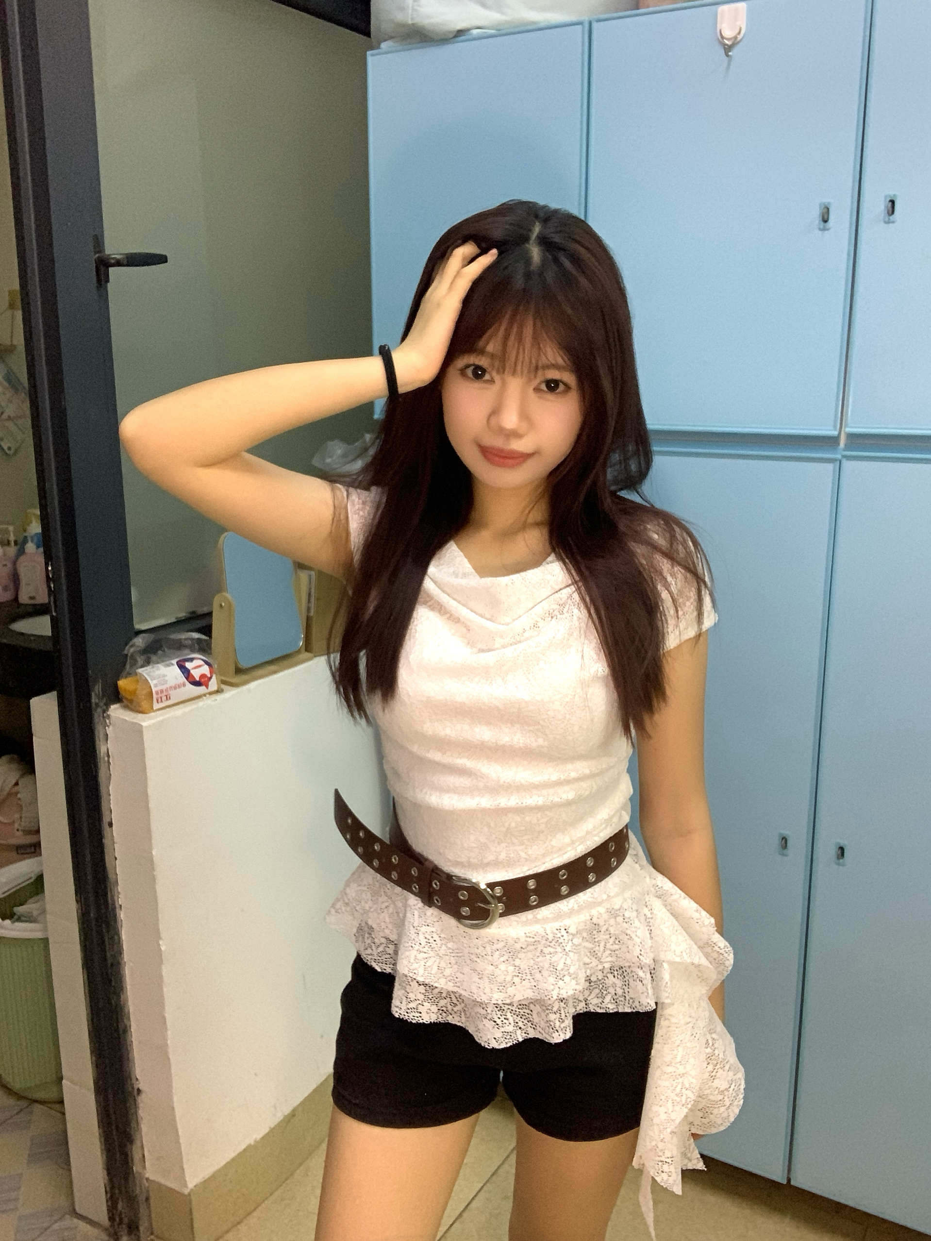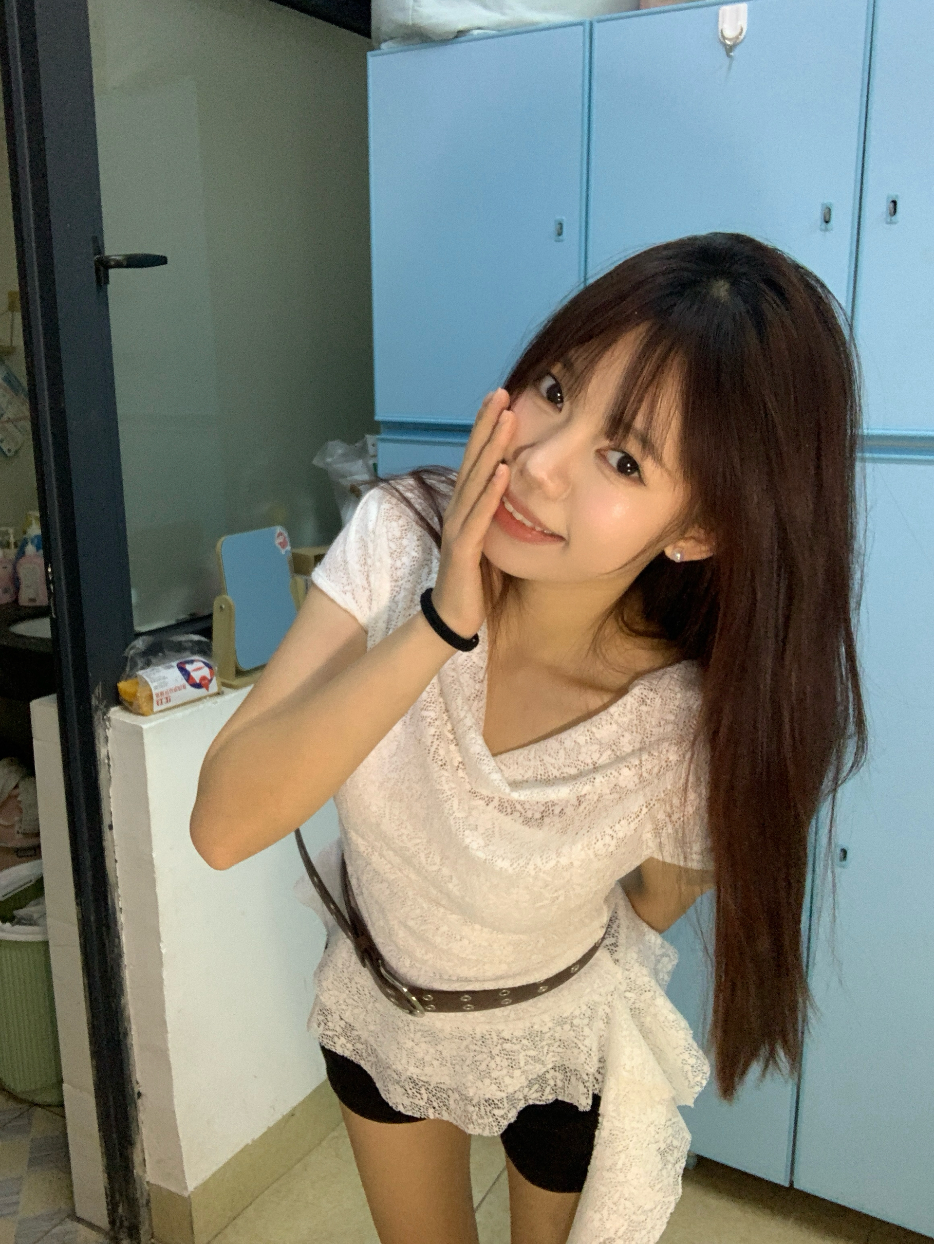 身高|体重:160 90 🧍♂️ 穿搭风格:许妍风 👔 上衣:不规则下摆蕾丝上衣 👖 下装:牛仔裤 🎒配饰:珍珠耳钉