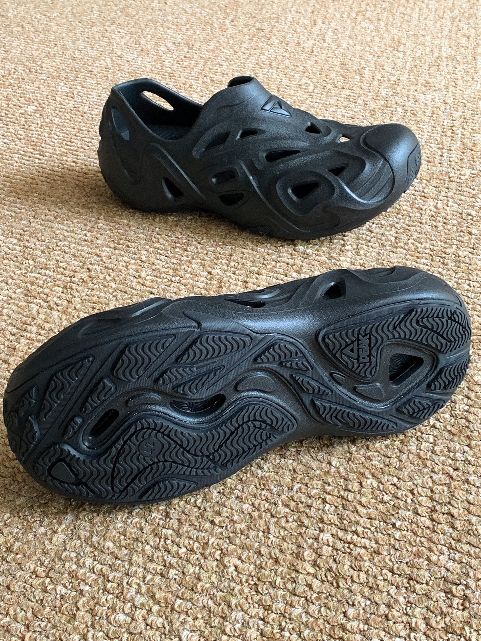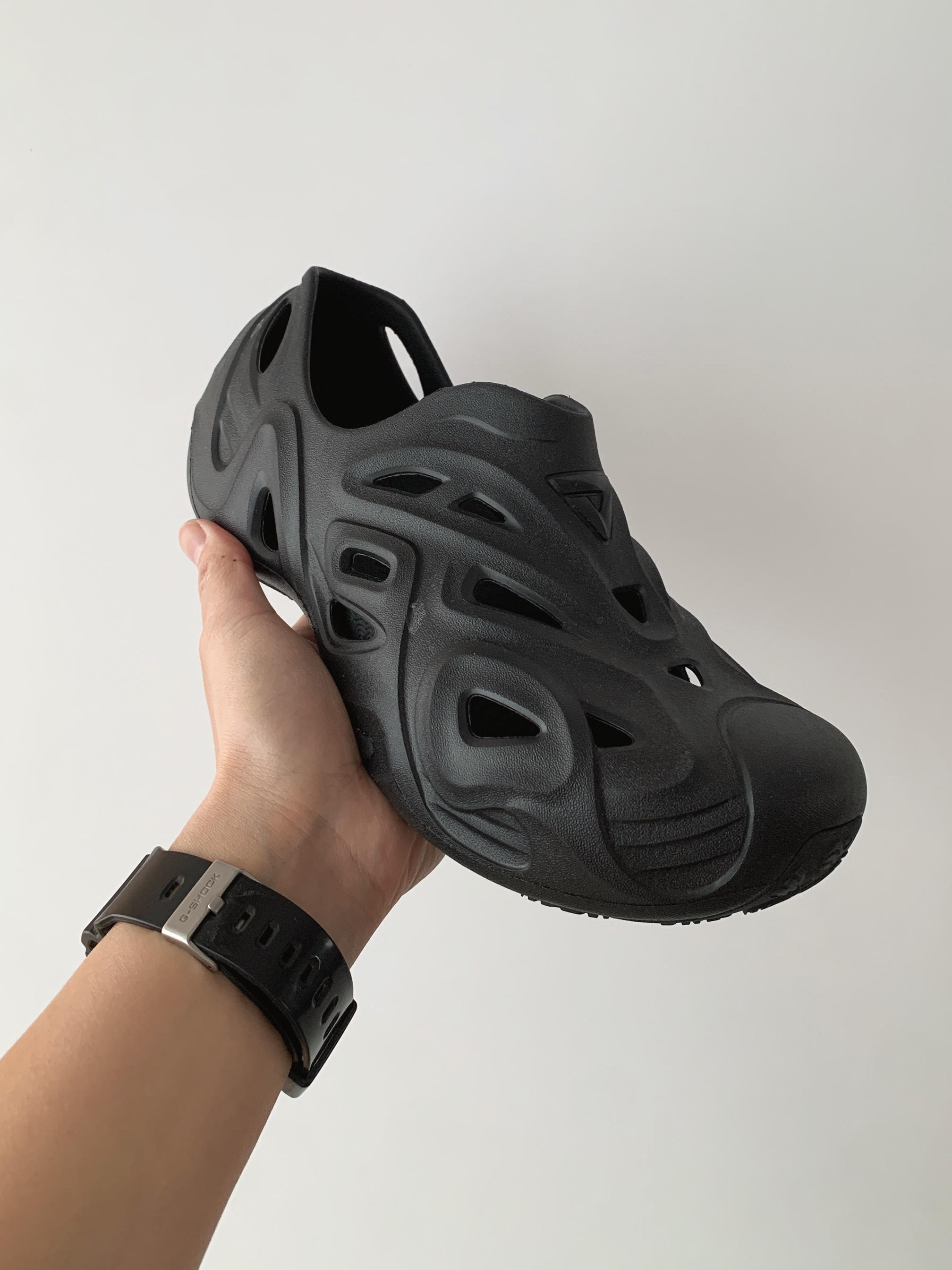 冬天的百搭博肯也该退休了! 春夏的万金油洞洞鞋马上继任! ▪️颜值: 简约基础的黑武士配色 ▪️细节: 比较另类的异形造型 穿着感觉比较个性一点 ▪️尺码: 正常码数 ▪️脚感: 穿着还是挺Q弹的 鞋垫是可以分离的 ▪️搭配: 日常搭配的时候建议穿长袜 户外溯溪随便搭个短裤也好看