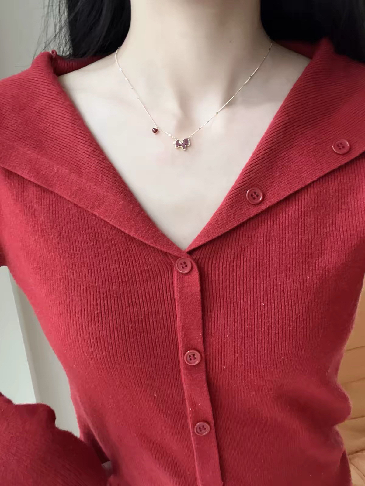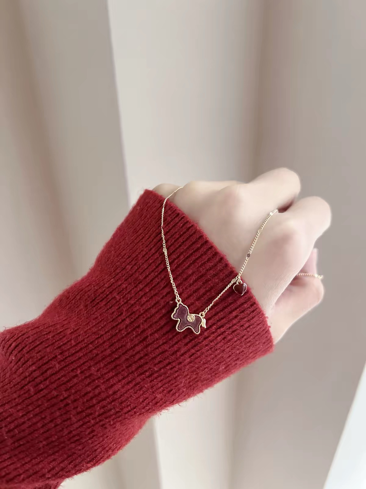 谁能拒绝这条软萌小狗项链啊!酒红珐琅质感超细腻,金色链条衬得皮肤透亮,小爱心吊坠细节拉满💖 搭毛衣、小裙子都好看,日常通勤不浮夸,约会拍照巨上镜!不掉色不过敏,平价也能戴出高级感,本命年戴它招好运,送礼自留都超合适!🎁