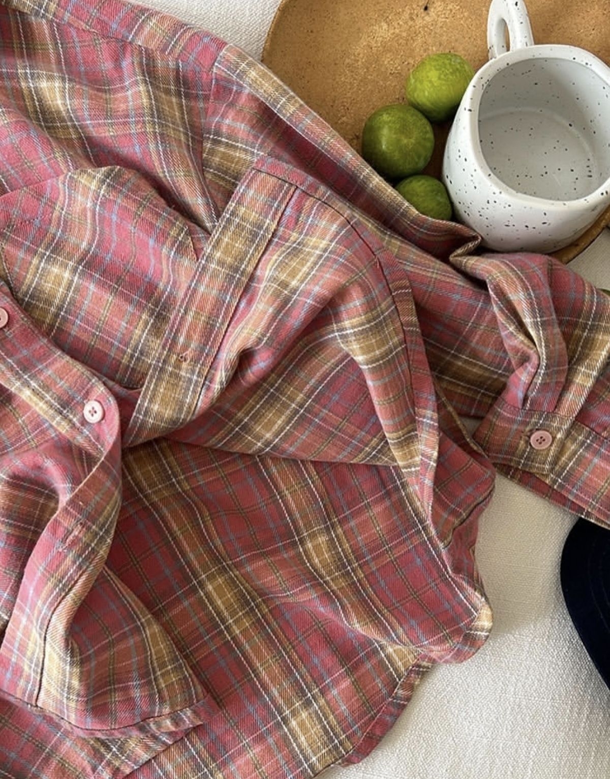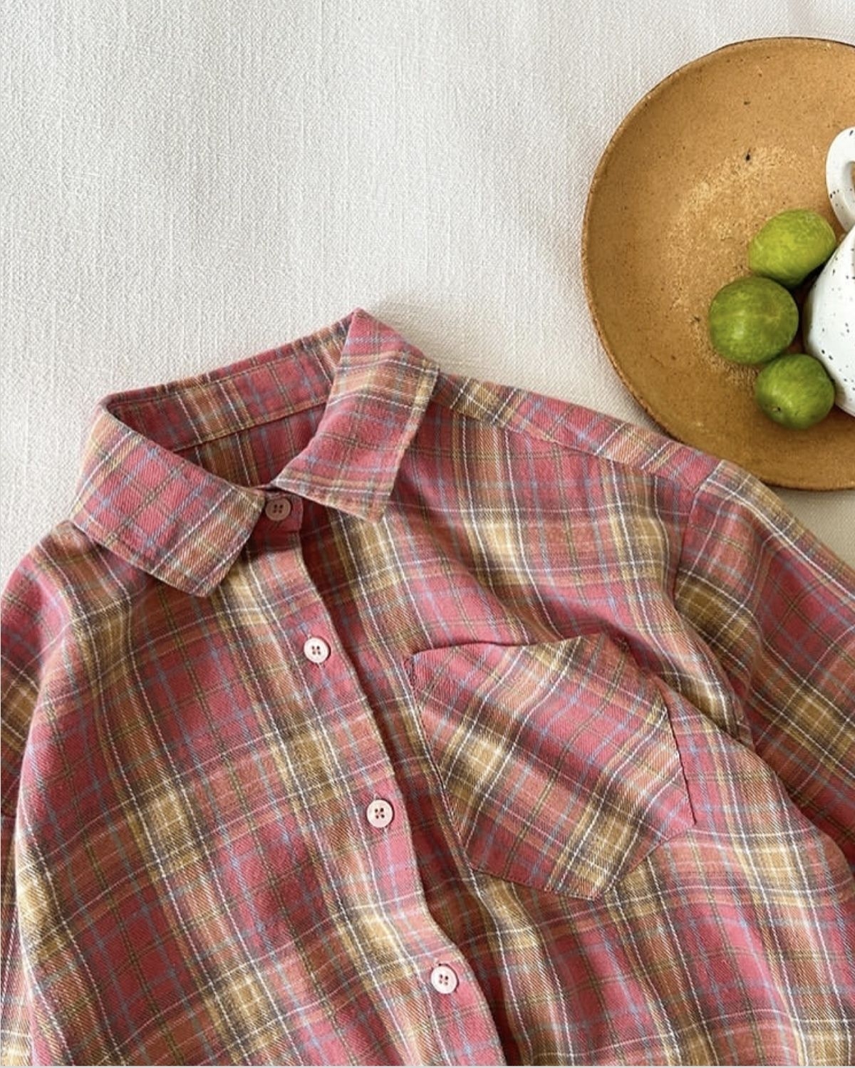 这款衬衫以复古莓果粉格纹为视觉核心,融合日系慵懒松弛感与法式复古氛围,采用磨毛棉感面料打造,版型宽松不挑人,是兼具颜值与实穿性的春日氛围感单品。 细节卖点拆解 1. 色系与格纹:主打低饱和莓果粉为基底,交织浅卡其、奶白与雾蓝细格线条,打破传统红格的沉闷,甜而不腻,自带温柔滤镜,适配春日柔和调性。 2. 面料质感:甄选高支磨毛棉面料,表面呈现细腻绒感,触肤软糯不扎身,兼具透气度与轻微挺括...