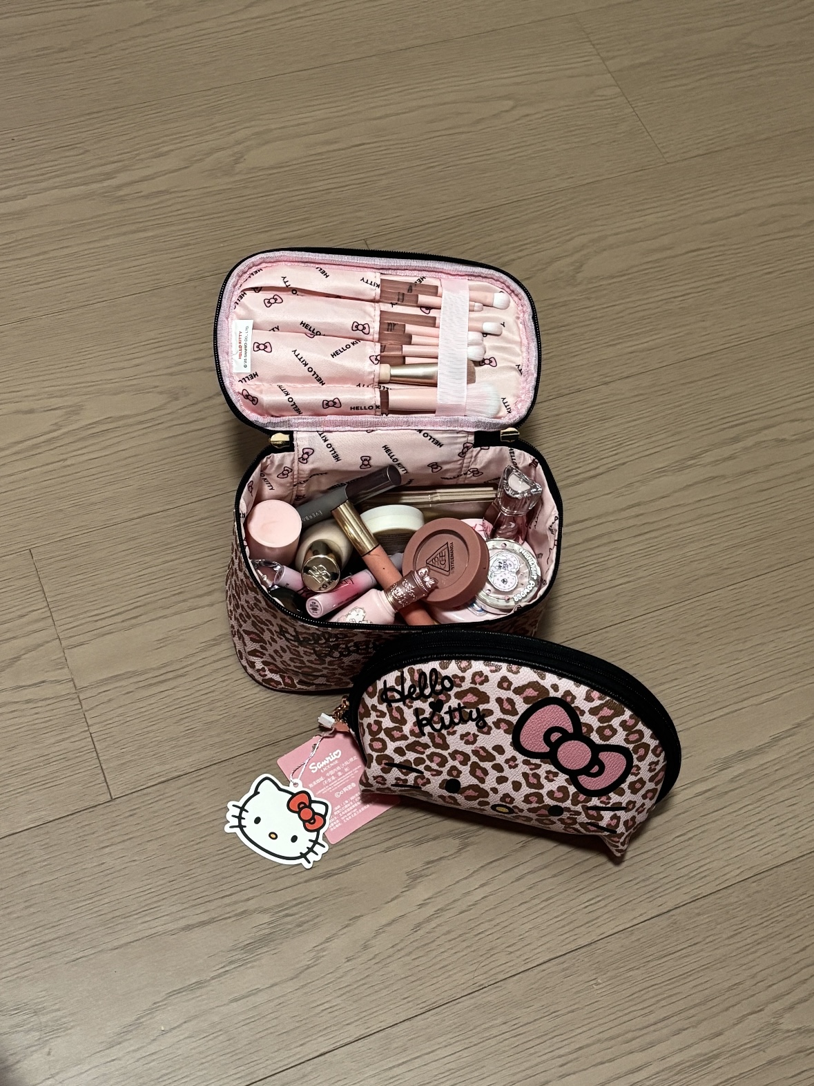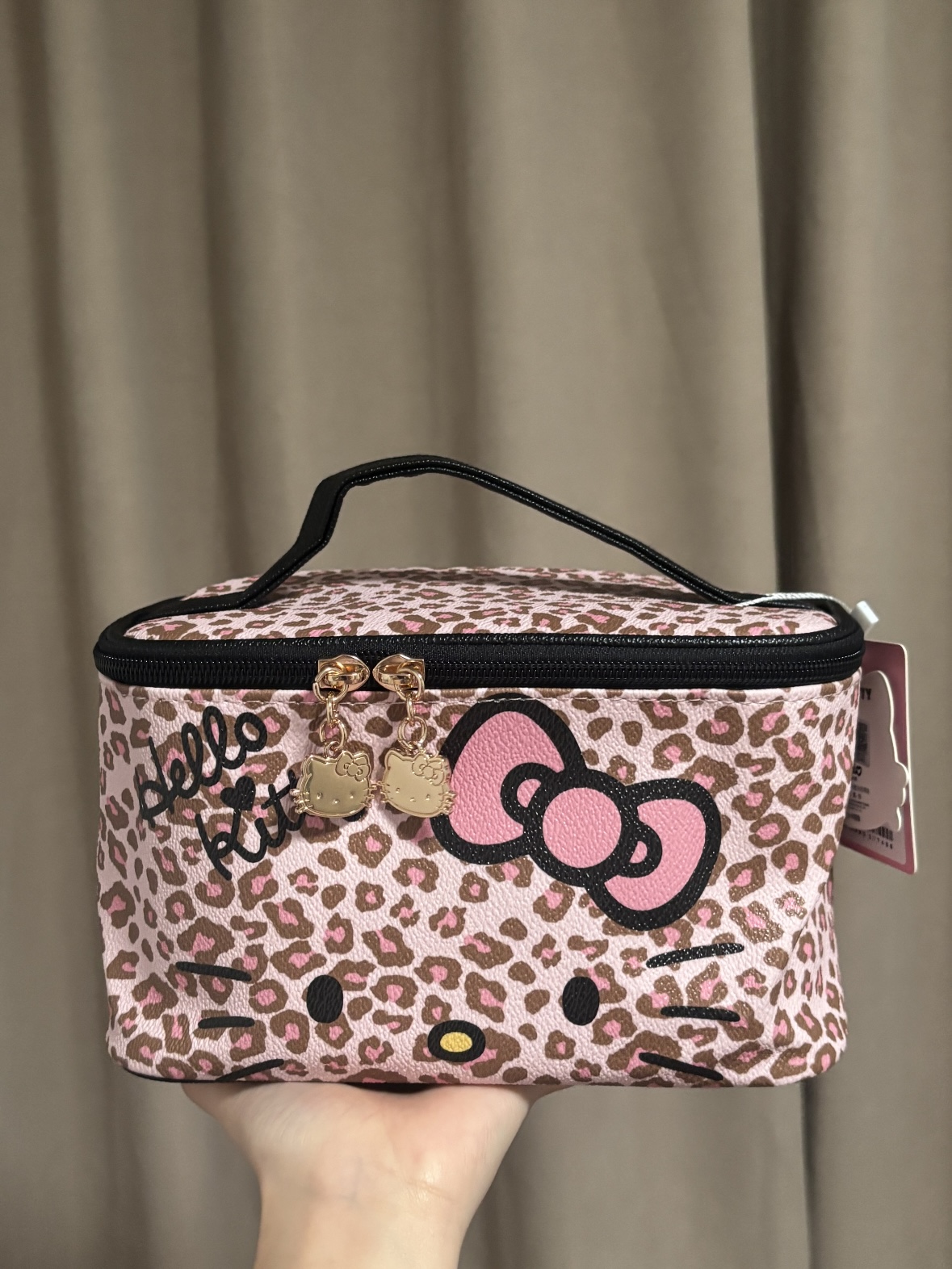 粉色Hello Kitty,可爱到犯规! 最近旅行必备好物安利!这款粉色豹纹HelloKitty洗漱包真的太戳我了~ 大容量设计,化妆刷、护肤品、洗漱用品都能装下,完全不乱。 手提设计方便拿取,出门背它超有氛围感~ 不管是短途出差还是周末出游,都超适合!