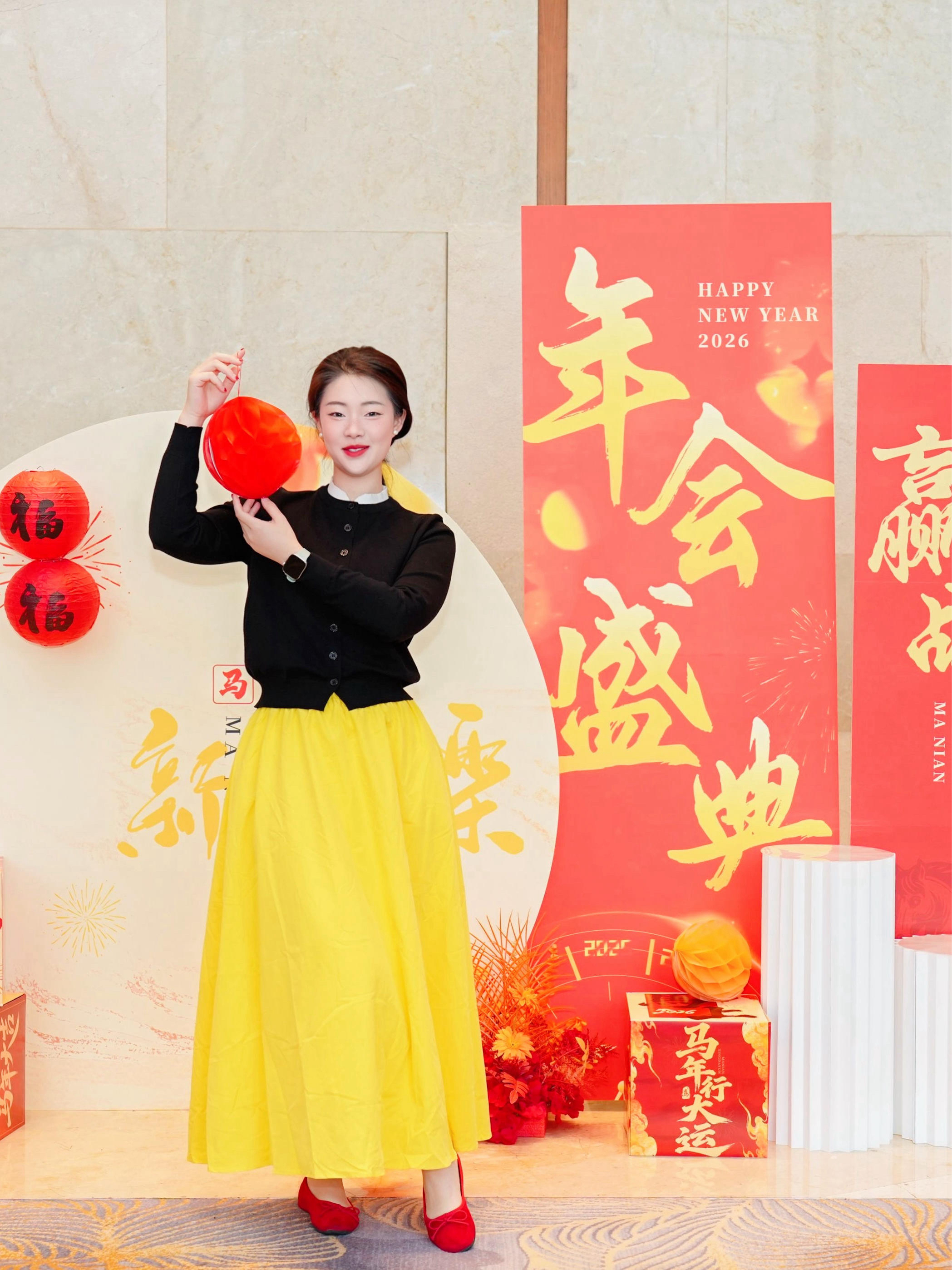 怕冷又想在年会美出圈?这套黄黑撞色穿搭直接封神! 黑针织衫+亮黄长裙,复古又显白,红鞋子和灯笼道具呼应年味,随手拍都是年会C位既视感! 不用买贵价礼服,基础款也能搭出高级感,拍照氛围感直接拉满📸 你觉得这套年会look够吸睛吗?关注我,解锁更多低成本年会穿搭技巧!