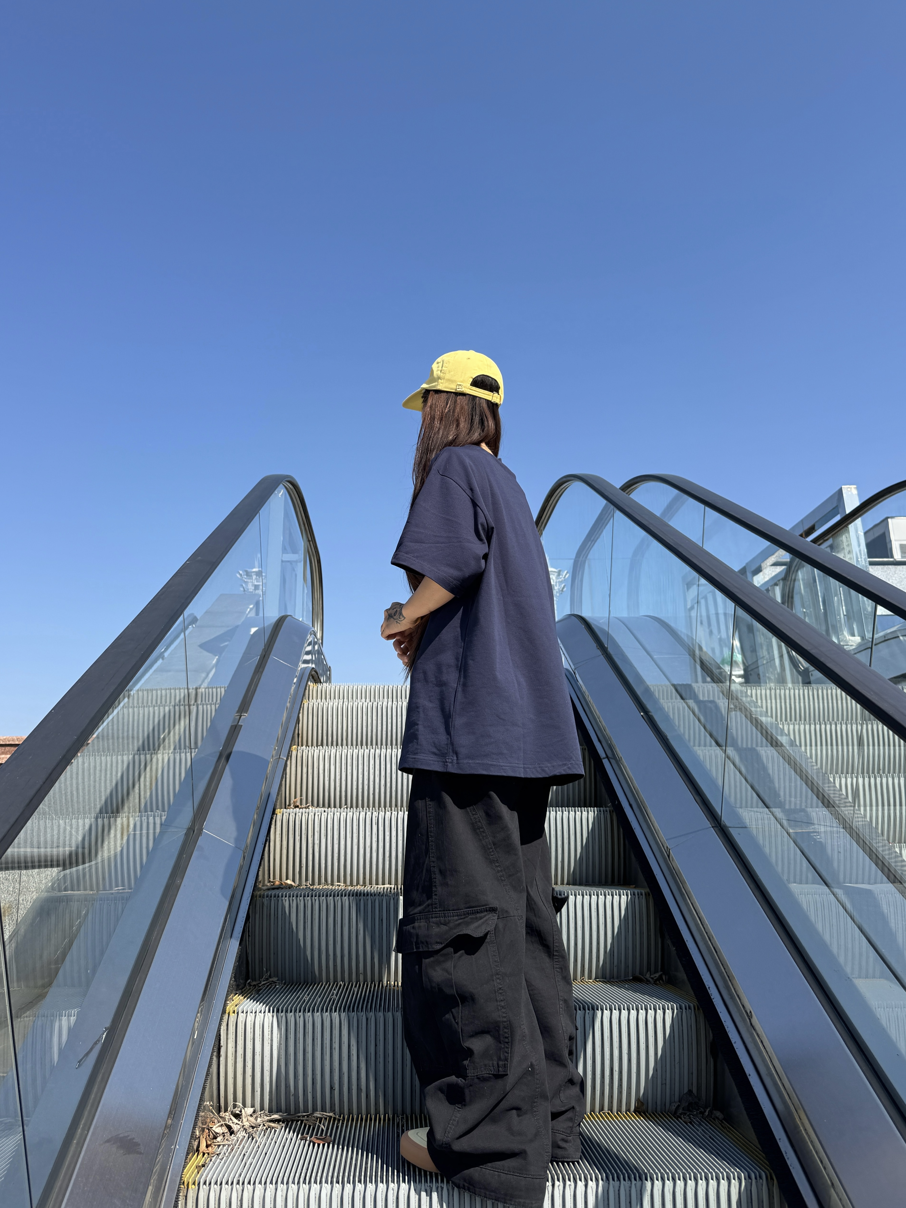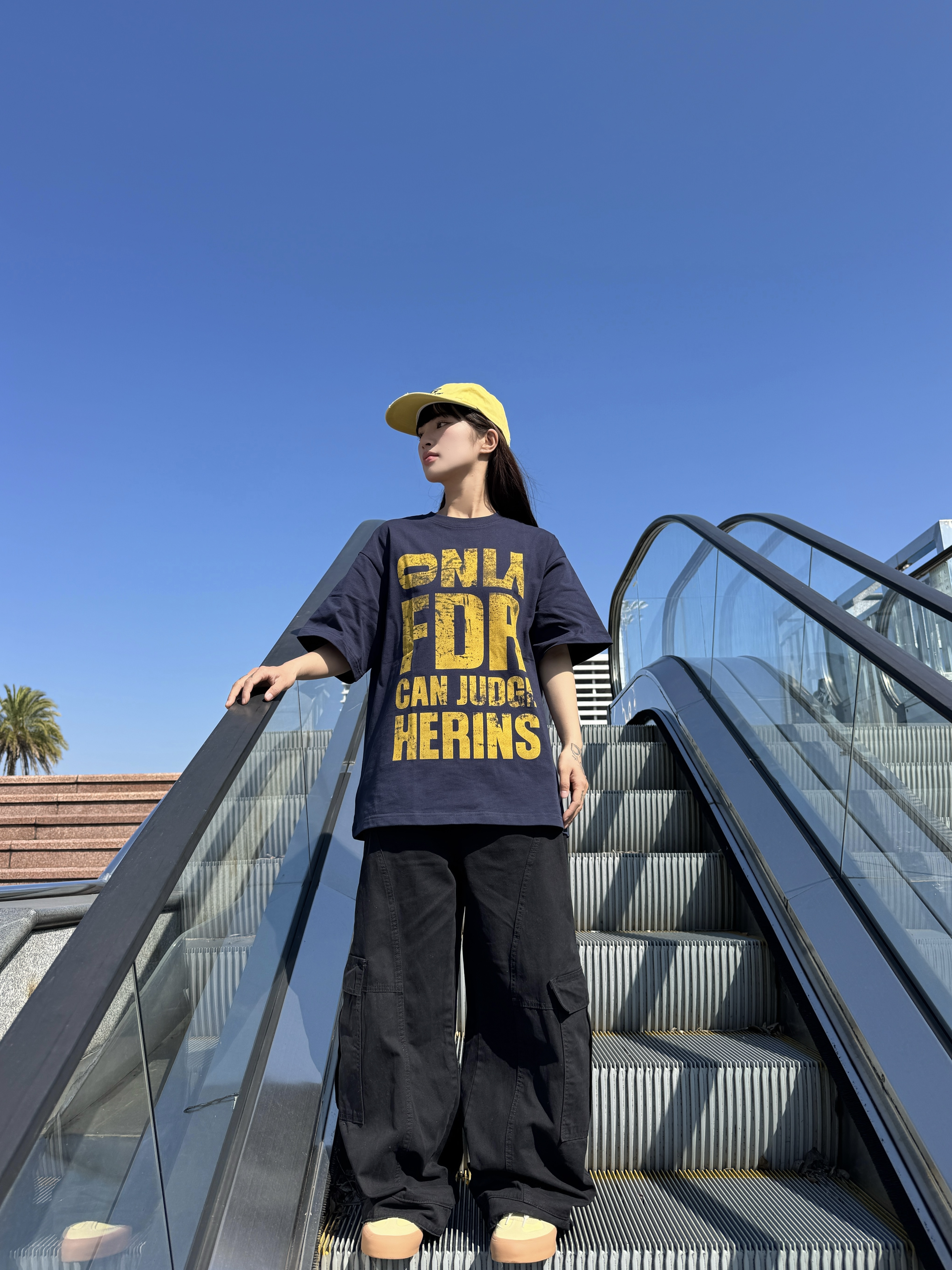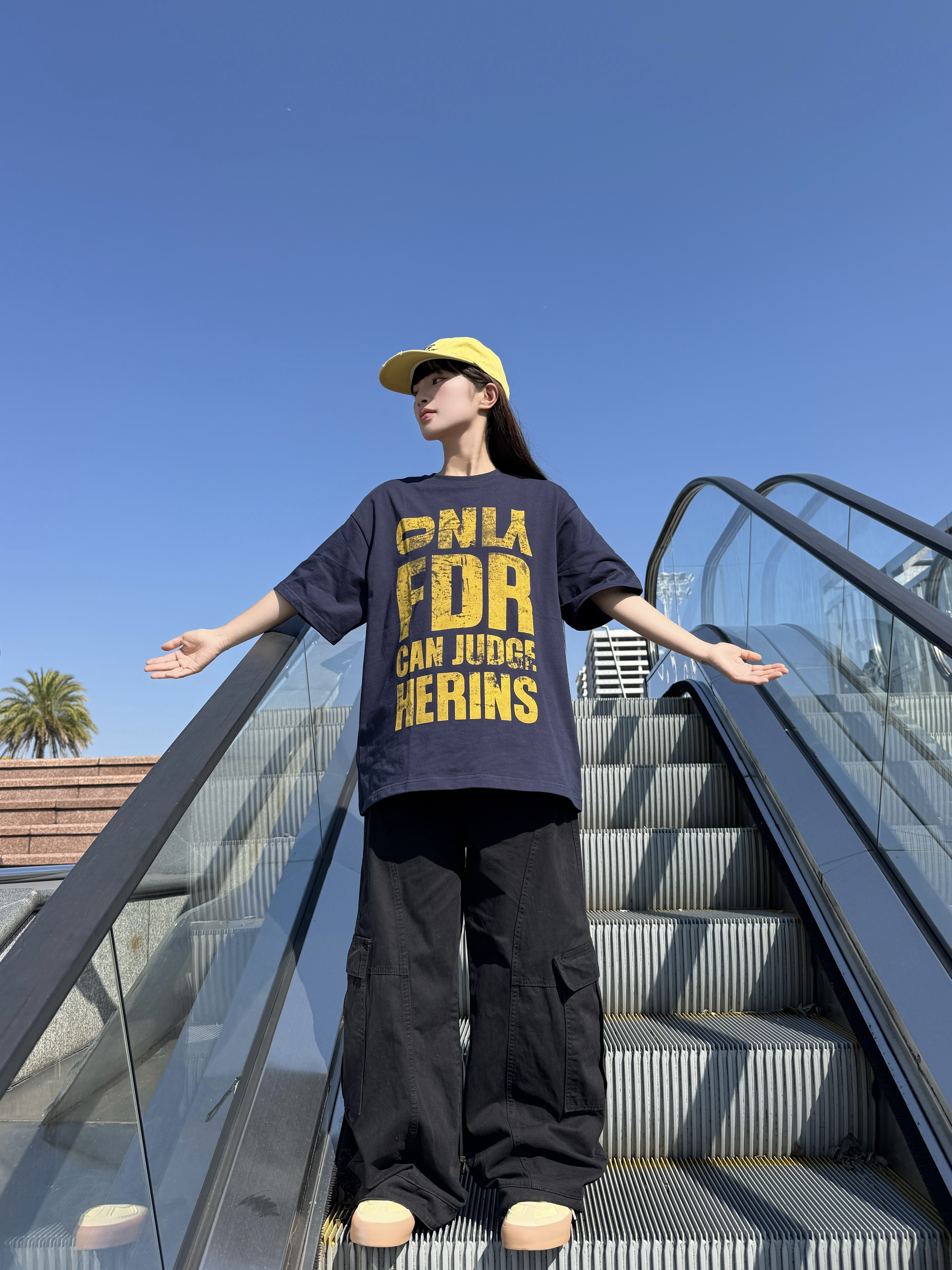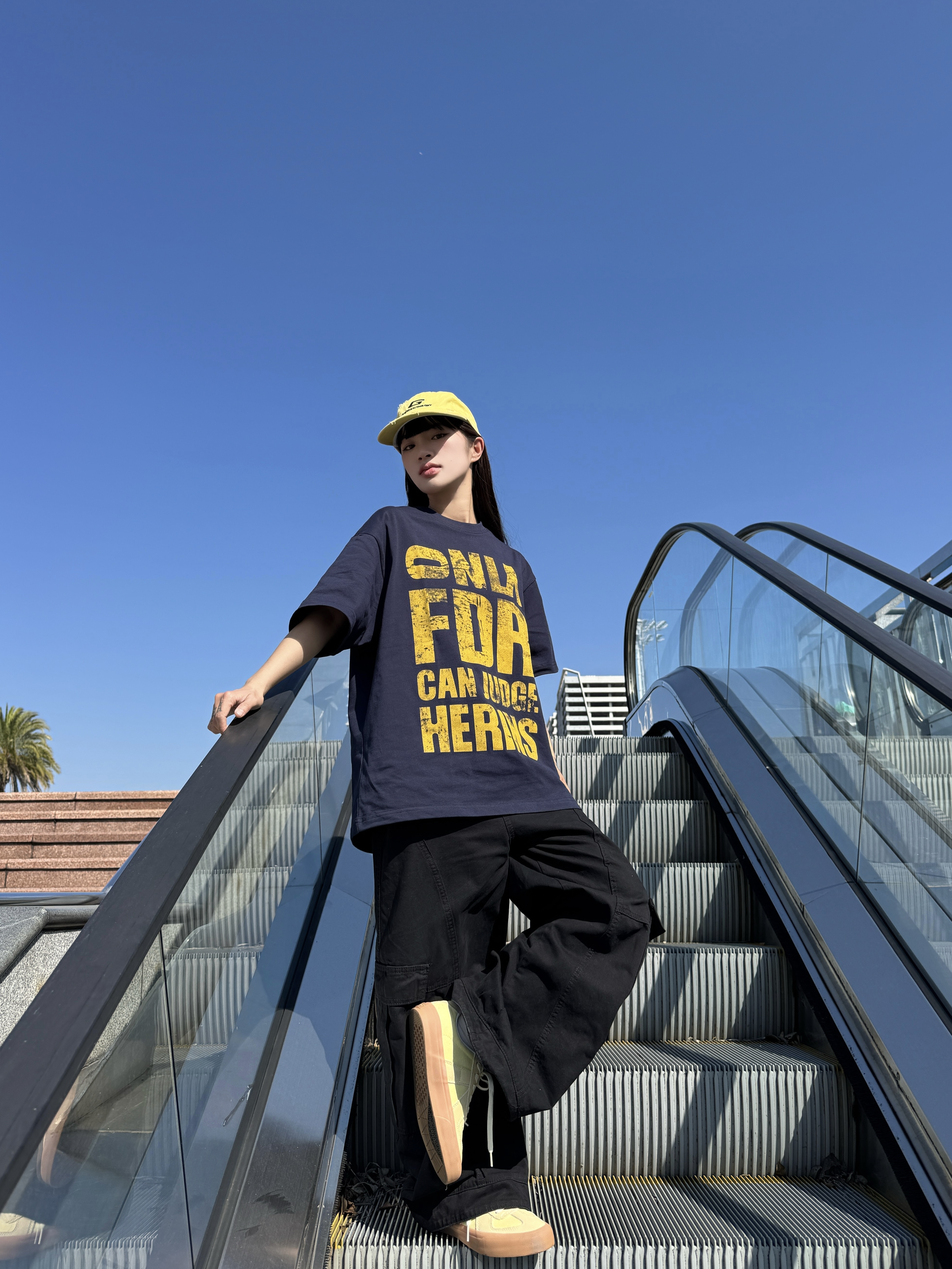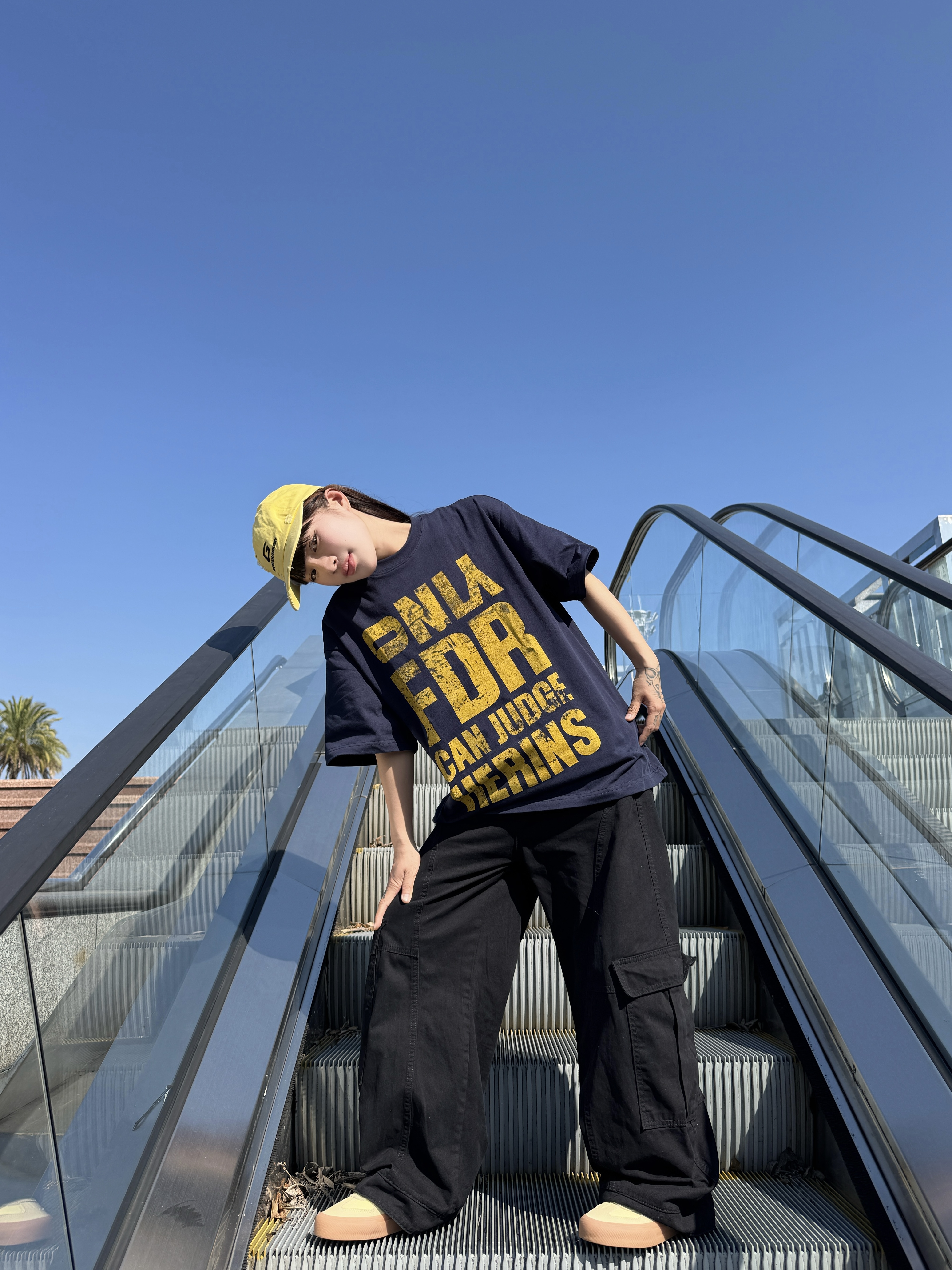 ☀️最近二十多度的温度已经可以穿短袖了 👔今天的藏青T恤搭配黑色工装裤,整体色调偏暗 💛头上的亮黄色帽子,让整套穿搭更有层次 👟脚下的浅黄鞋子,与帽子色彩呼应 穿搭追求简单干净,日常穿着很合适 这样的温度里穿得舒服又清爽💚
