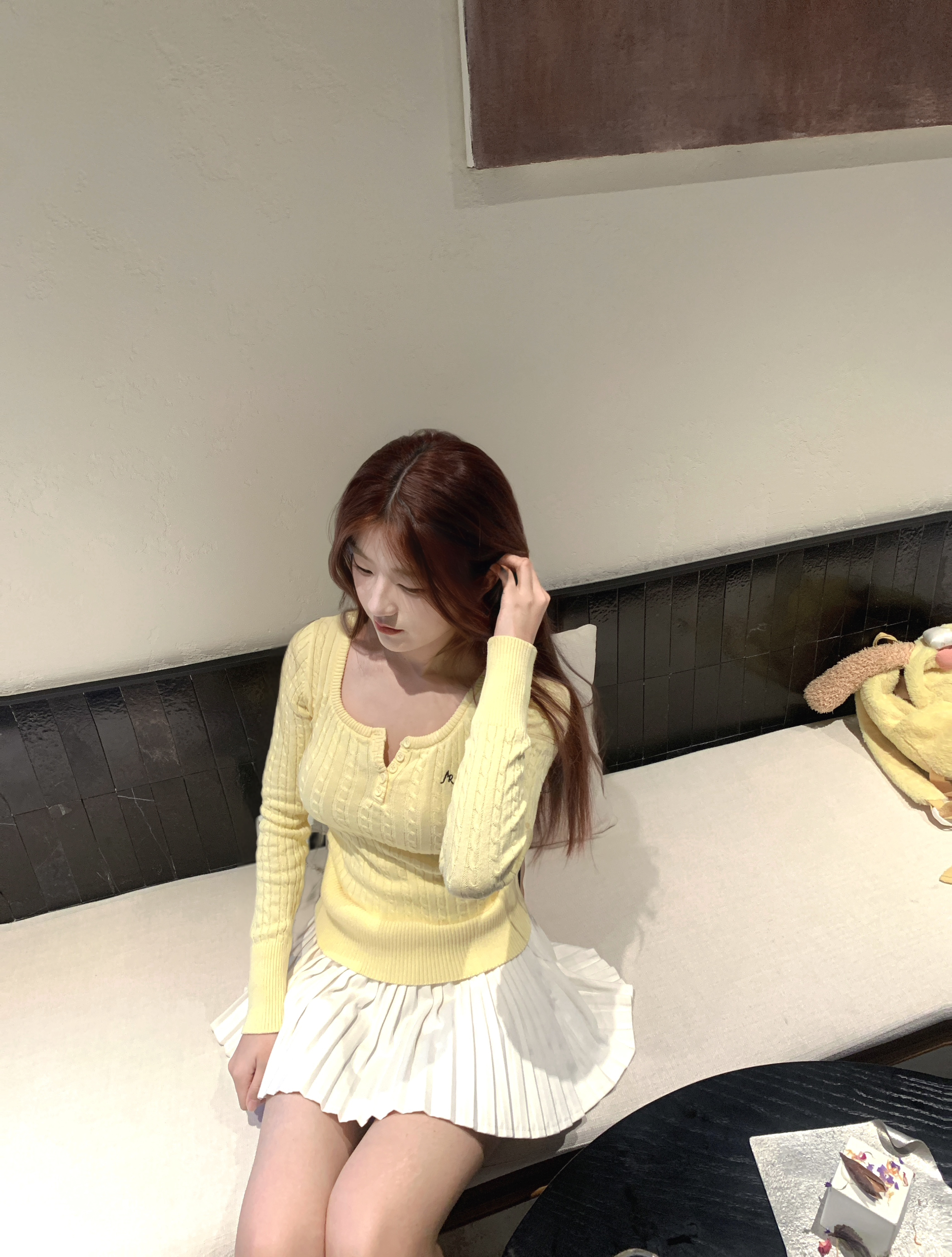 • 麻花纹理+小V领设计,温柔又显瘦,把肩颈线条修饰得特别好看,小个子穿也很显比例。 • 面料软糯亲肤,弹力也够,穿久了也不容易变形,春天单穿不冷,搭外套也不臃肿,实用性拉满。 • 奶黄色真的太显白了!黄皮姐妹也能放心冲,配白色百褶裙就是清纯学妹风,配牛仔裤就是休闲元气感,一衣多穿超划算。 • 不管是上课、上班还是约会,穿上都很得体,温柔又不刻意,是那种越穿越喜欢的基础款,闭眼入不踩雷