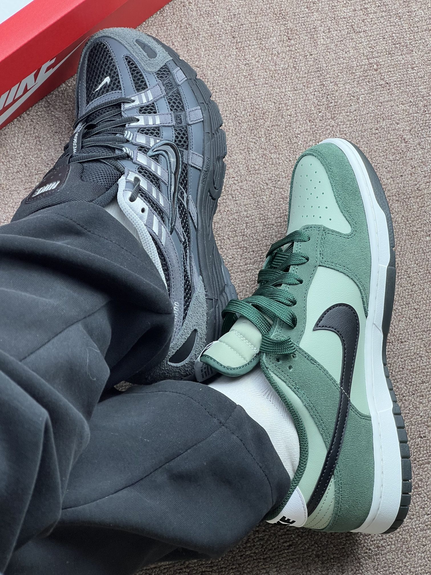 最近入了两双Nike,一双Dunk,一双P-6000,聊聊真实体验。 Dunk的绿调拼色很耐看,麂皮+皮革的质感日常好搭,配阔腿裤、牛仔裤都不违和。但鞋型偏窄,前掌宽的朋友得大半码,刚上脚时鞋舌有点磨脚踝,需要穿长袜磨合,而且鞋底偏硬,长时间走路脚会酸。 P-6000的网面+翻毛皮组合透气性不错,春夏穿不闷脚,中底缓震比Dunk舒服点,走路久了没那么累。不过鞋身线条复杂,搭配难度比Dunk...