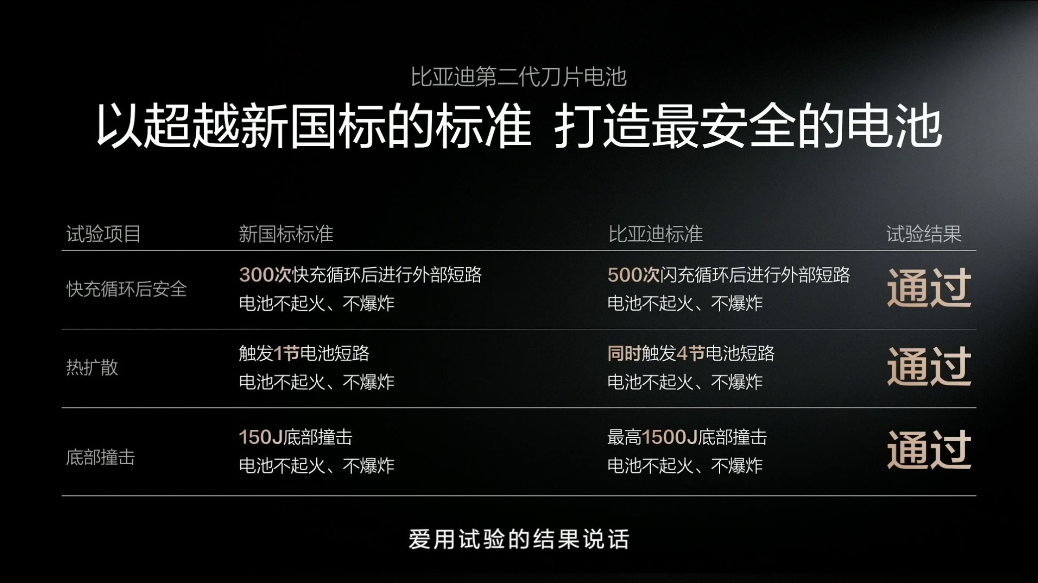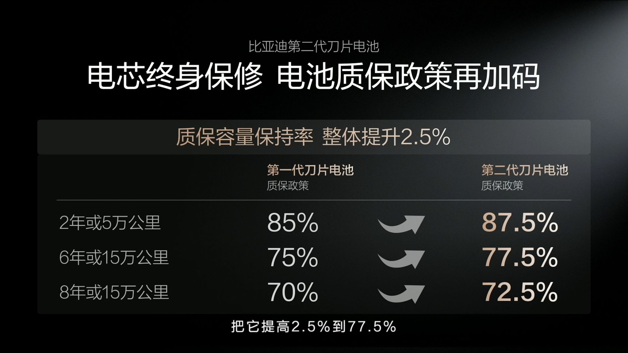 上周比亚迪带来了第二代刀片电池和闪充,还有一句朗朗上口的Slogan:“5分钟充好,9分钟充饱,零下30度,只多3分钟”。速度确实快,我猜很多朋友都会担心,电池天天闪充会不会折寿啊? 这个担心很有道理,但比亚迪还真解决了。通过锂离子快速通道和全温域智能热管理,让闪充时的发热更少,散热更快速均匀。即便充电快得飞起,对寿命也没有影响。 更有底气的是质保政策加码,电池容量低于77.5%就免费换,电芯...