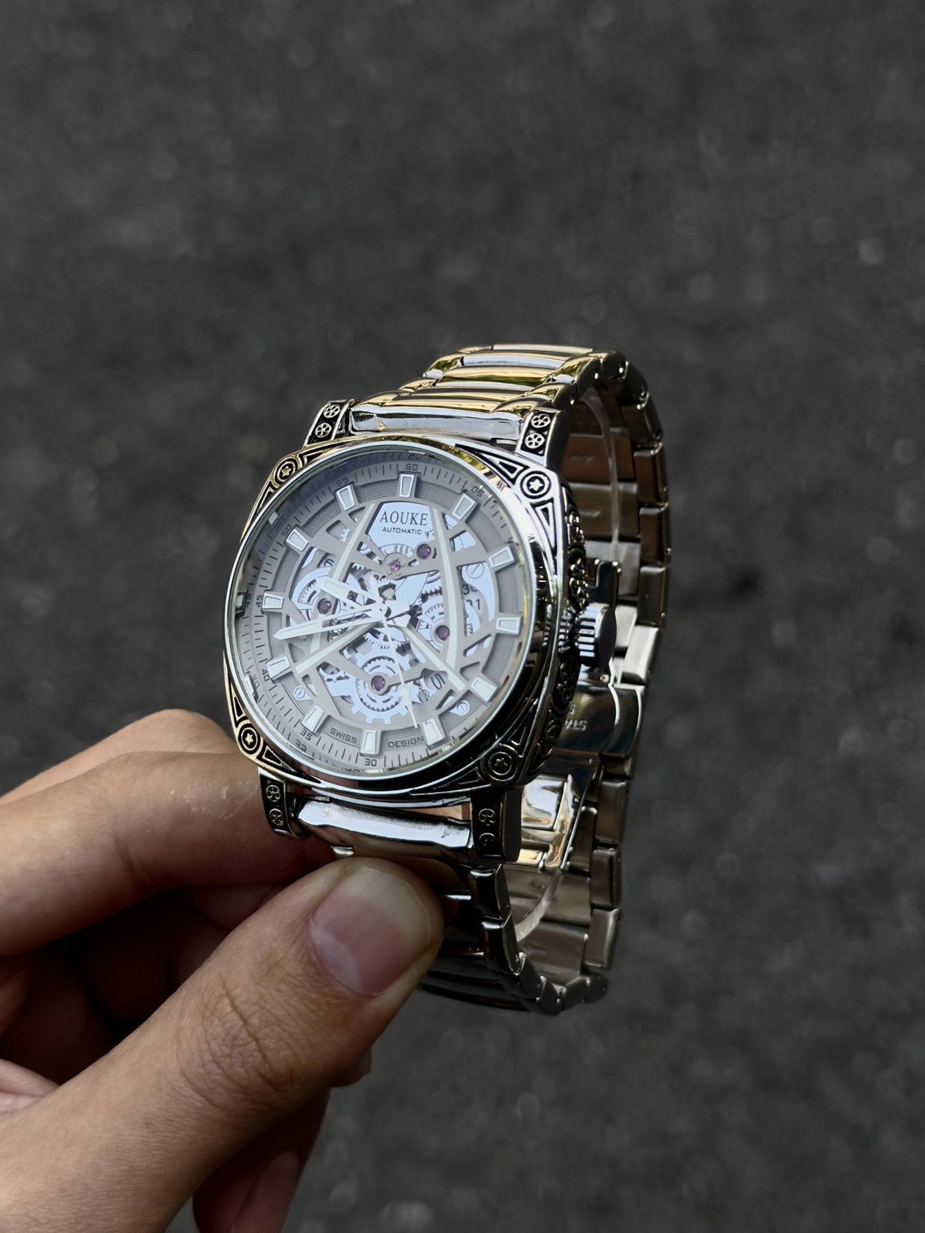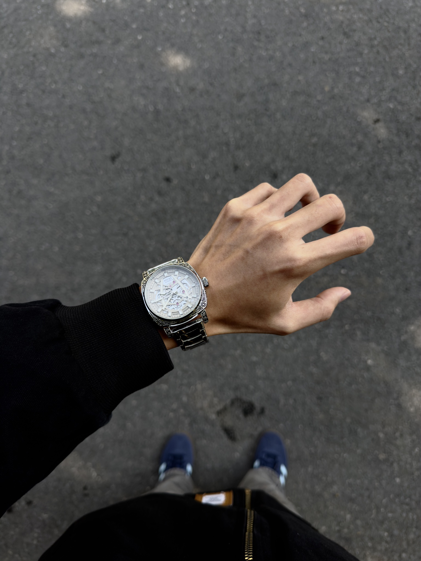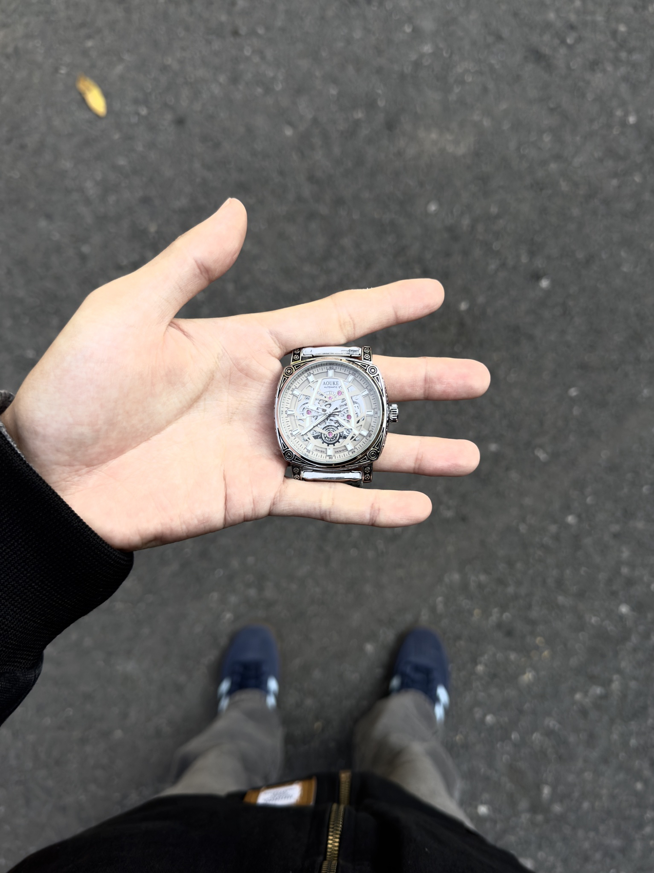 今天上手的是奥刻 表盘设计很有机械感 在阳光下还有带点光泽感 精钢手表摸着挺有质感的 戴久了也不会闷 日常防水也够用 平时戴着它出门还能提高穿搭质感