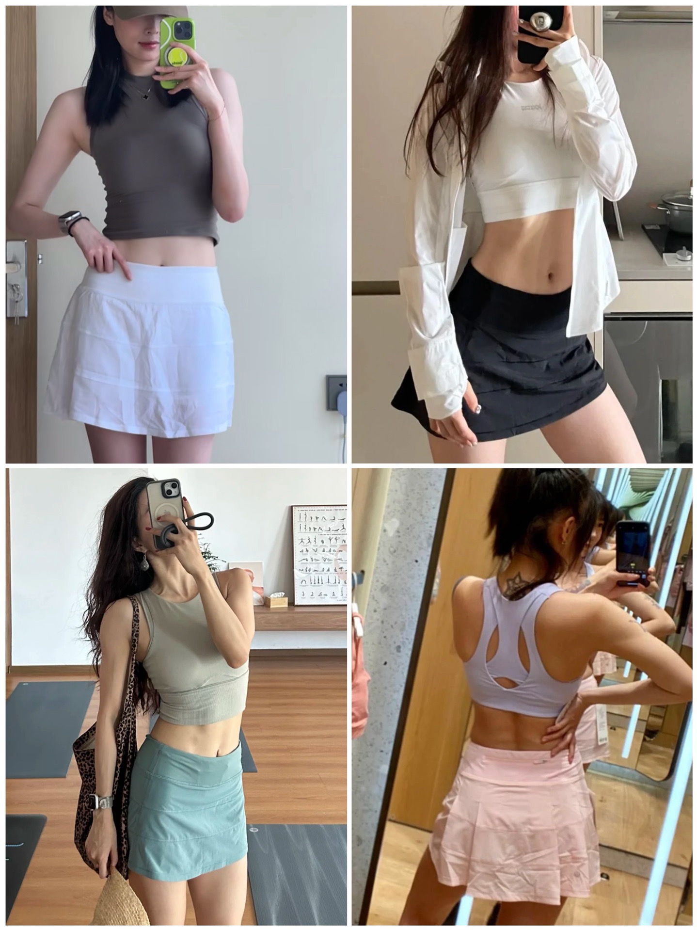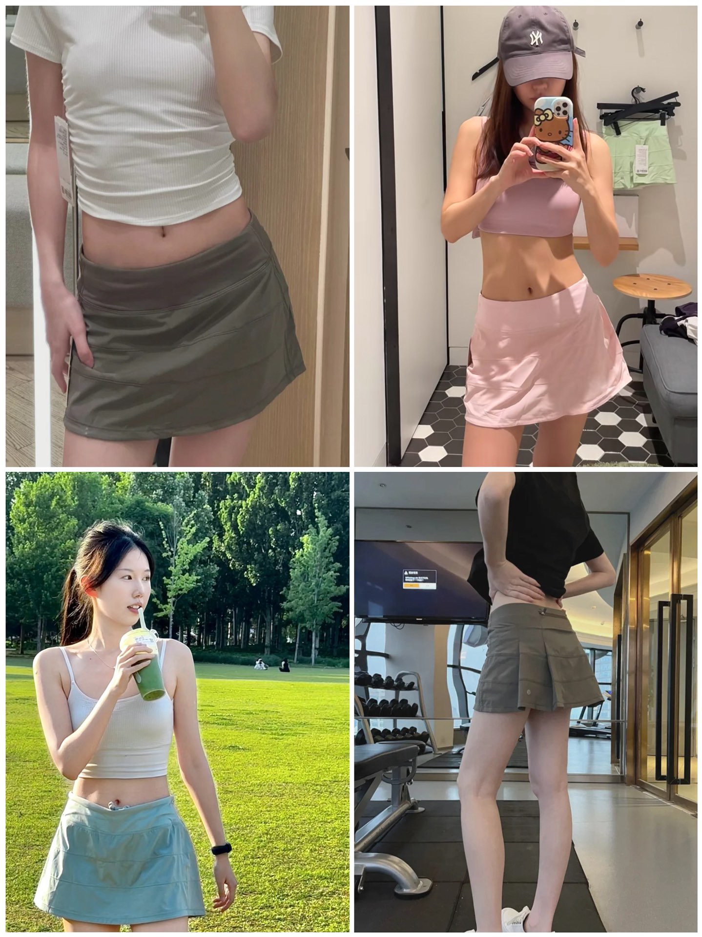 销量冠军半裙~真的美翻了!!最爱的网球裙,三段式拼接设计增加层次感,后片俏皮打褶,设计感十足!lulu不止是运动可穿,日常穿也不要太纯欲 ,俏皮元气女孩,超减龄~网球运动风girl~满屏的青春活力,近两年夏天流行穿搭。上身很灵动又显比例,内里有安全裤锁住安全感,速干双向面料。