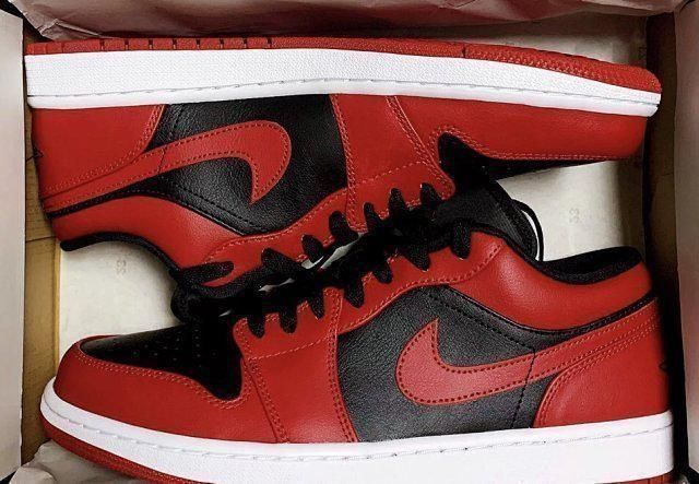 经典黑红配色玩了个对调,红色鞋身配上黑色Swoosh,远看有禁穿的影子,近看又不太一样。白中底收尾,层次感一下就出来了。 低帮款穿脱方便,42.5码也是黄金码。皮质软软的,踩开之后更舒服。配条黑色束脚裤就能出门,不用想太多穿搭。 价格没啥溢价,喜欢的可以直接冲。