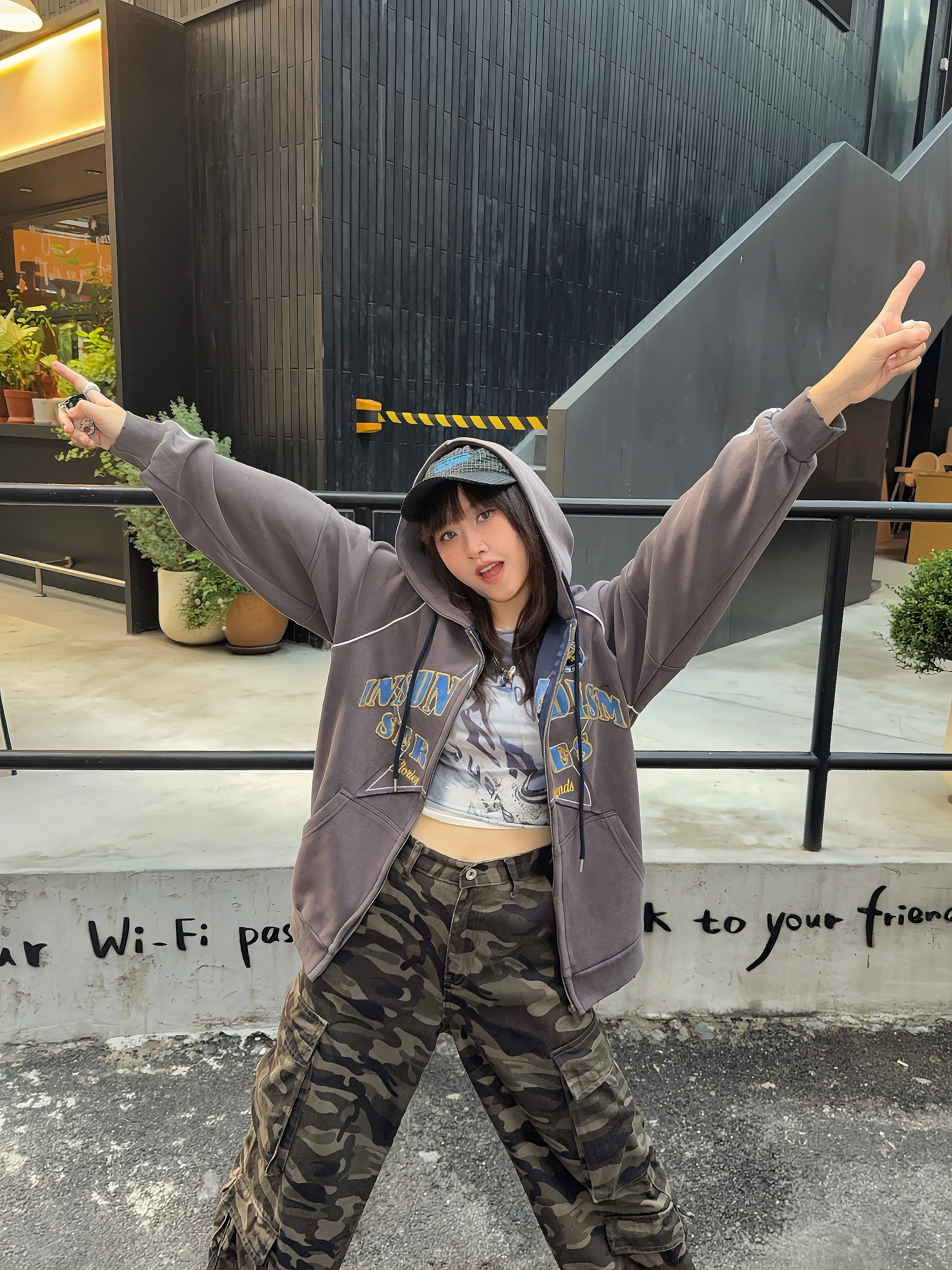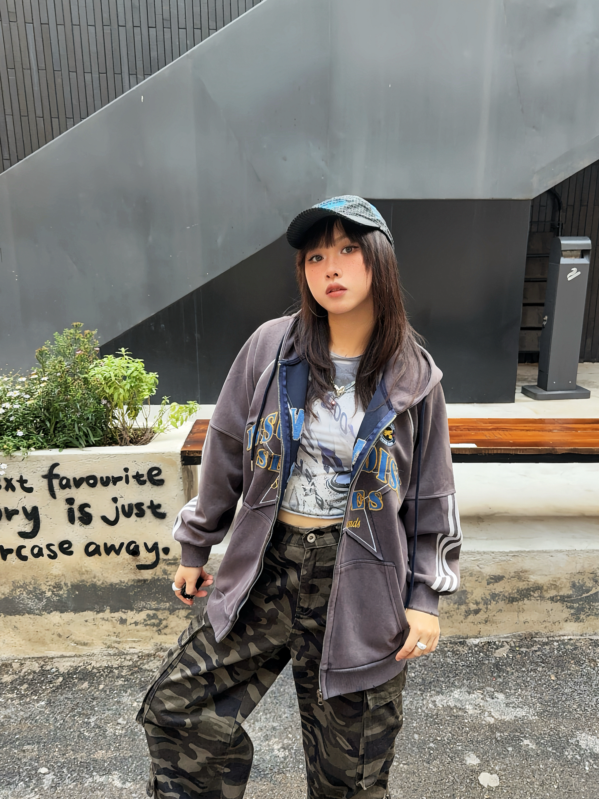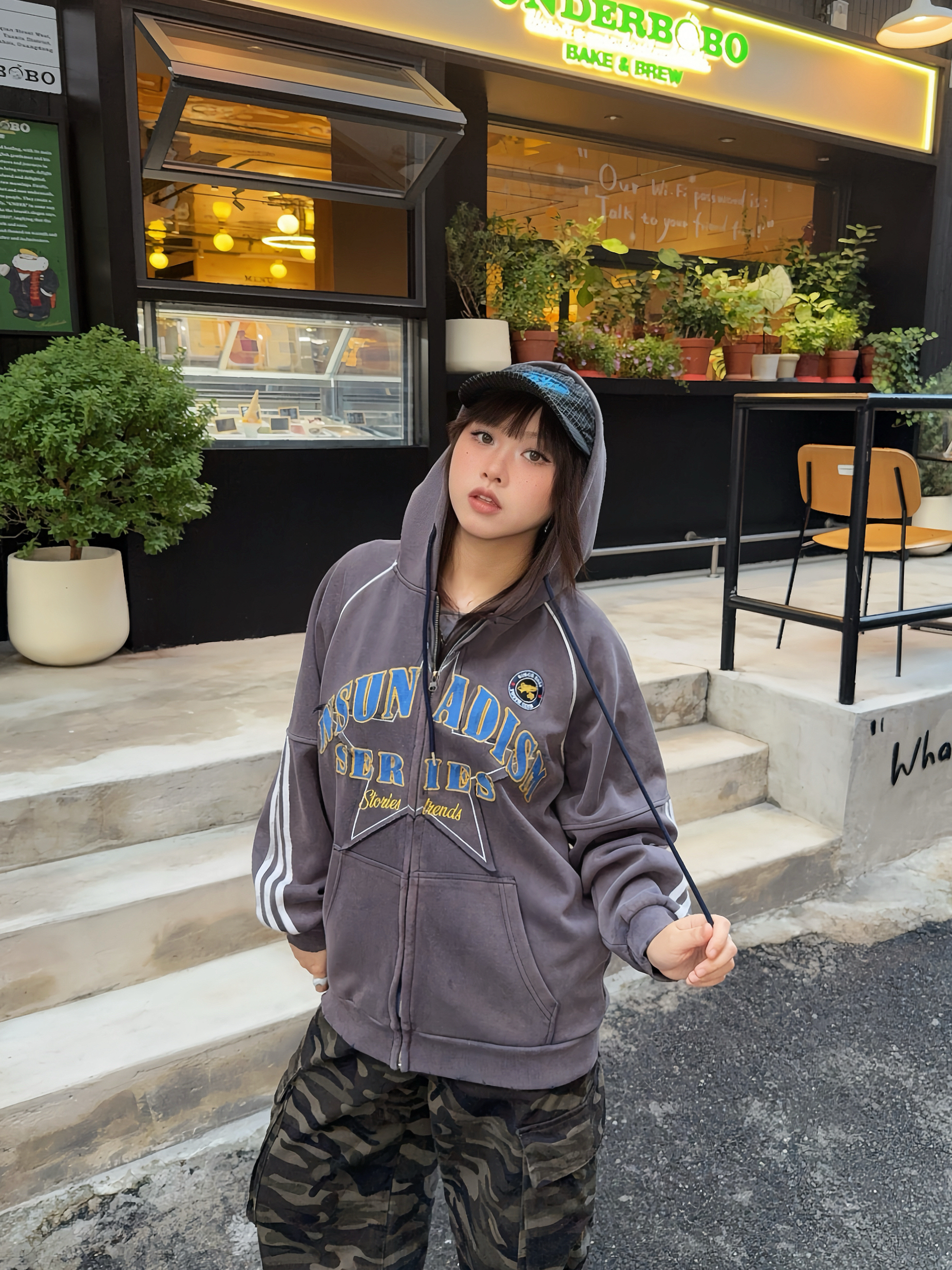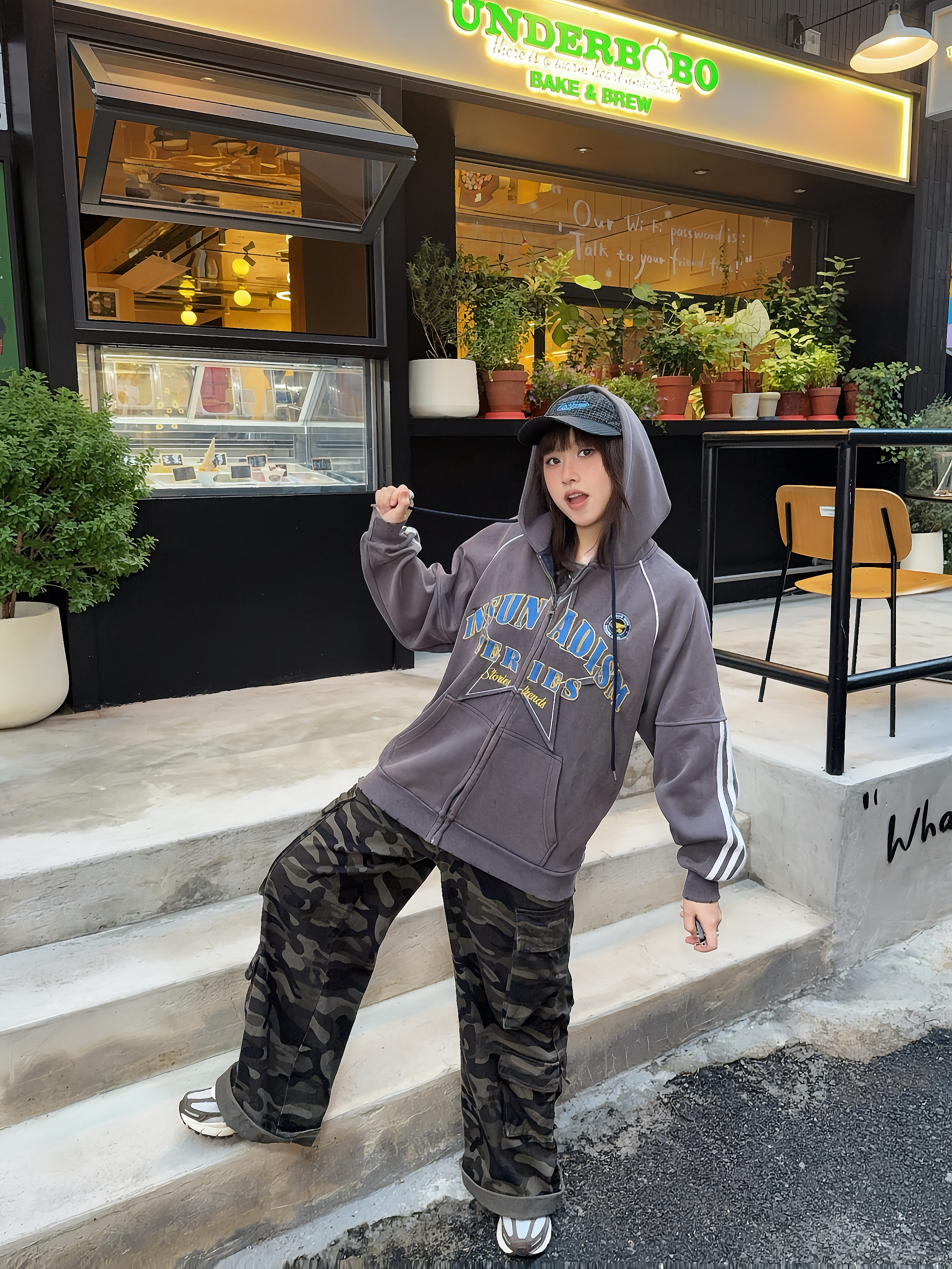 美式感低饱和度色系穿搭🚏马年ootd又酷又辣🔥 ☑️灰色系开衫卫衣搭配迷彩工装裤,整个穿搭很有美式vibe~ 💙还搭配了蓝色棒球帽,跟上衣的印花相呼应上,整个look更有亮点✨,👟鞋子也搭配棕色系复古跑鞋,这么搭hin有质感!