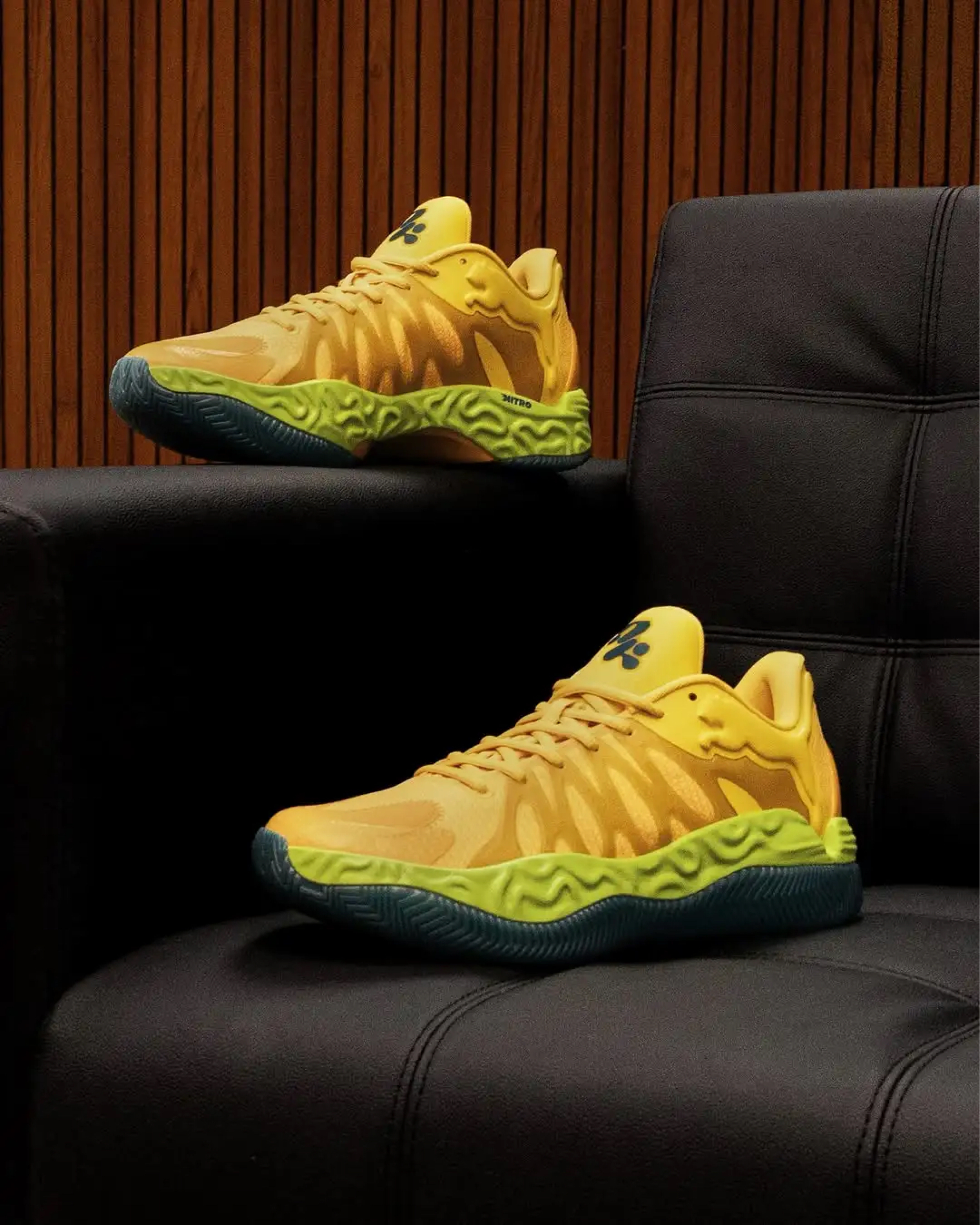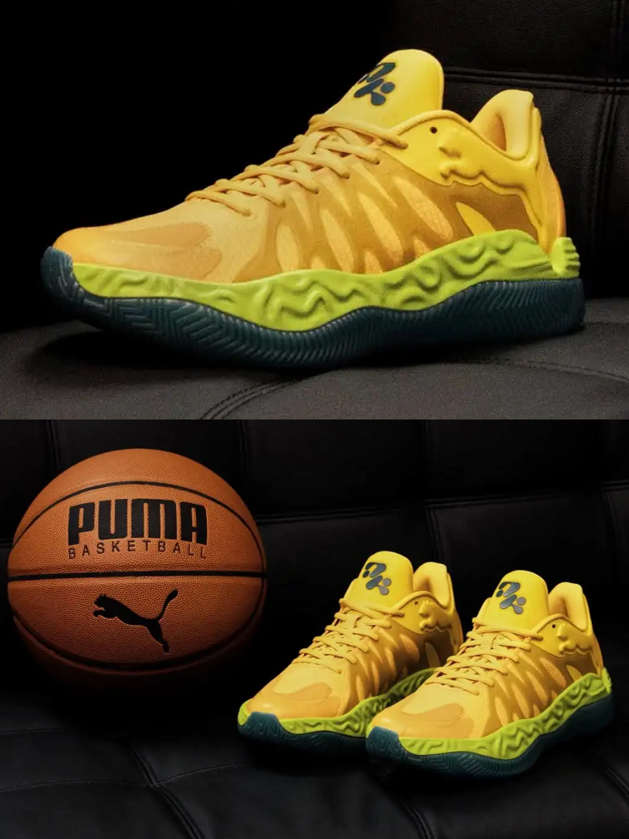 这双 Puma Hali 1 “Citrus” 真的太吸睛了!鞋身以明亮的黄色为主调,搭配荧光绿中底和深蓝色外底,视觉冲击力拉满,一眼就能抓住眼球。 鞋面采用织物材质并辅以TPU笼加强支撑,既保证了透气性,又提升了实战中的稳定性。中底搭载全掌 NITRO 氮气科技,提供出色的能量回馈和缓震效果,同时保持了良好的场地感,非常适合后卫或锋线球员在场上快速变向和突破。 如果你是哈利伯顿的粉丝,或者正在寻...