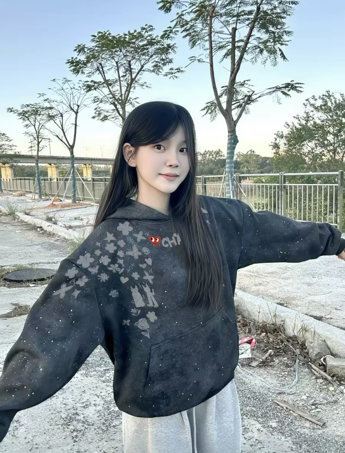 这款连帽卫衣以复古做旧质感为核心,是秋冬季节兼具氛围感与实用性的穿搭单品。 • 做旧肌理面料:采用做旧灰调面料,自带复古磨毛质感,触感柔软且有厚度,既能抵御秋冬凉意,又能营造慵懒随性的美式街头氛围,久穿不易变形。 • 细节设计亮点:肩部满天星印花与字母元素撞色拼接,胸口点缀标志性桃心标识,视觉层次丰富却不杂乱,低调彰显品牌辨识度,适配情侣款穿搭。 • 宽松版型适配:落肩连帽版型,对各种身材都...