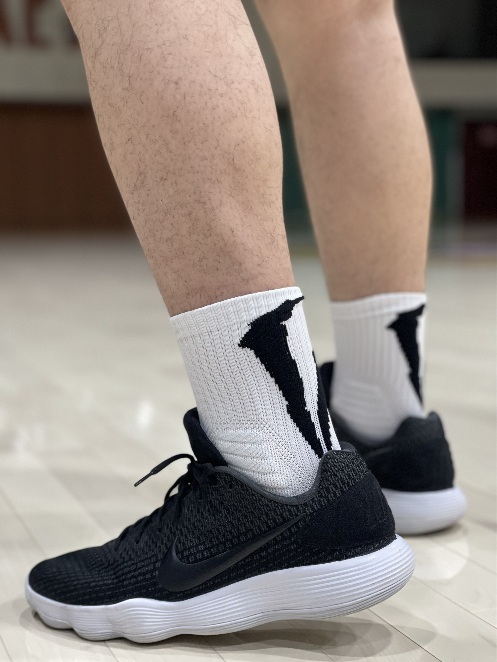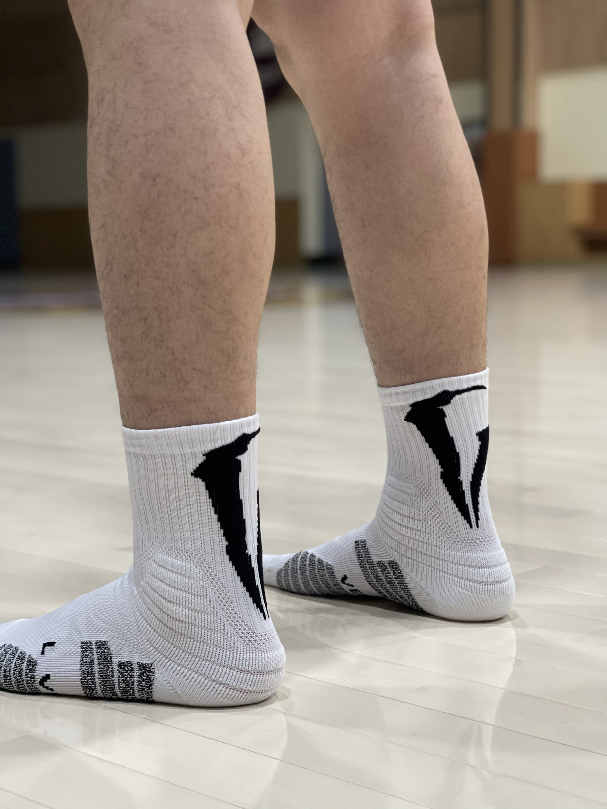 第一次上脚这款维动的聚变pro篮球袜🧦就给我一个大大的惊喜😱!我193/47码的脚穿着刚刚好🦶颜值比较能打黑白配色超级百搭🤩,后跟设计还有未来感,我特别喜欢它的防滑砂👍,面积很大,我日常打球比较废袜子😢,但它在我两小时全场实战下来几乎没有磨损🤨,对于大体重,跑跳起来袜子底部很厚有一定的缓震效果🏃♂️,适当的保护我的膝盖在比较容易磨损的地方都有加厚处理让我的脚在鞋子里不会晃动👟这样的做工质感对...