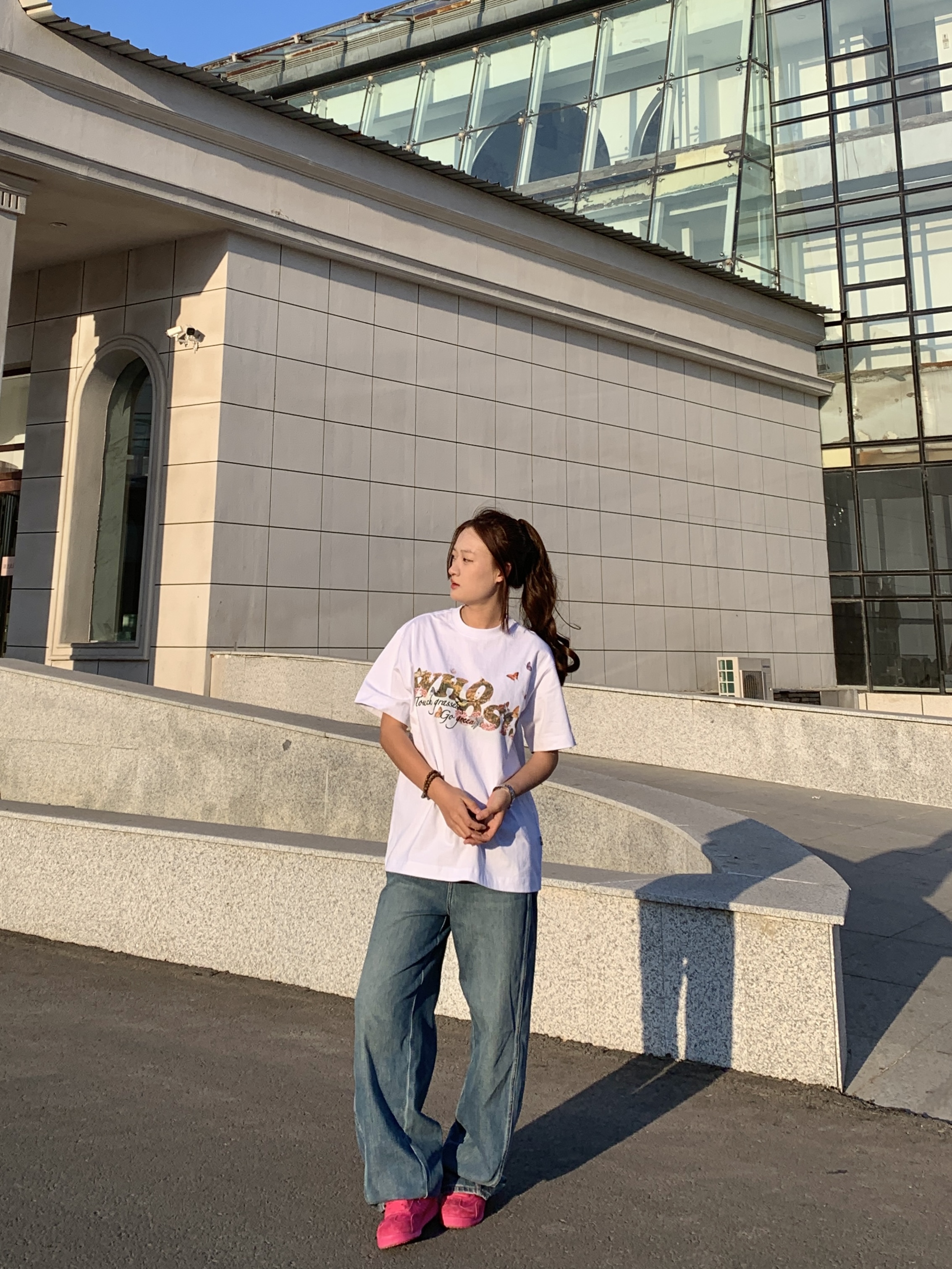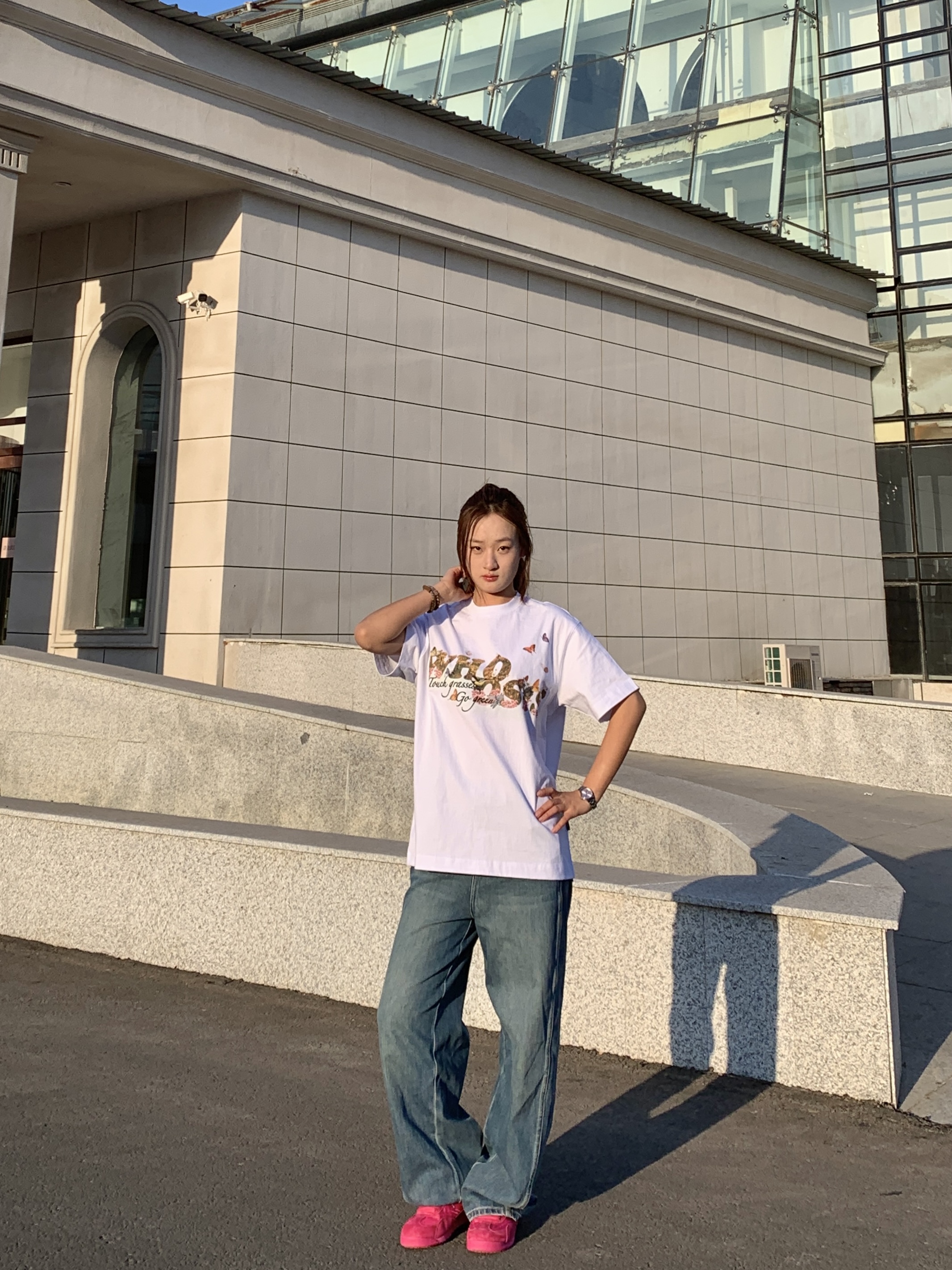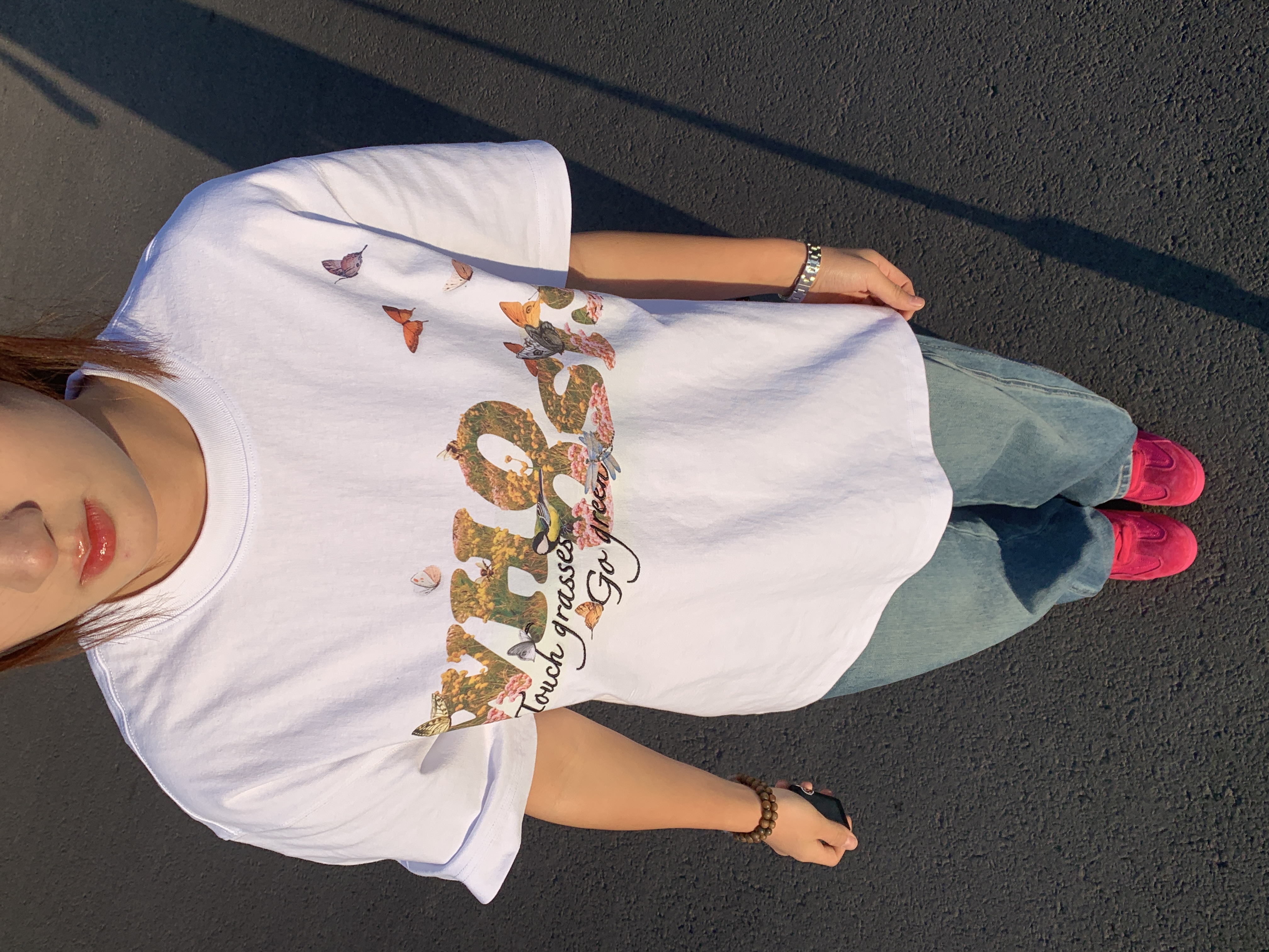我太喜欢身上这件WHOOSIS蝴蝶花卉印花短袖, 纯棉面料 穿着一点都不廉价 很舒服 早八上课或者周末出街都能穿😌 正面的蝴蝶花卉印花也好有春意盎然的感觉~ 随便搭牛仔裤、运动裤都好看,妥妥的早春懒人穿搭模板👖