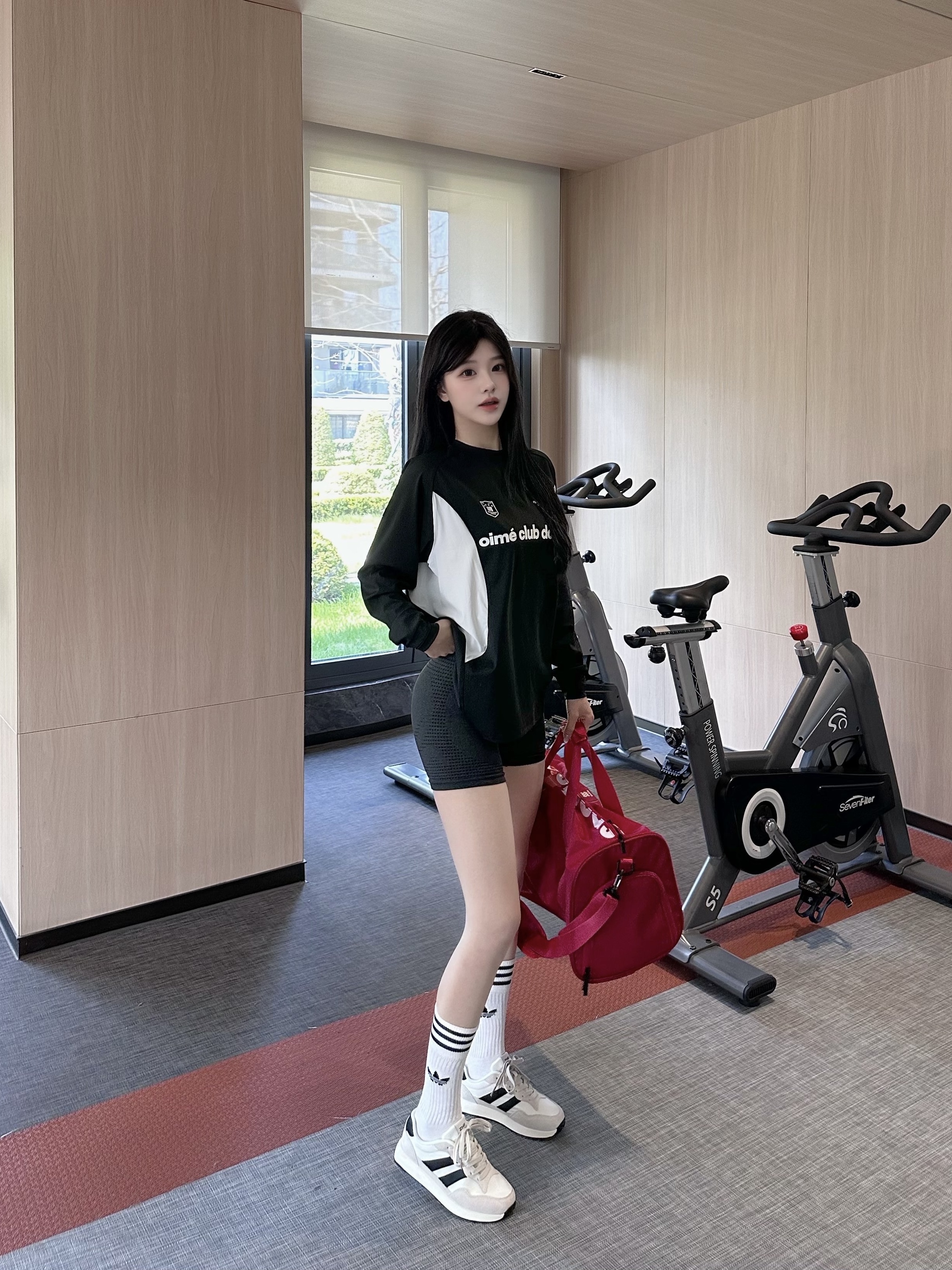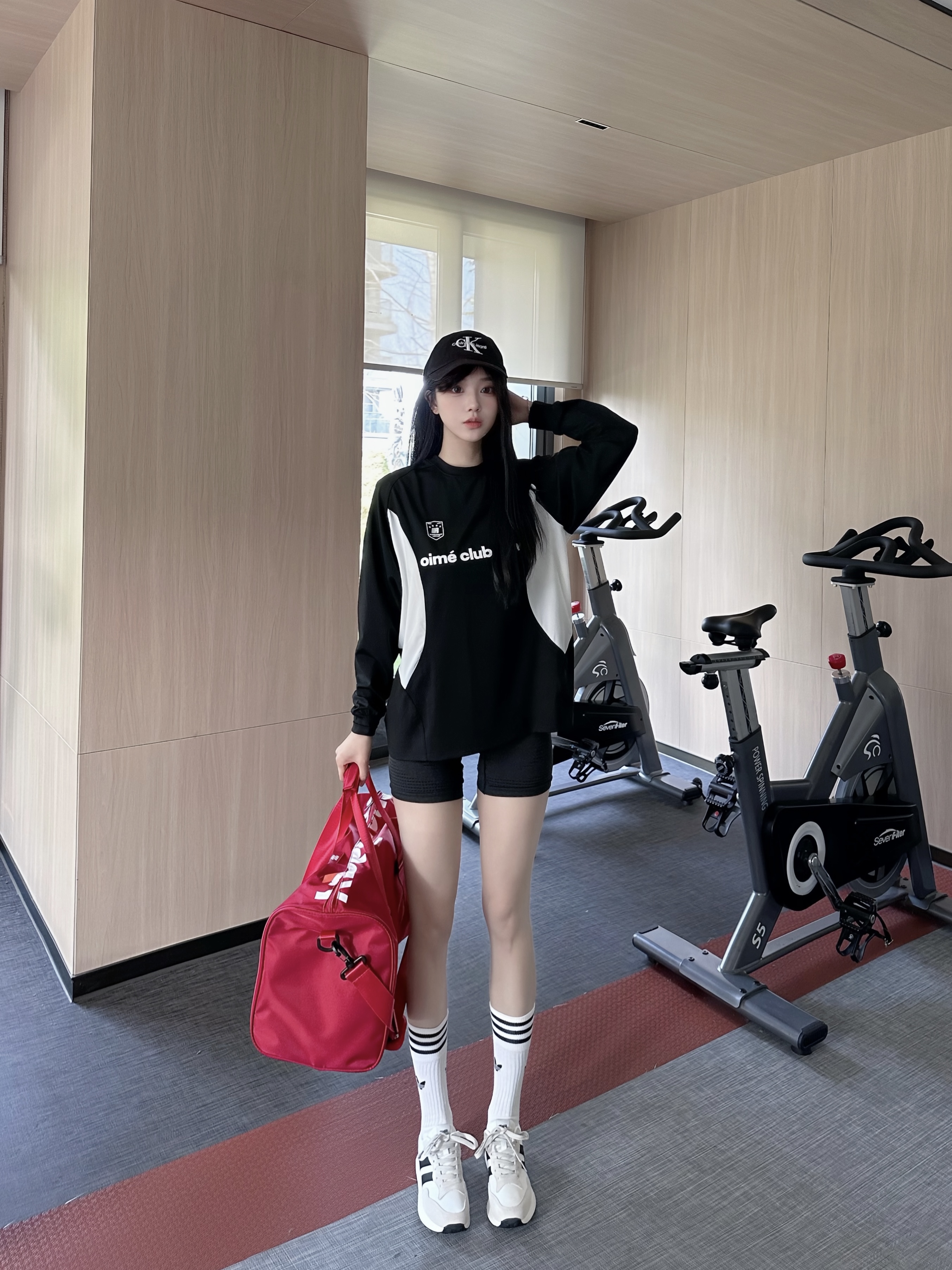 帅帅的去健身房锻炼了 春日的运动穿搭是我的舒适区 美式黑白撞色T恤➕健身短裤,一身松弛显瘦 鞋子搭配一双舒服的阿甘鞋,增高显腿长 除了运动日常穿也很好看的一身 今天搭配一个红色健身包 这种黑白灰色系穿搭就很适合搭配亮色健身包 去健身房尊的蛮吸睛的