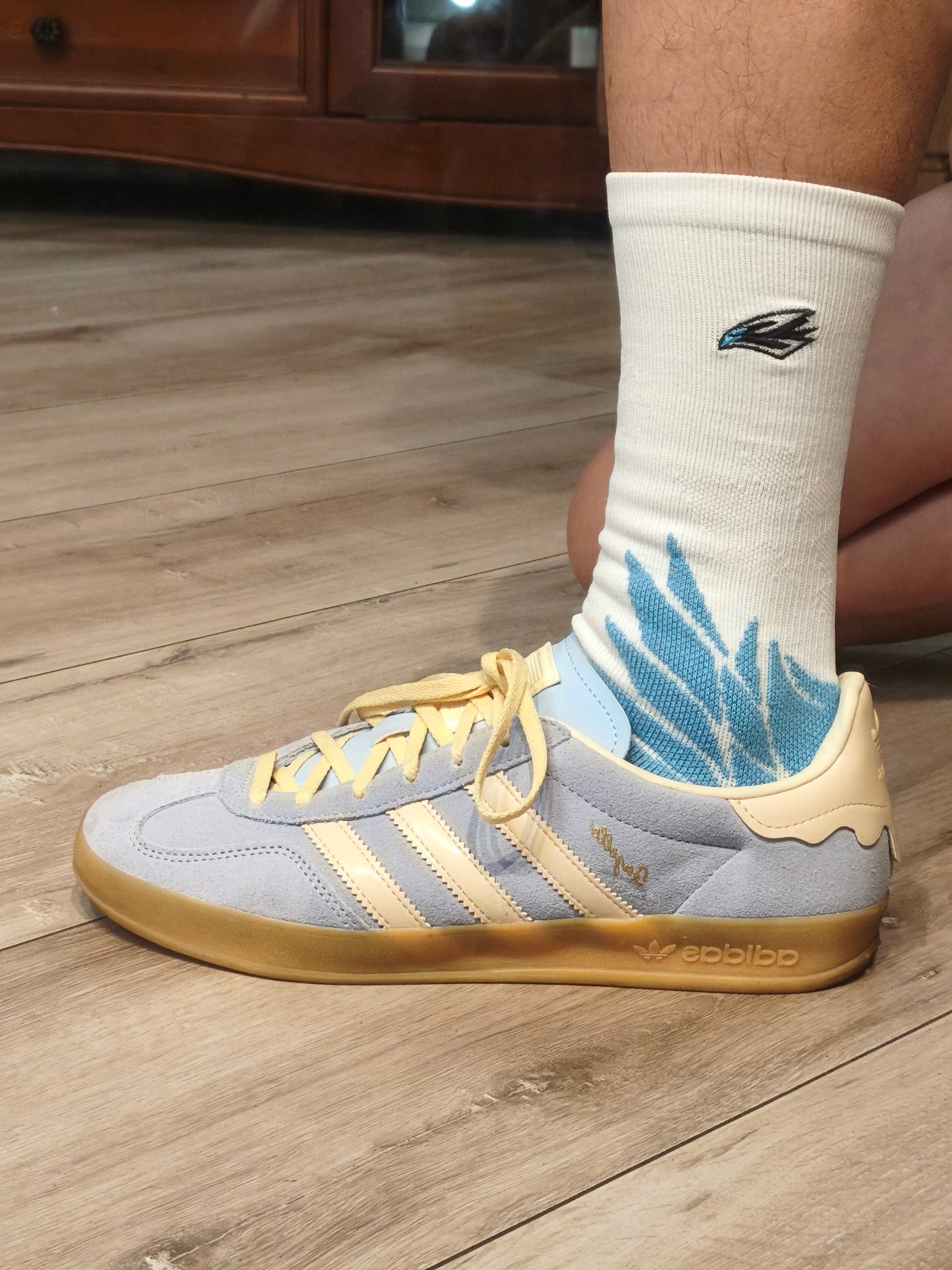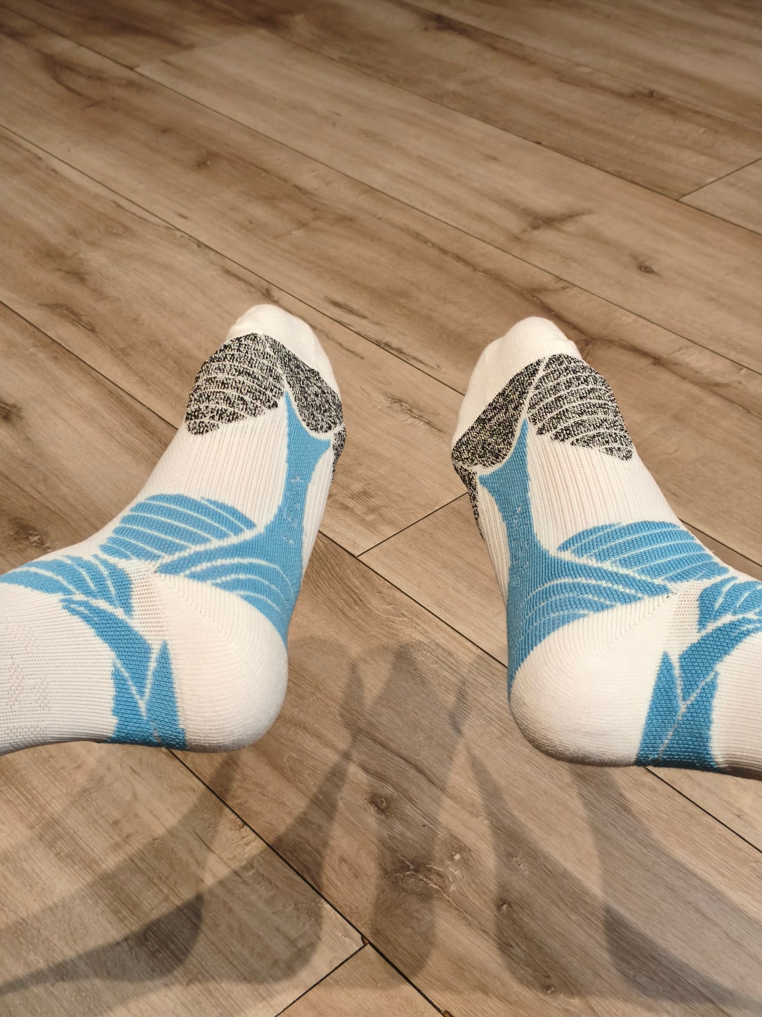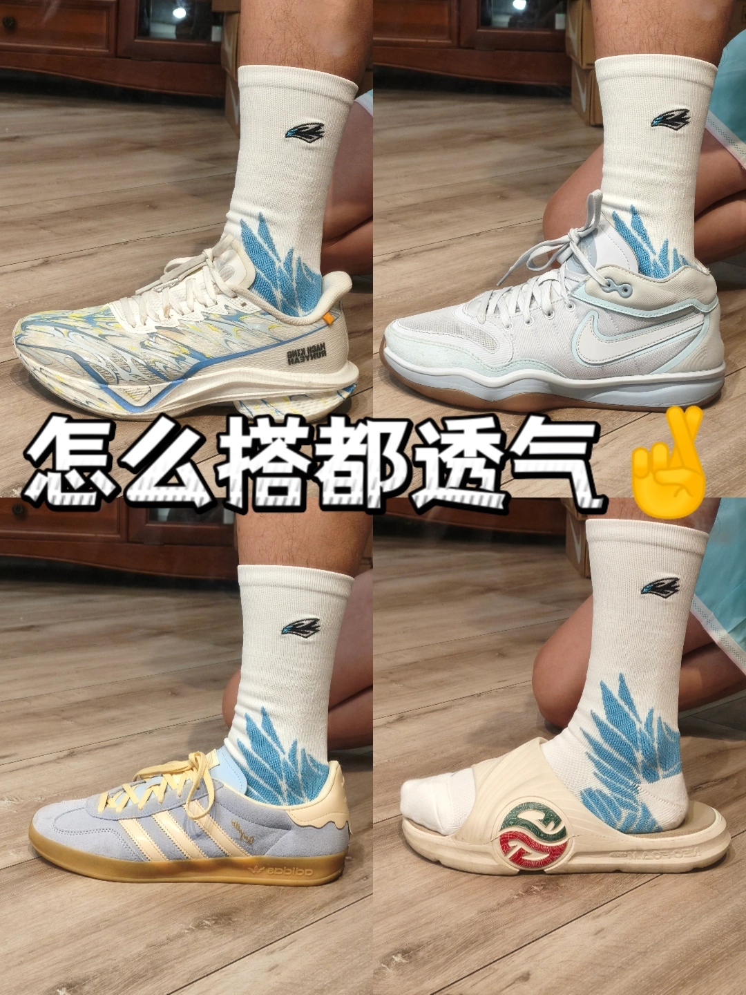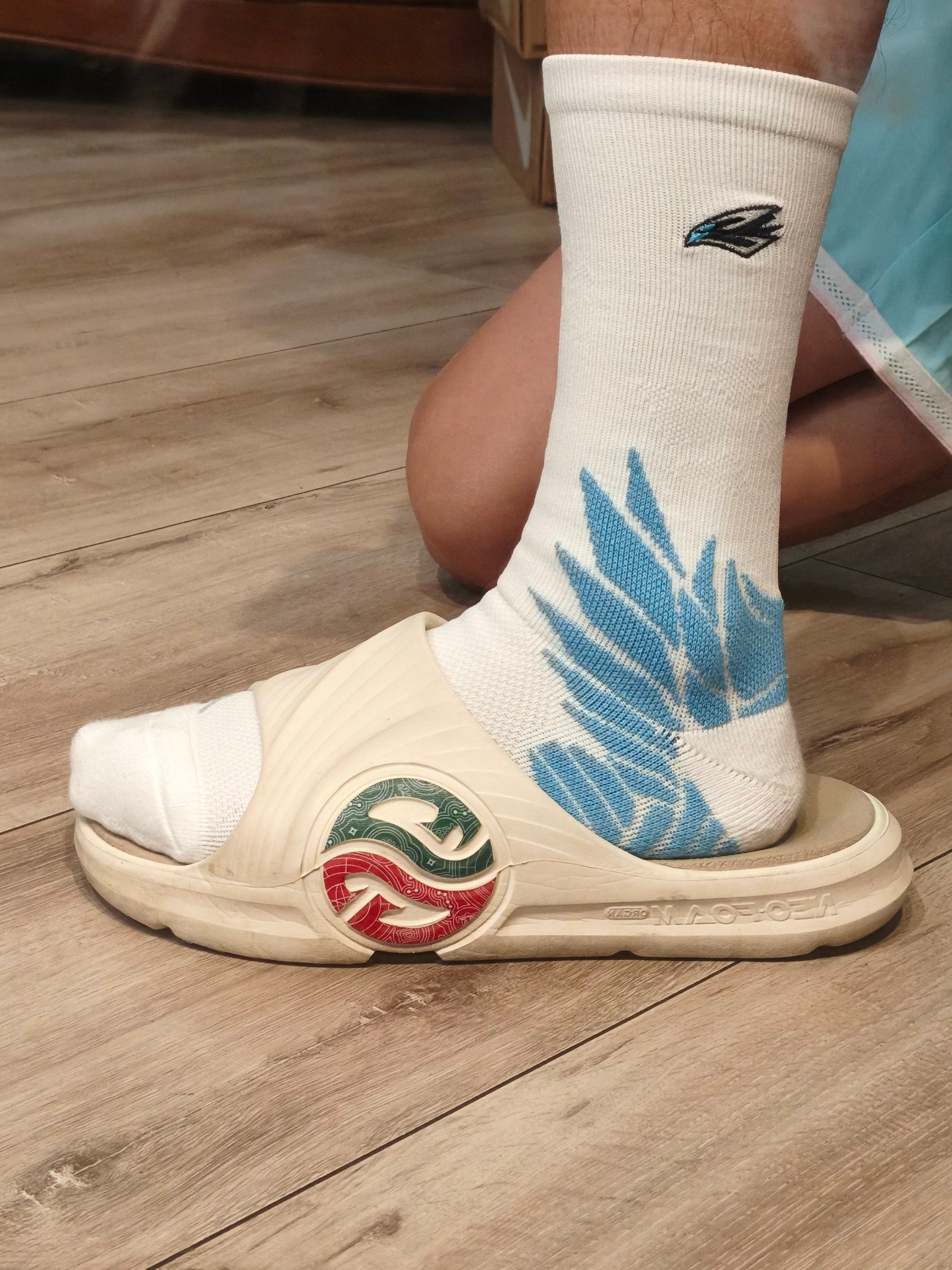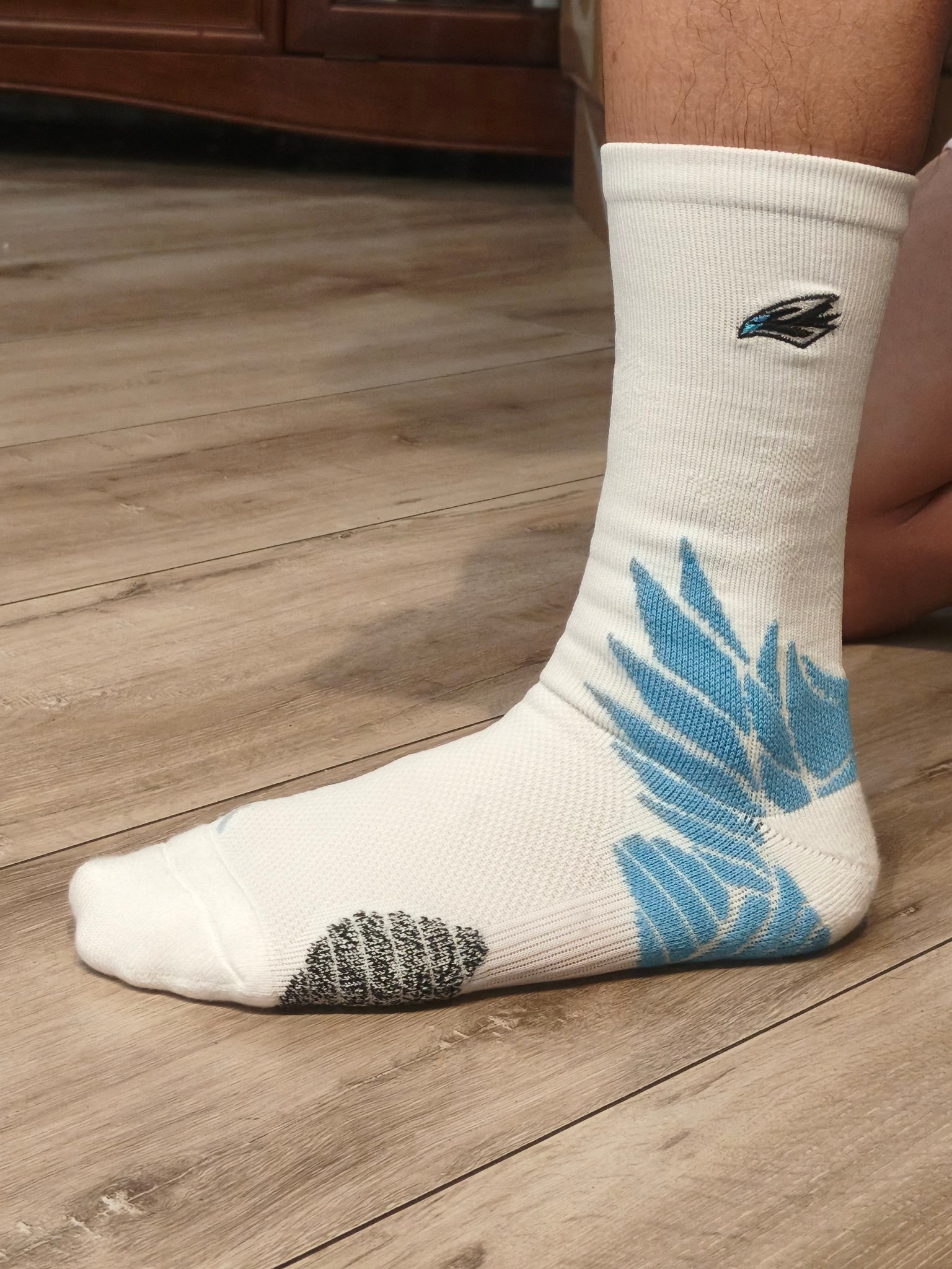 维动这个隼系列不光翅膀刺绣很惊艳,它主打的轻薄透气性能也很专业,细看可以看到袜身上采取了很多特殊织法,透气性绝对YYDS,同时该有的防滑纱和加厚毛巾底也没落下。整体而言是一双性能颜值双在线的性价比球袜,而且搭配其他像跑鞋,板鞋,拖鞋都不违和,属于是春夏运动必备装备了。