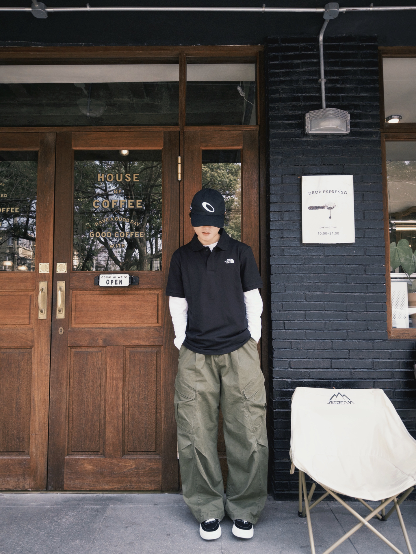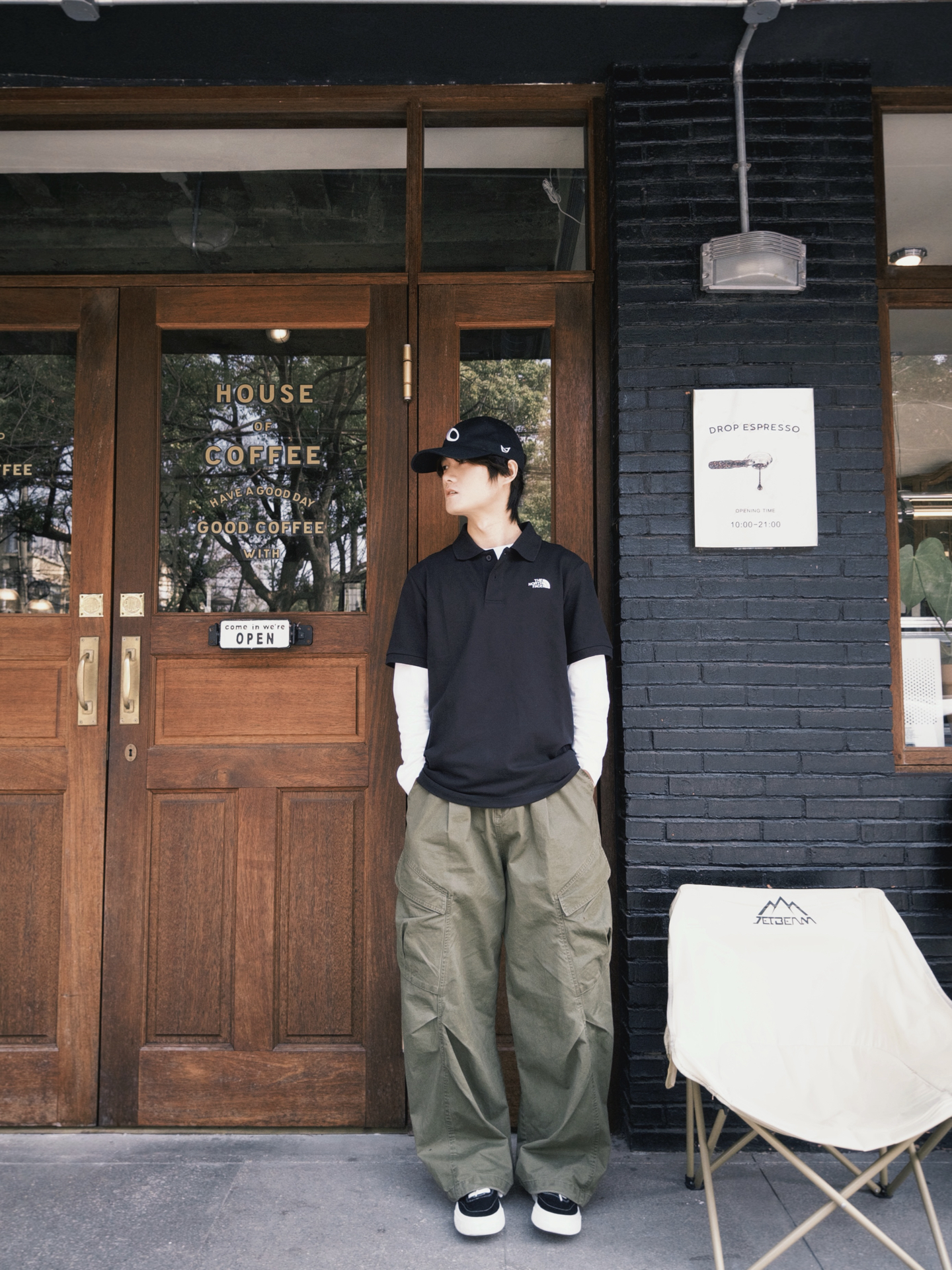 周末在咖啡店门口随便拍了几张 发现把基础款换个穿法,整个人都不一样了 把基础款polo叠穿白色长袖打底 换个宽松裤型、加顶帽子 瞬间从路人变cityboy 衣服不够多,但架不住我会搭啊😎 #潮人的春天来了 #今天也是cityboy #Cityboy叠穿美学