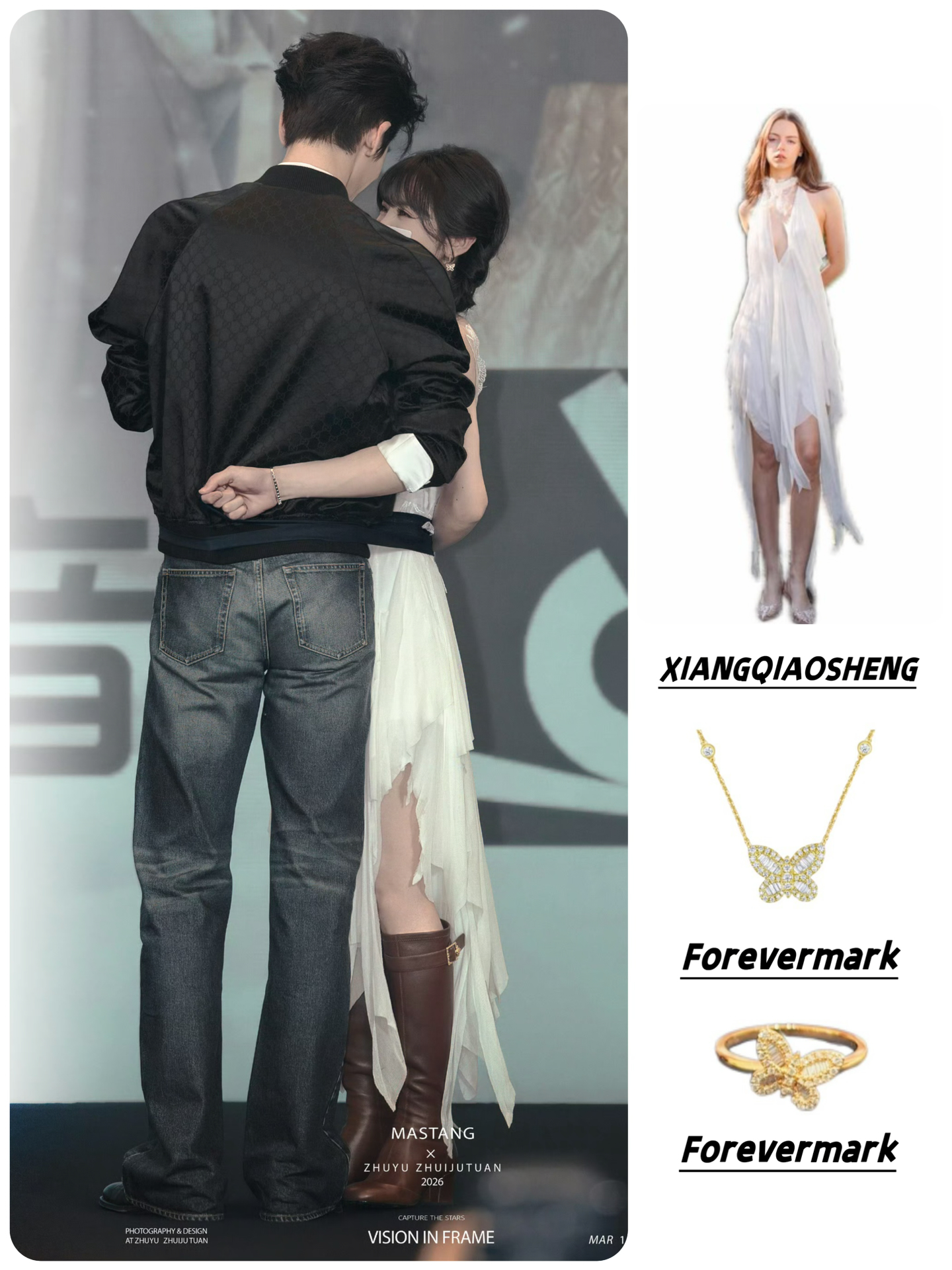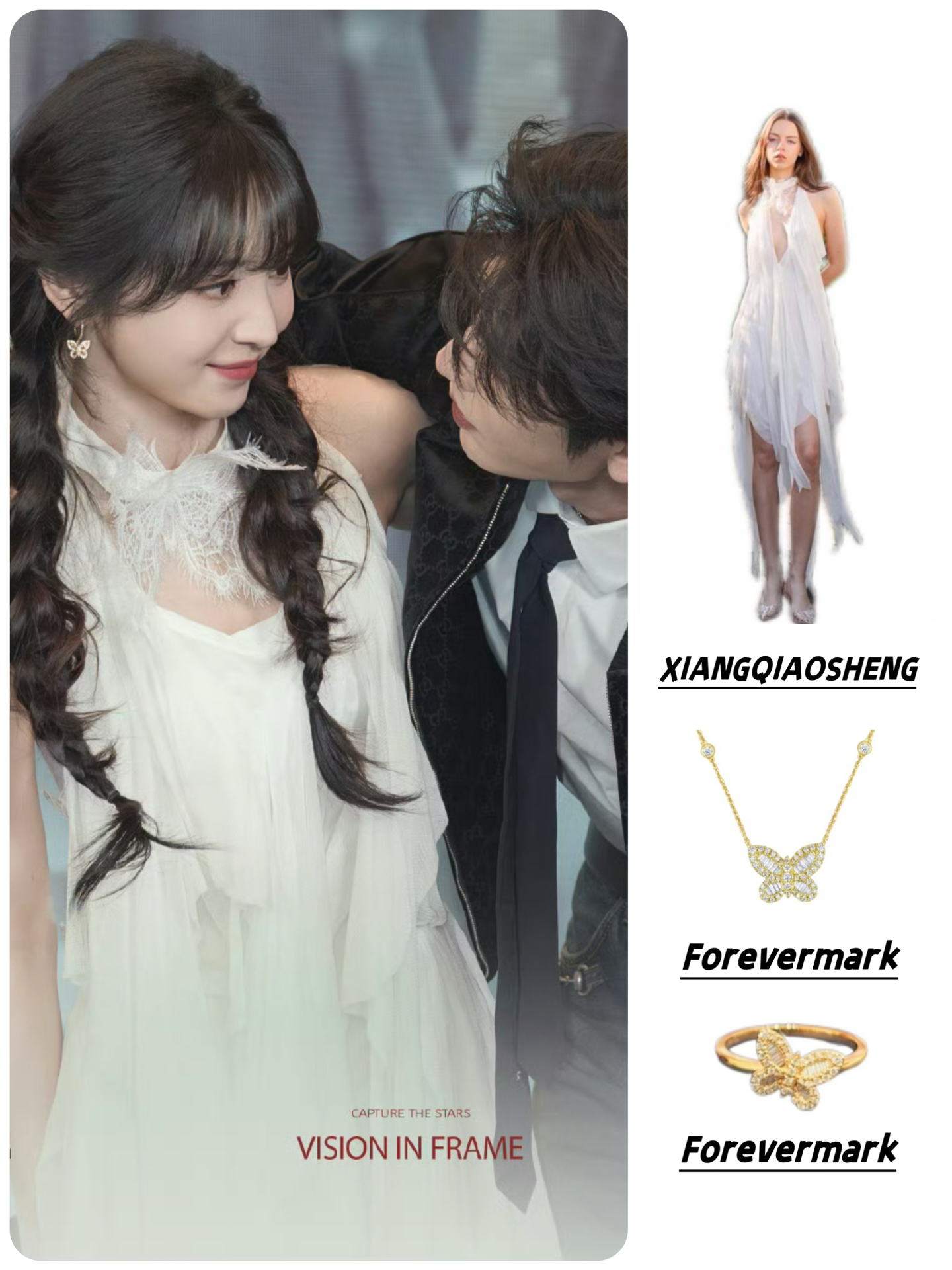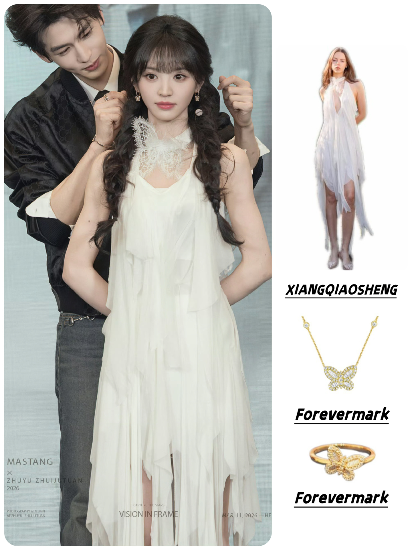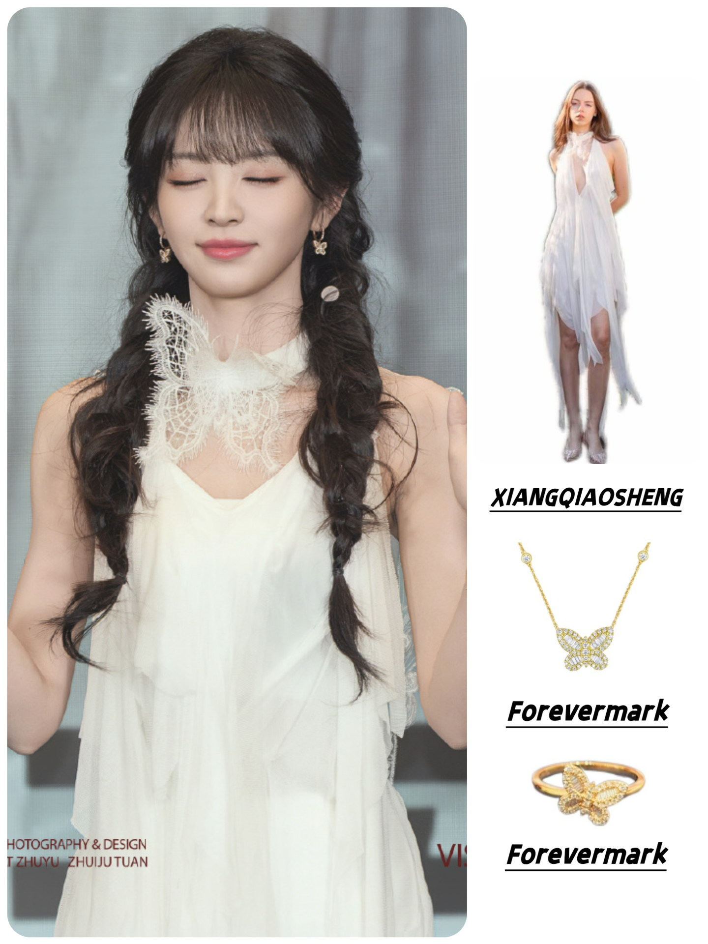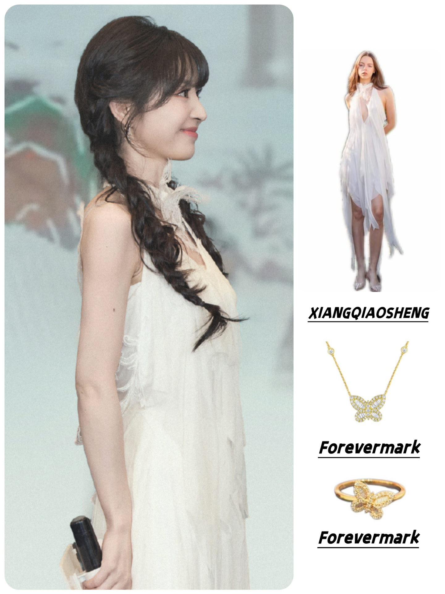 👗XIANGQIAOSHENG 26SS蝶影不规则连衣裙 配饰:Forevermark 「 Le Light冰糖」系列