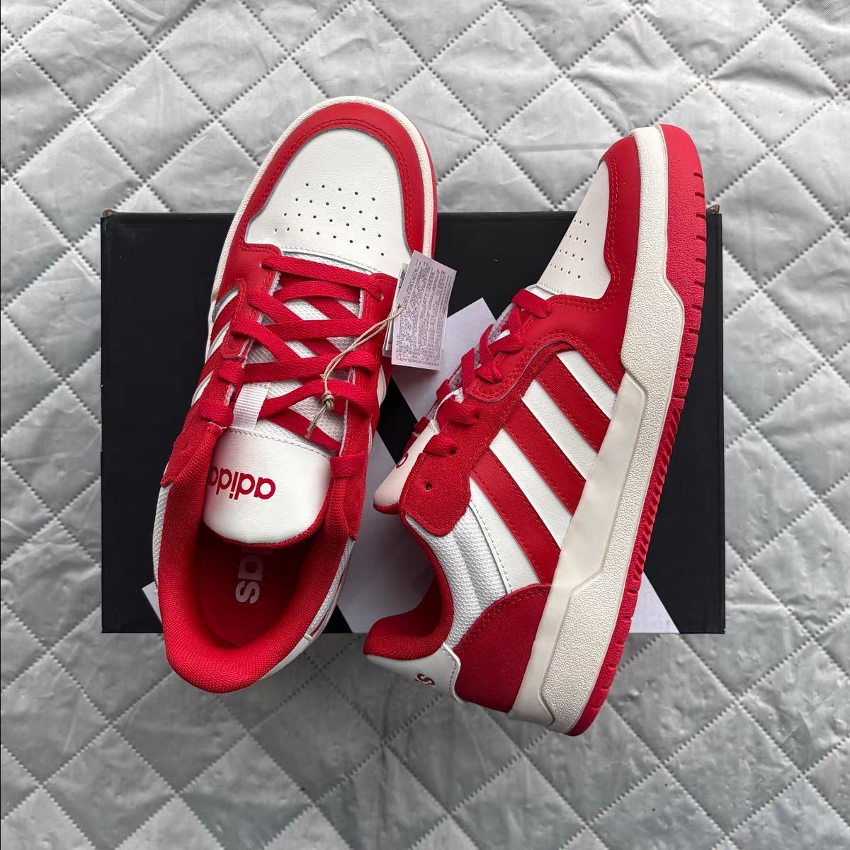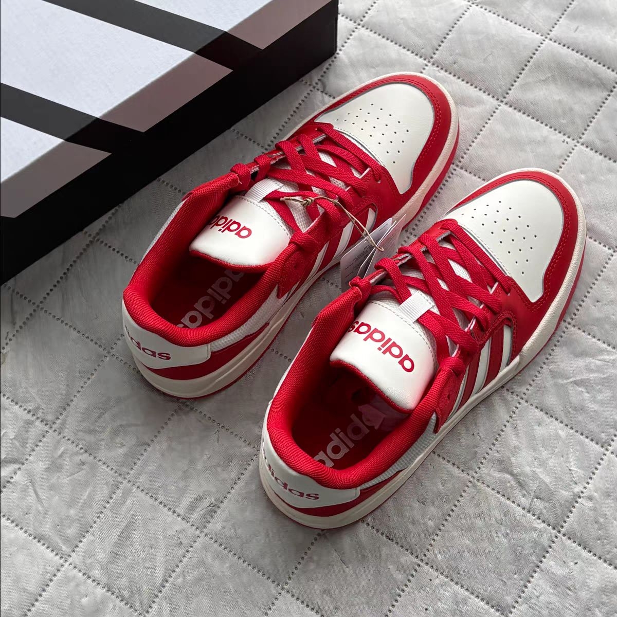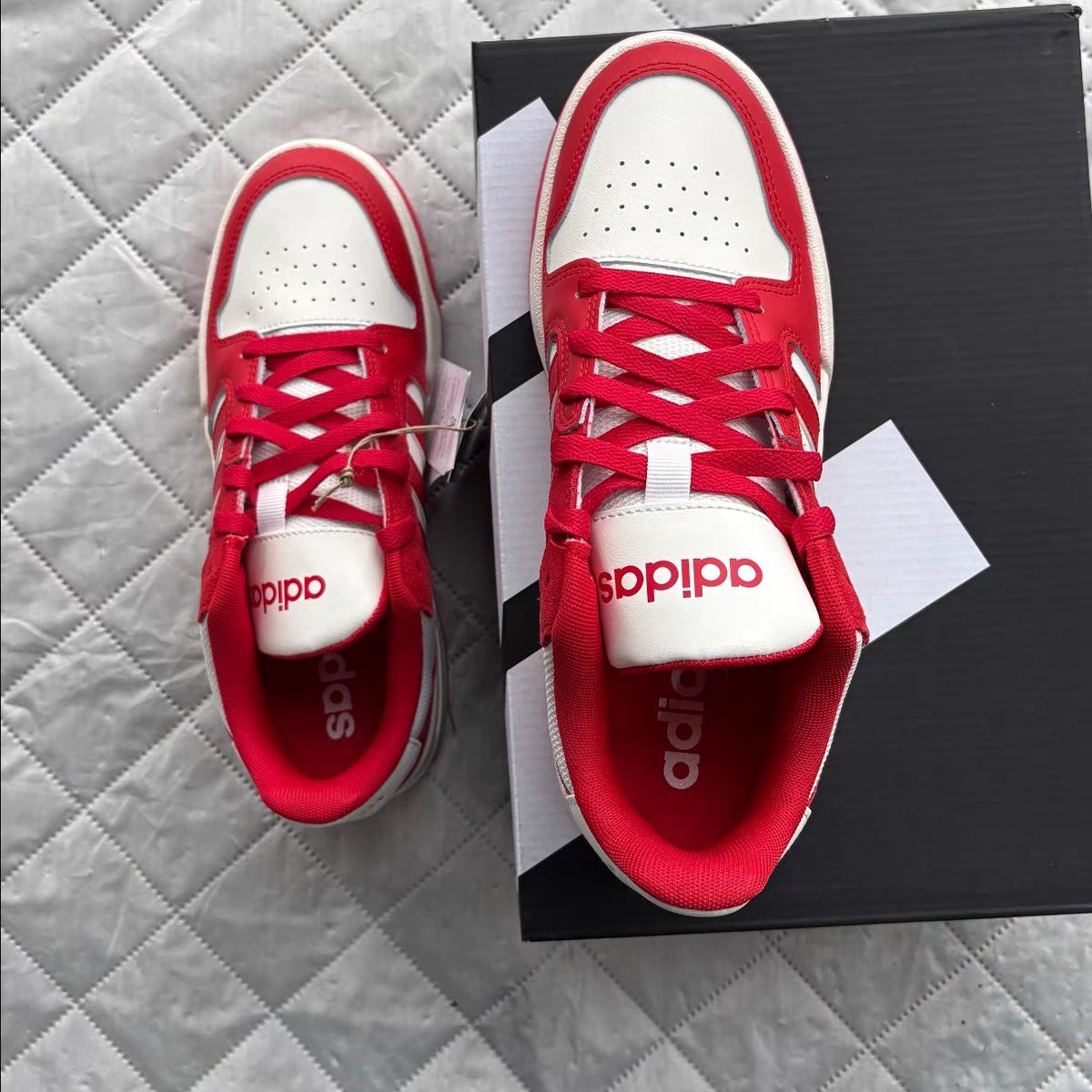✨ 颜值暴击 红白撞色直接戳中审美点!经典三条杠+复古篮球鞋轮廓,新年红配色喜庆又吸睛,不管是搭牛仔裤还是运动裤都超有氛围感,情侣款一起穿回头率拉满💥 👟 细节质感 - 拼接皮革+网布鞋面,透气又耐造,日常通勤、逛街暴走都不累脚 - 厚实中底+耐磨橡胶外底,脚感软弹,走路久了也不闷脚 - 鞋舌和后跟都有adidas标识,细节拉满,质感完全不输大牌潮鞋 💡 穿搭万能公式 - ...