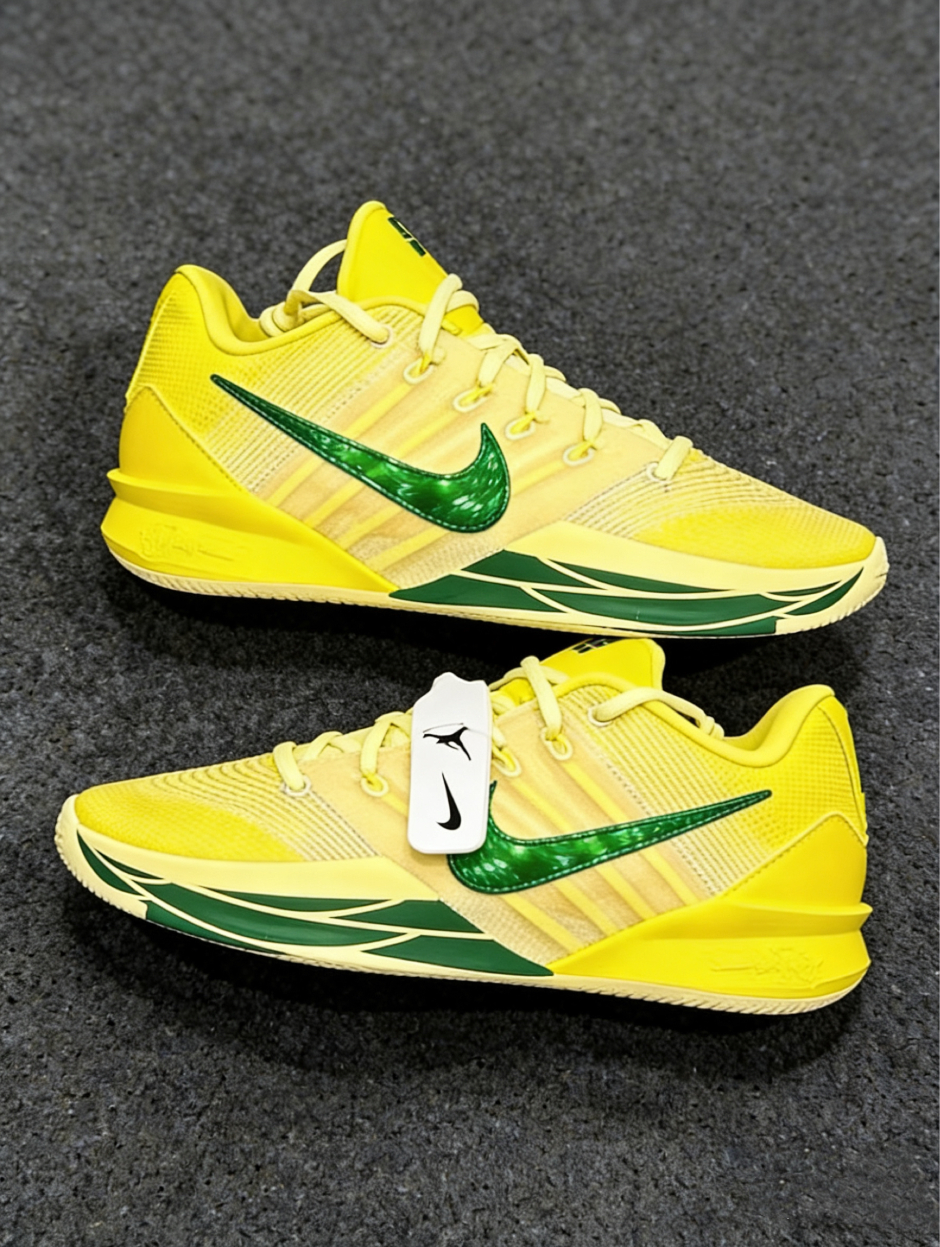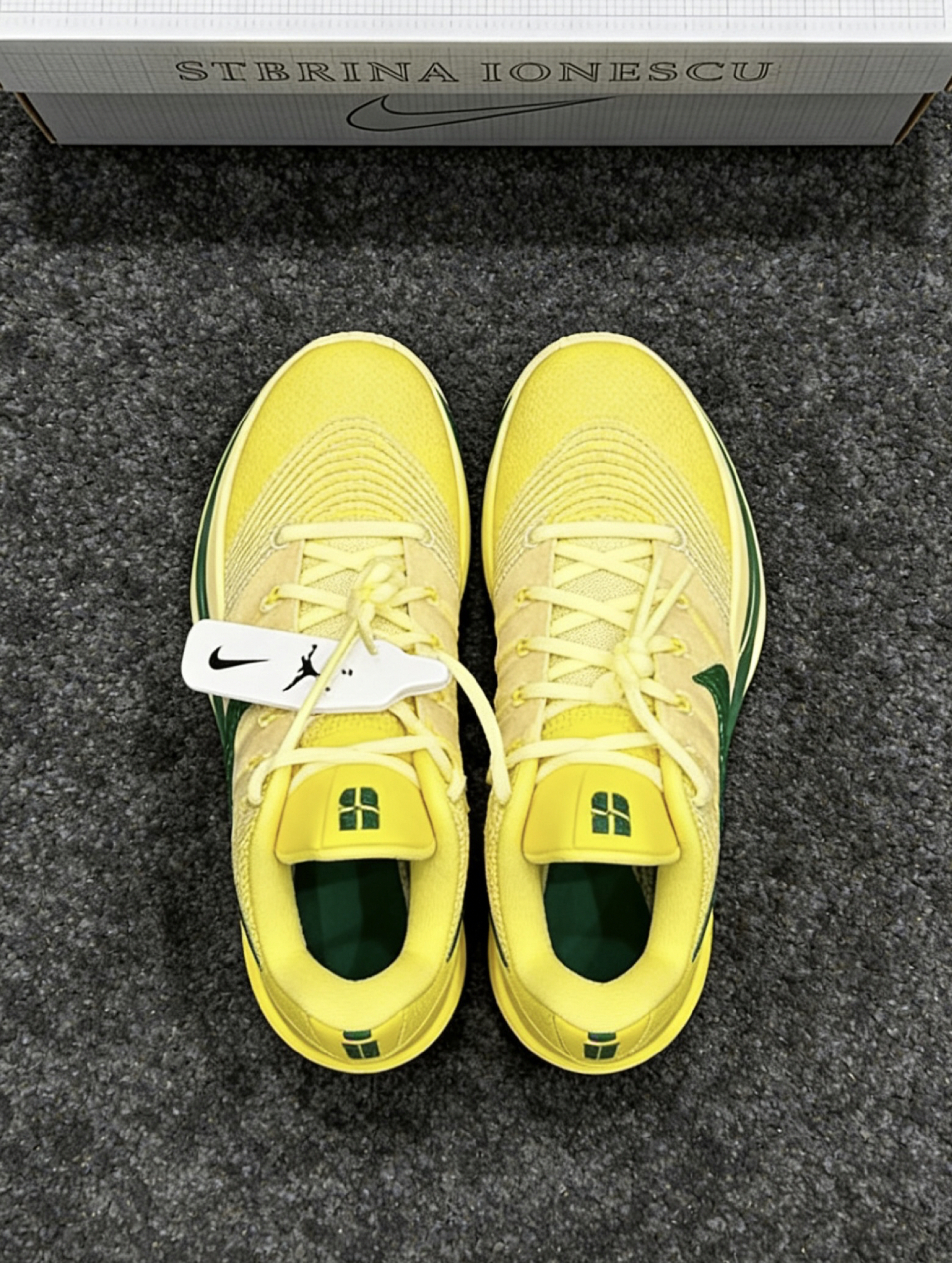 谁能拒绝清爽又亮眼的俄勒冈经典黄绿配色啊!通体明亮的柠檬黄鞋身,饱和度恰到好处,完全不显黑,黄皮上脚也能轻松hold住,男生穿清爽有活力,女生穿元气又亮眼,男女通杀实锤了。鞋身的工程网布自带细腻纹理,侧面搭配亮面质感的祖母绿Swoosh,中底的绿色线条、鞋舌鞋跟的专属SI标识、鞋内里的绿色细节完美呼应,1:1还原了俄勒冈大学鸭子队的主场配色,每一处细节都藏着萨布丽娜对母校的致敬,出门完全不担心和烂...