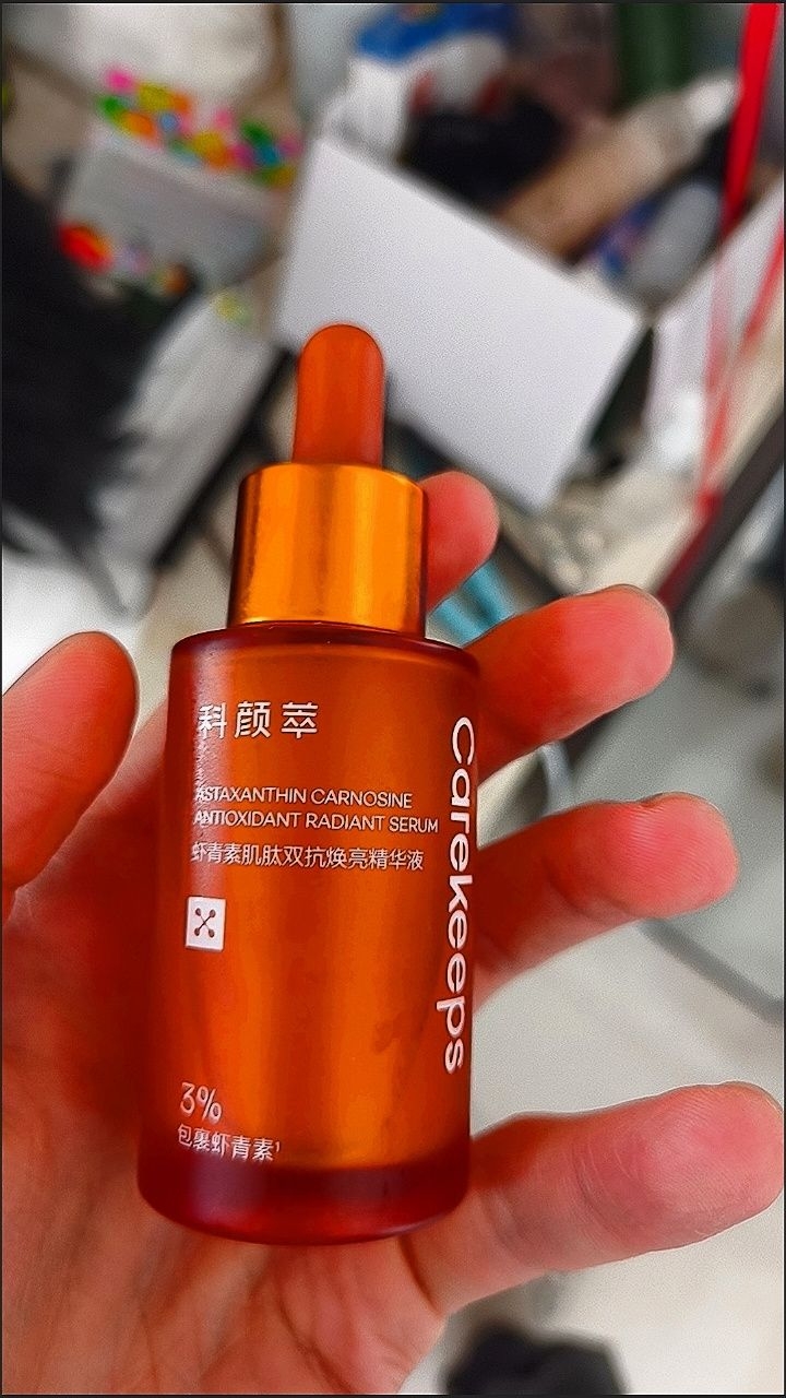 谁懂啊!之前底妆一到下午就氧化发黄,像戴了个 面具又黄又黑。听了朋友的分享买了这瓶虾青素精 华, 妆前就一直用它打底, 底妆真的一整天都清透 服帖, 到晚上还是白白净净的一点都不暗沉。抗氧 化能力真的顶, 再也不用频繁补妆了,约会必备!