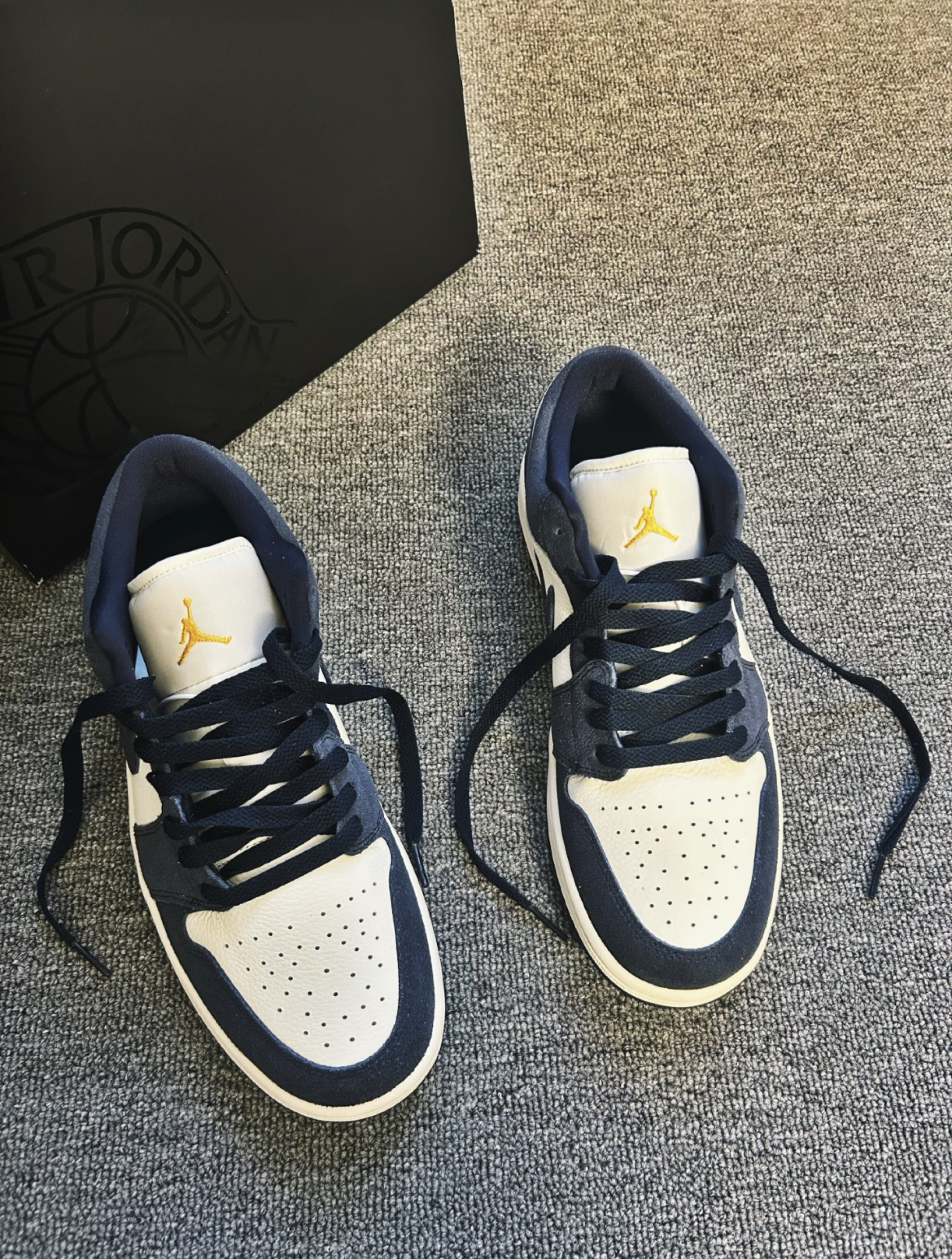 1️⃣外观 海军蓝麂皮+米白荔枝纹皮革,复古又高级,麂皮的磨砂质感很显档次。在春天这个绿色的季节下,蓝色的Aj给人一种清爽的感觉,鞋舌金色飞人刺绣、后跟红色飞翼Logo,低调又有辨识度,不会撞款。低帮设计,视觉上还能显腿长。 2️⃣穿搭 万能公式:牛仔裤+卫衣/棒球服,秒变美式复古少年。 通勤风:搭配西装裤+白衬衫,混搭出街不违和,低调有品位。 运动风:同色系运动束脚裤+白T,街头感拉满,四季都...