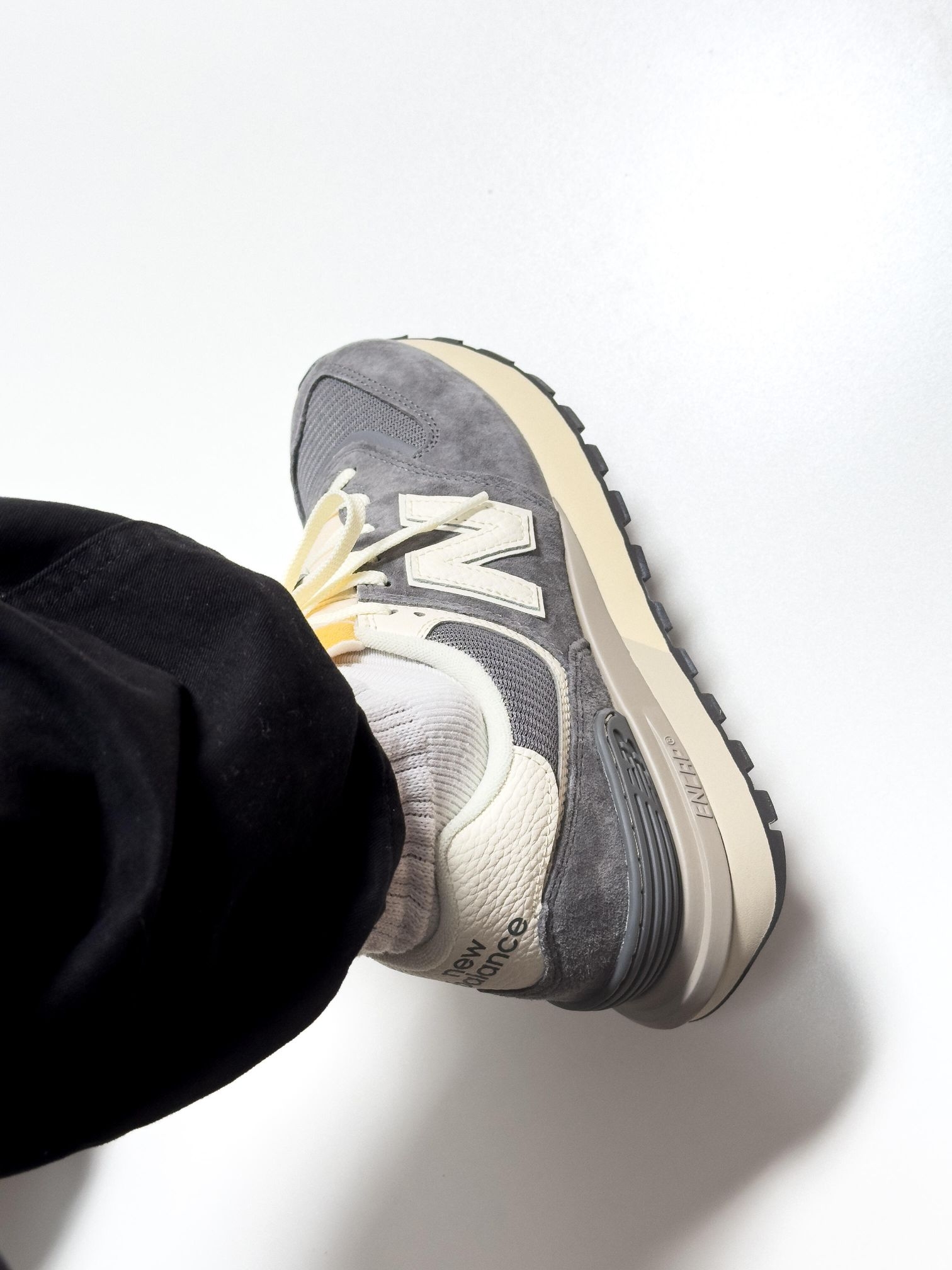 👟:NB574元祖灰 🎬 特别喜欢574系列,特特别是LG鞋型,后跟突出来那一块更有层次感,而且鞋型真的很修饰大丑脚,宽脚穿上去也很秀气 尺码📏 脚肥脚宽的,听劝,要买大半码,上脚更好看! 脚感🦶 正常复古慢跑鞋的脚感,没啥特别的 颜值💅 元祖灰的颜值不用我多说了吧,有一种灰,叫做NB元祖灰,上脚真的太高级了