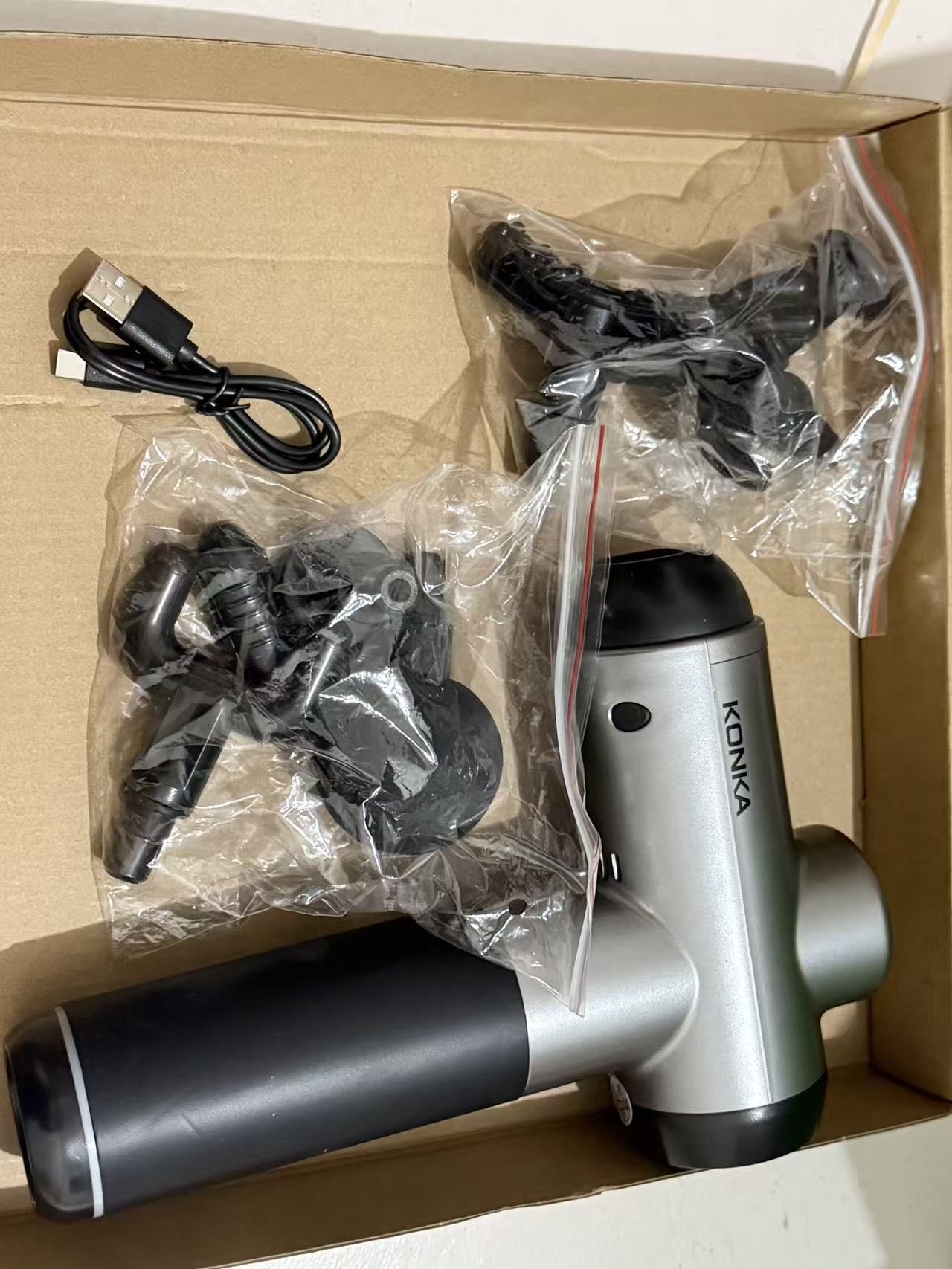 外观质感:银黑撞色超有科技感,磨砂手柄握感扎实,拿在手里不滑,颜值完全在线! 配件丰富:配了好几种按摩头,球形头放松大肌群、U型头按脊柱两侧、平头头打深层肌肉,还有专门照顾细节的小头子,全身都能照顾到~ 使用体验:多档力度可调,平时久坐肩颈僵硬、运动后肌肉酸痛,开中档怼个几分钟,紧绷感直接消散,震感够劲但不麻手,续航也很顶,充一次电能用好久! 便携加分:体积不大,放包里带去健身房/办公室都方...