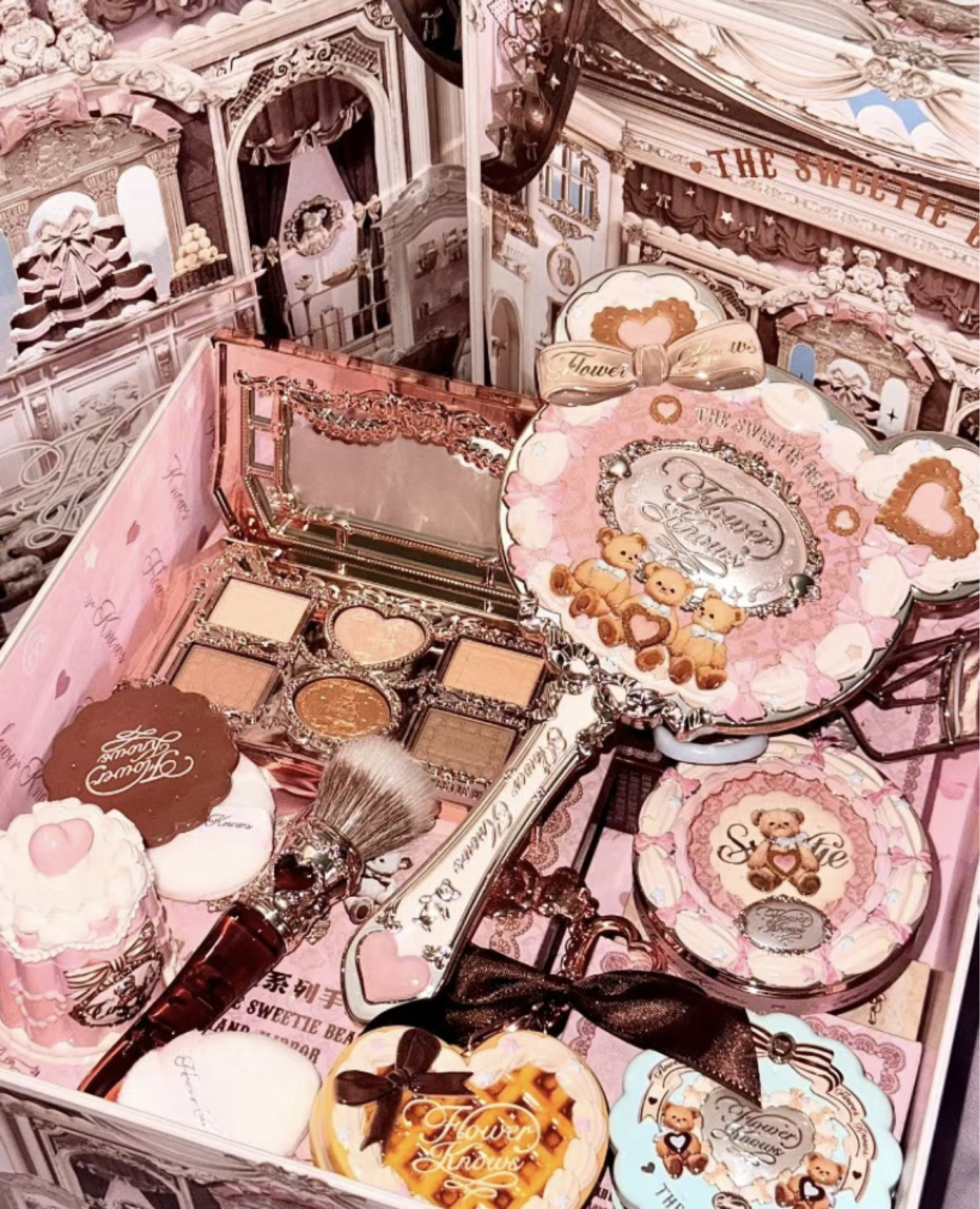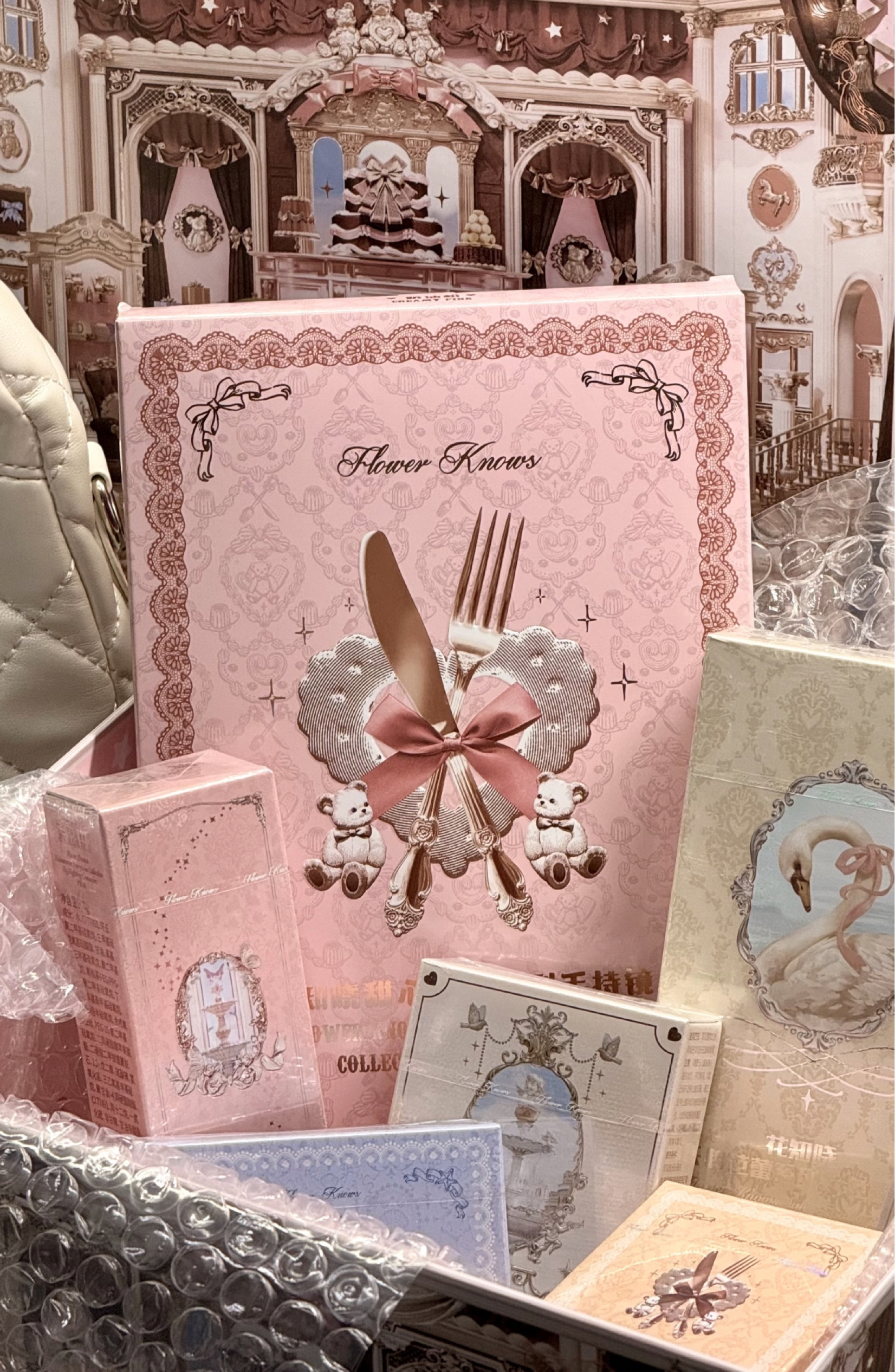 没有一个女生能拒绝花知晓礼盒!开箱直接沦陷,颜值+仪式感拉满,送礼/自留都封神! 一打开就是扑面而来的法式洛可可浪漫,碎花、浮雕、蝴蝶结、小兔子…每一处都精致到像艺术品,包装美到舍不得扔! 眼影盘配色温柔日常,粉质细腻不飞粉;腮红自带绝美浮雕,上脸显嫩提气色;唇霜丝滑不拔干,嫩到掐出水~ 还有重工手持镜、可爱发夹、全套化妆工具,满满一大盒,拆箱像开盲盒一样惊喜! 200+拿下正装+周边一整套...